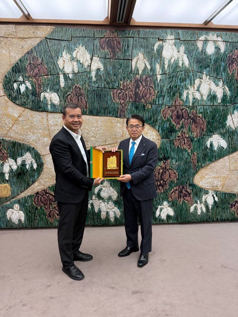 ខេត្តអៃជី, ប្រទេសជប៉ុន៖ ឯកឧត្តមបណ្ឌិត កៅ ថាច ប្រតិភូរាជរដ្ឋាភិបាល ទទួលបន្ទុកជាអគ្គនាយក ធនាគារអភិវឌ្ឍន៍ជនបទ និងកសិកម្ម (ARDB) ព្រមជាមួយលោក រស់ រាសី ប្រធានសមាគមខ្មែរនៅប្រទេសជប៉ុន នារសៀលថ្ងៃព្រហស្បតិ៍ ថ្ងៃទី២៩ ខែឧសភា ឆ្នាំ២០២៥នេះ បានដឹកនាំគណៈប្រតិភូ ARDB និងវិនិយោគិនខ្មែរ ចូលជួបសម្ដែងការគួរសមនិងពិភាក្សាការងារជាមួយ ឯកឧត្តម Hideaki Omura អភិបាលខេត្តអៃជី។
