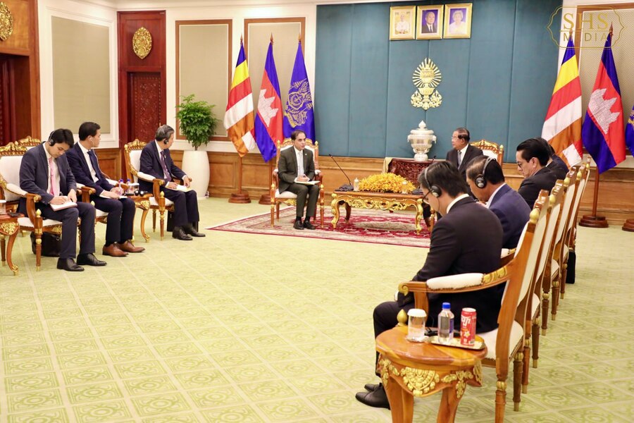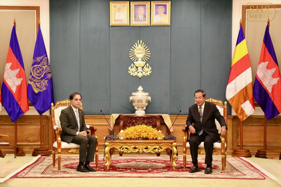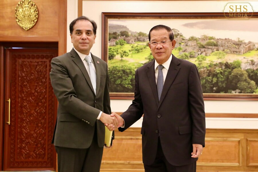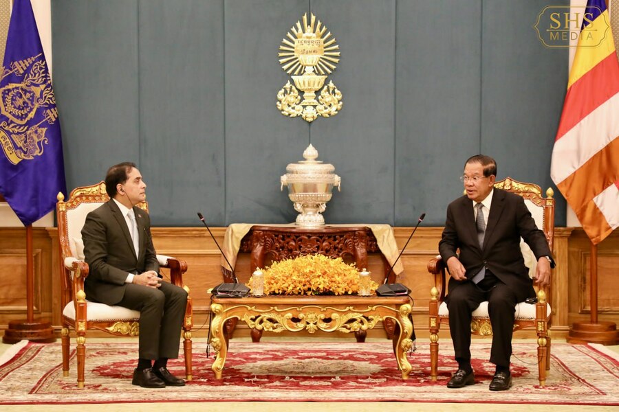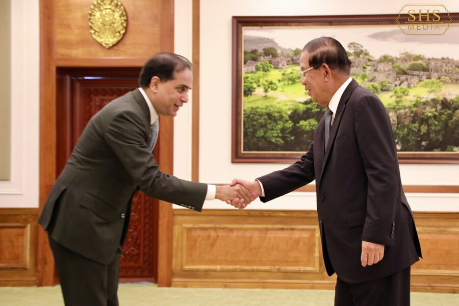 សម្តេចអគ្គមហាសេនាបតីតេជោ ហ៊ុន សែន ប្រធានព្រឹទ្ធសភានៃព្រះរាជាណាចក្រកម្ពុជា អនុញ្ញាតឲ្យ លោក Faiyaz Murshid Kazi ឯកអគ្គរដ្ឋទូតនៃសាធារណរដ្ឋប្រជាមានិតបង់ក្លាដេស ចូលជួបសម្តែងការគួរសម។