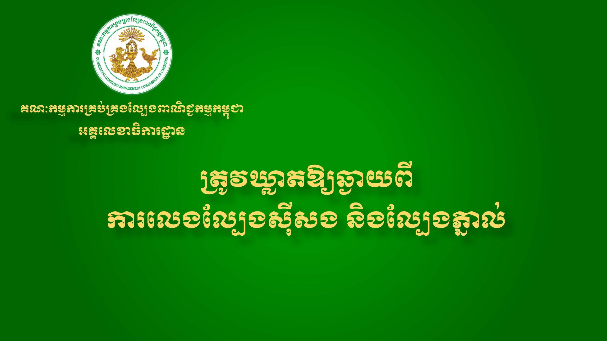 អគ្គលេខាធិការដ្ឋាននៃ គ.ល.ក. សូមជូនសារអប់រំ និងណែនាំដល់សាធារណជនអំពីផលប៉ះពាល់ពីការលេងល្បែងស៊ីសងគ្រប់ប្រភេទ។