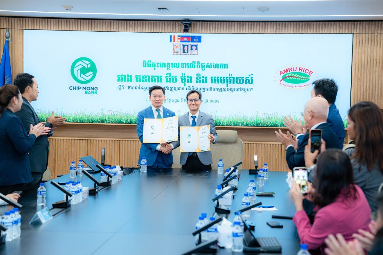 ភ្នំពេញ:ក្រុមហ៊ុនអេមរុរ៉ាយស៍ (Amru Rice) និងក្រុមហ៊ុនសាជីវកម្មសហគមន៍កសិកម្មកម្ពុជា (CACC) មានកិត្តិយសក្នុងការចុះហត្ថលេខាលើកិច្ចសហការជាមួយធនាគារជីបម៉ុងស្តីពី «ភាពជាដៃគូយុទ្ធសាស្រ្តហិរញ្ញប្បទានដើម្បីជំរុញផលិតកម្មស្រូវអង្ករនៅកម្ពុជា»។