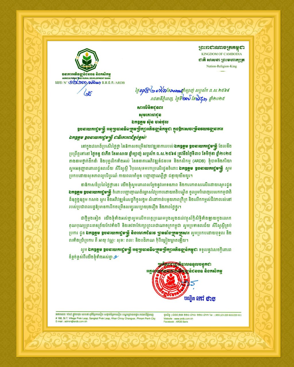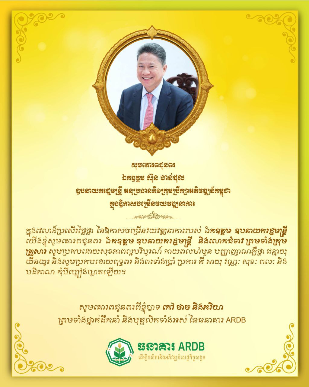 នៅក្នុងវេលាដ៏មង្គលប្រសើរថ្លៃថ្លា នៃឱកាសចម្រើនវយវឌ្ឍនាការរបស់ ឯកឧត្ដម ឧបនាយករដ្ឋមន្ត្រី យើងខ្ញុំសូមគោរពជូនពរឯកឧត្ដម ឧបនាយករដ្ឋមន្ត្រី និងលោកជំទាវ ព្រមទាំងក្រុមគ្រួសារ សូមប្រកបដោយសុខភាពល្អបរិបូរណ៍ កាយពលមាំមួន បញ្ញាញាណភ្លឺថ្លា ជន្មាយុយឺនយូរ និងសូមប្រកបដោយពុទ្ធពរ និងពរដ៏ថ្លៃថ្លាទាំងប្រាំប្រការ គឺ អាយុ វណ្ណៈ សុខៈ ពលៈ និងបដិភាណ កុំបីឃ្លៀងឃ្លាតឡើយ។