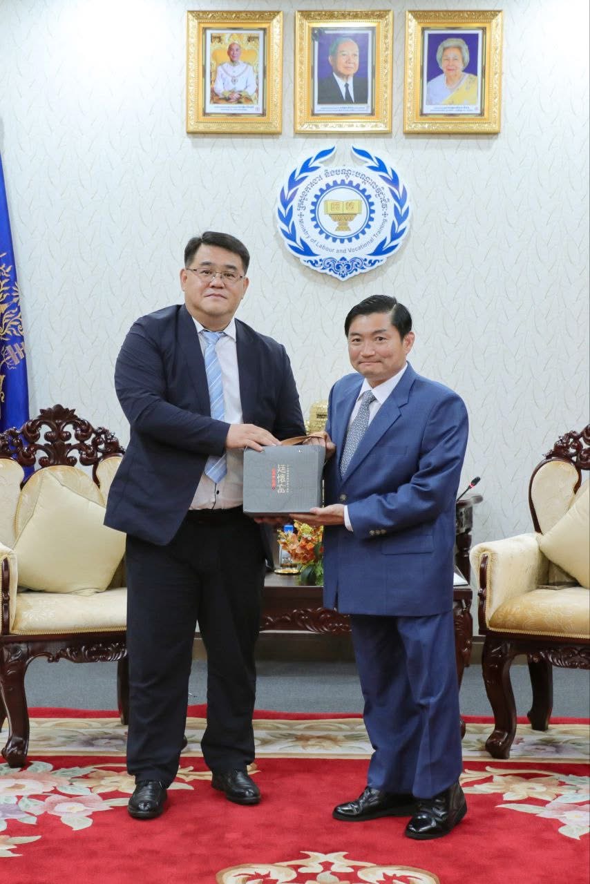 ភ្នំពេញ: ឯកឧត្តម ហេង សួរ រដ្ឋមន្រ្តីក្រសួងការងារ និងបណ្ដុះបណ្ដាលវិជ្ជាជីវៈ និងលោក Wu Yong (វ៉ូ យ៉ុង) ប្រធានក្រុមហ៊ុន Henan Lianfei Business Information Consulting Co., Ltd បានអញ្ជើញចុះហត្ថលេខាលើអនុស្សរណៈនៃការយោគយល់គ្នា (MoU) រវាងក្រសួងការងារ និងបណ្ដុះបណ្ដាលវិជ្ជាជីវៈ និងក្រុមហ៊ុន Henan Lianfei Business Information Consulting Co., Ltd។