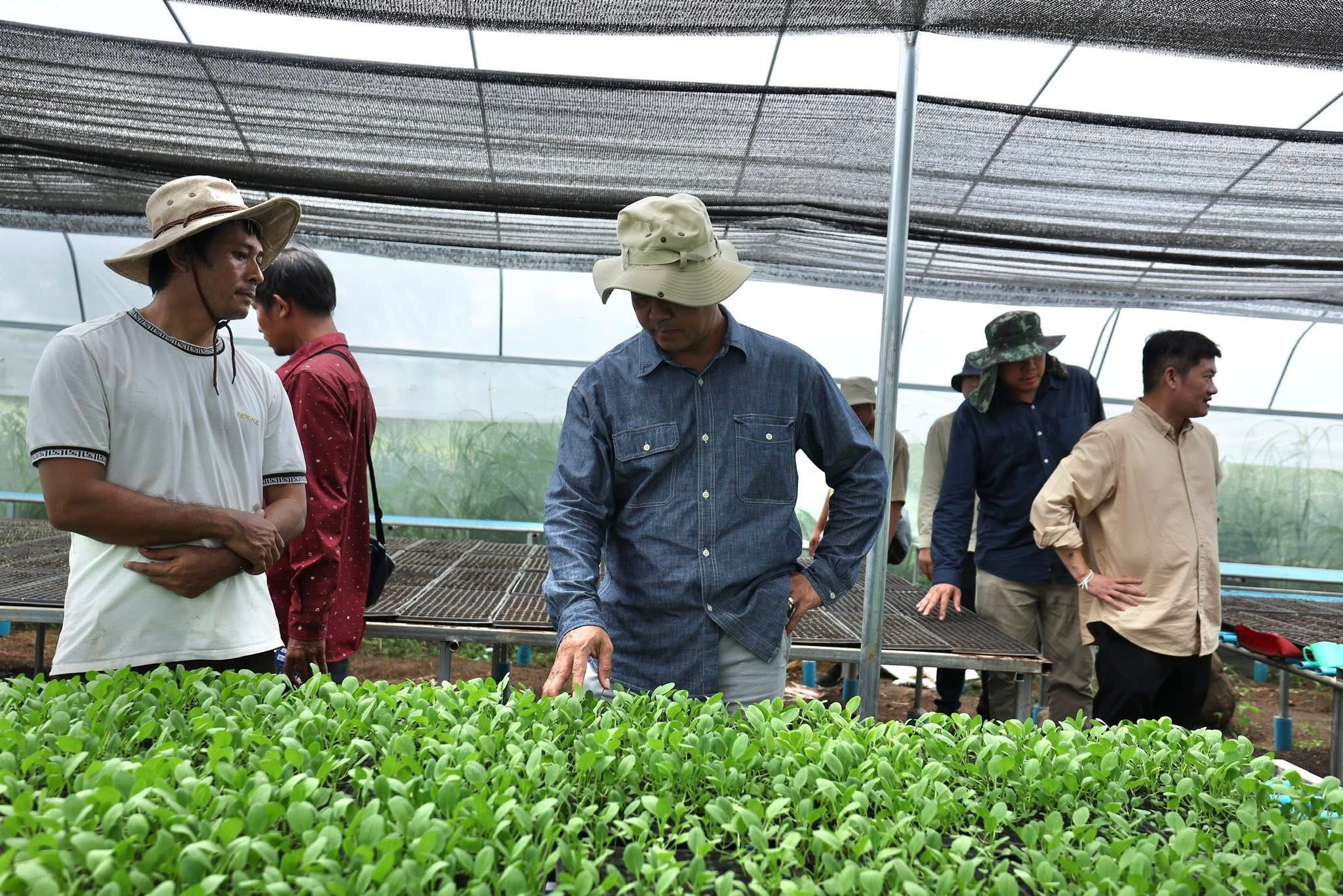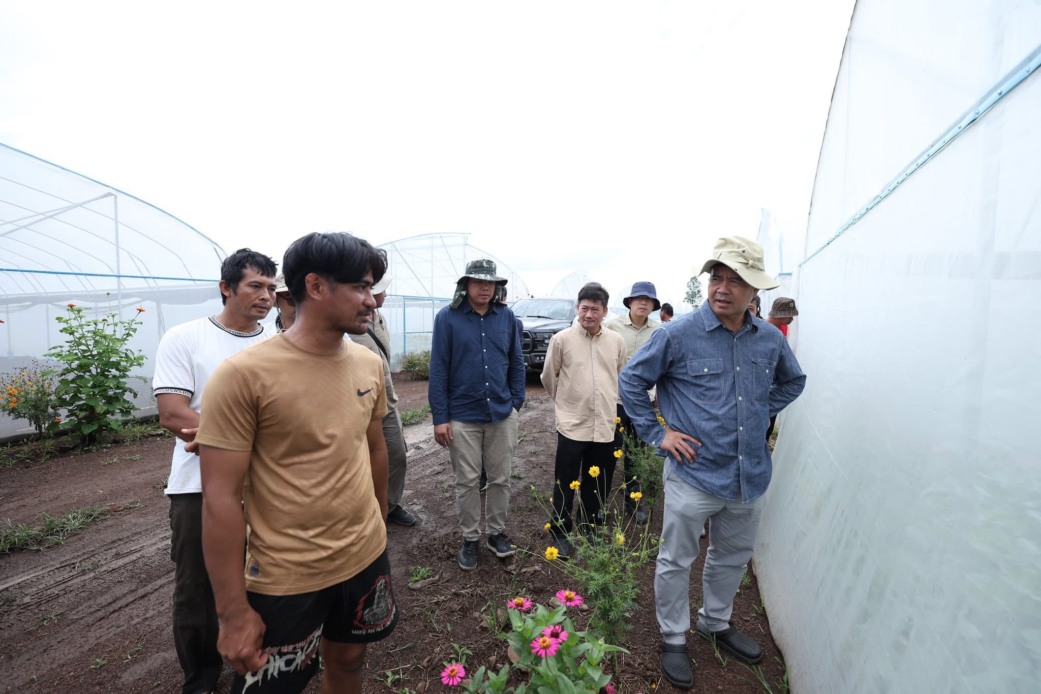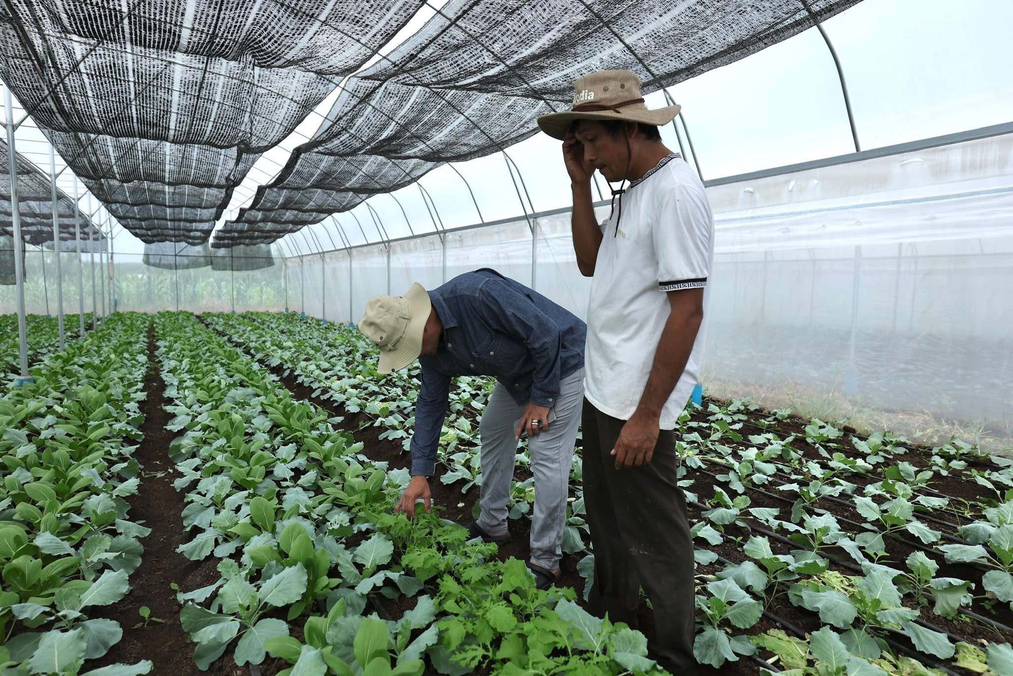 ឯកឧត្តមបណ្ឌិត កៅ ថាច និងសហការី អញ្ជើញចុះសាកសួរសុខទុក្ខកសិករដាំដុះបន្លែផ្ទះសំណាញ់ ១៣គ្រួសារ ស្ថិតក្នុងគម្រោងកាត់បន្ថយភាពក្រីក្រ របស់ធនាគារ ARDB