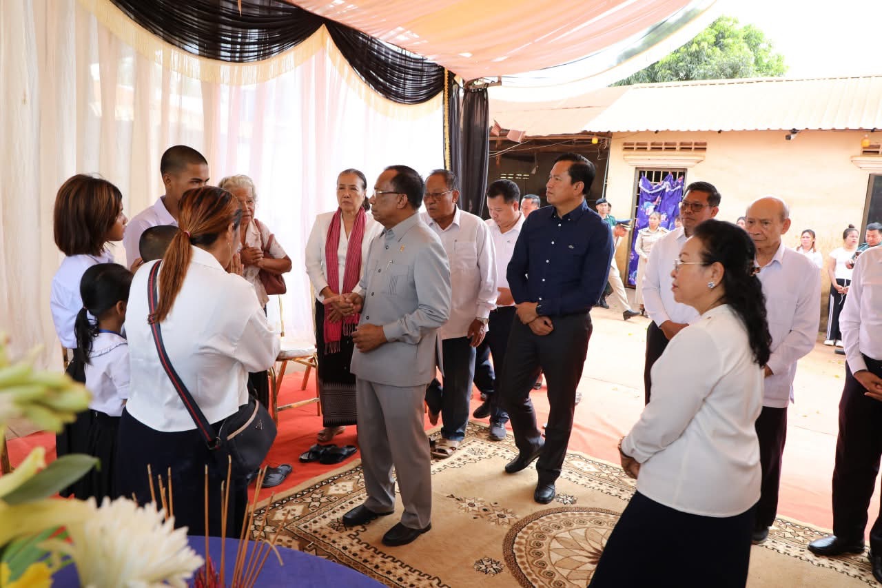 ភ្នំពេញ: ឯកឧត្តម វង សូត អនុប្រធានទី២ រដ្ឋសភា នៃព្រះរាជាណាចក្រកម្ពុជា និងលោកជំទាវ រួមជាមួយឯកឧត្តម លោកជំទាវ តំណាងរាស្ត្រមណ្ឌលខេត្តត្បូងឃ្មុំ នាព្រឹកថ្ងៃទី៧ ខែសីហា ឆ្នាំ២០២៥ បានអញ្ជើញសួរសុខទុក្ខគ្រួសារសព លោក ព្រឹន្ទបាលទោ ឆៃ រ័ត្ន និងលោកអនុសេនីយ៍ឯក អ៊ុន វណ្ណា ដល់គេហដ្ឋានផ្ទាល់ ស្ថិតនៅស្រុកក្រូចឆ្មារ និងស្រុកមេមត់ ក្នុងខេត្តត្បូងឃ្មុំ។