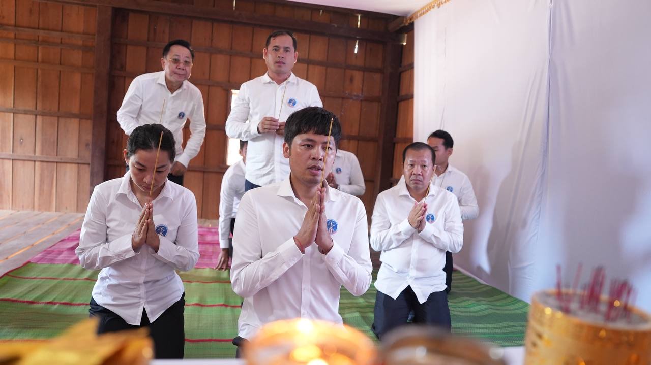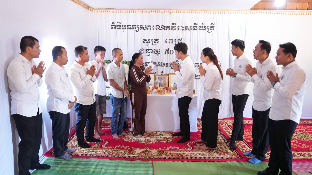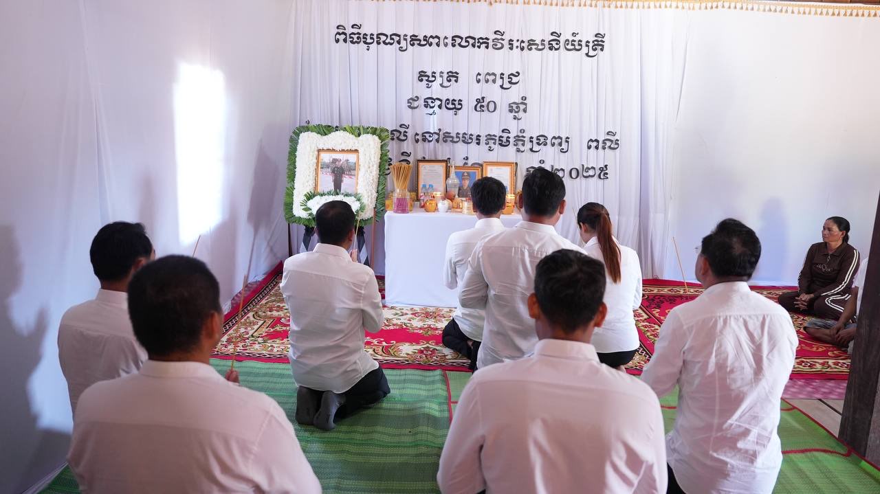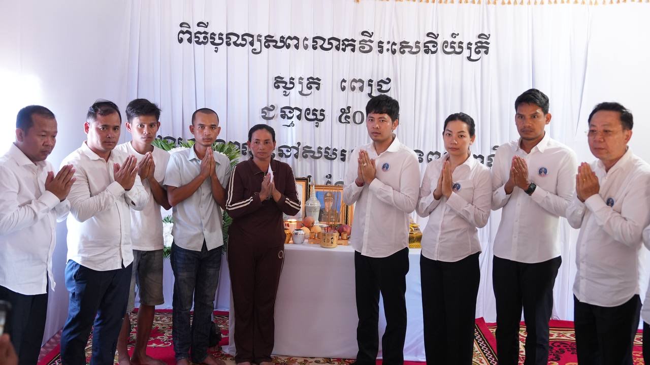 (ភ្នំពេញ)៖ ឧកញ៉ា ឡេង និមល និងលោកជំទាវឧកញ៉ាបណ្ឌិត ឡេង បញ្ចពណ៌ តំណាងអ្នកឧកញ៉ា ឡេង ណាវ៉ាត្រា ប្រធានសហព័ន្ធយុវជនបូជាការពារយុត្តិធម៌ កាលពីថ្ងៃព្រហស្បតិ៍ ទី៧ ខែសីហា ឆ្នាំ២០២៥ បានអញ្ជើញដឹកនាំក្រុមការងារចូលរួមគោរពវិញ្ញាណក្ខន្ធយុទ្ធជនពលី វីរ:សេនីយ៍ត្រី សូត្រ ពេជ្រ ដែលបានពលីជីវិតក្នុងការការពារបូរណភាពជាតិ និងអធិបតេយ្យជាតិ។