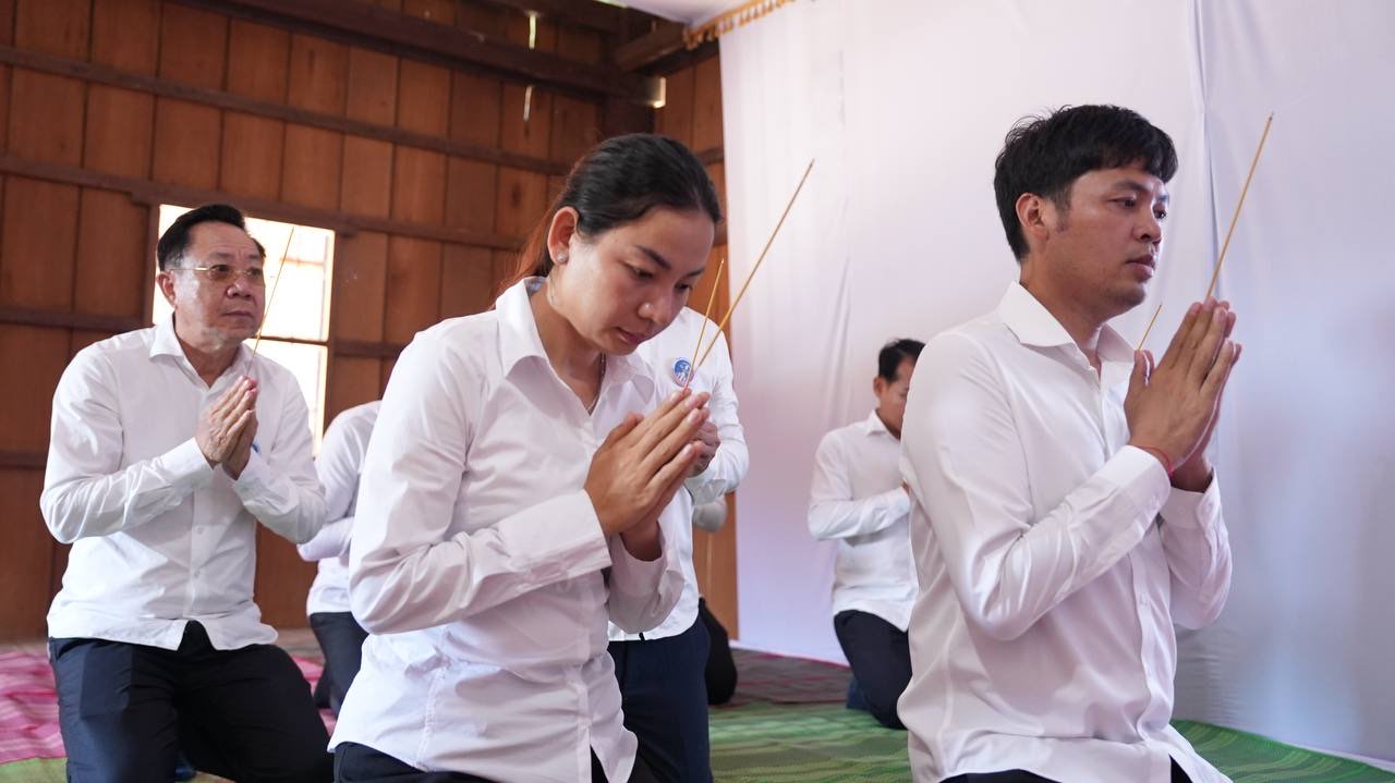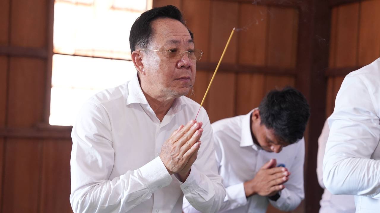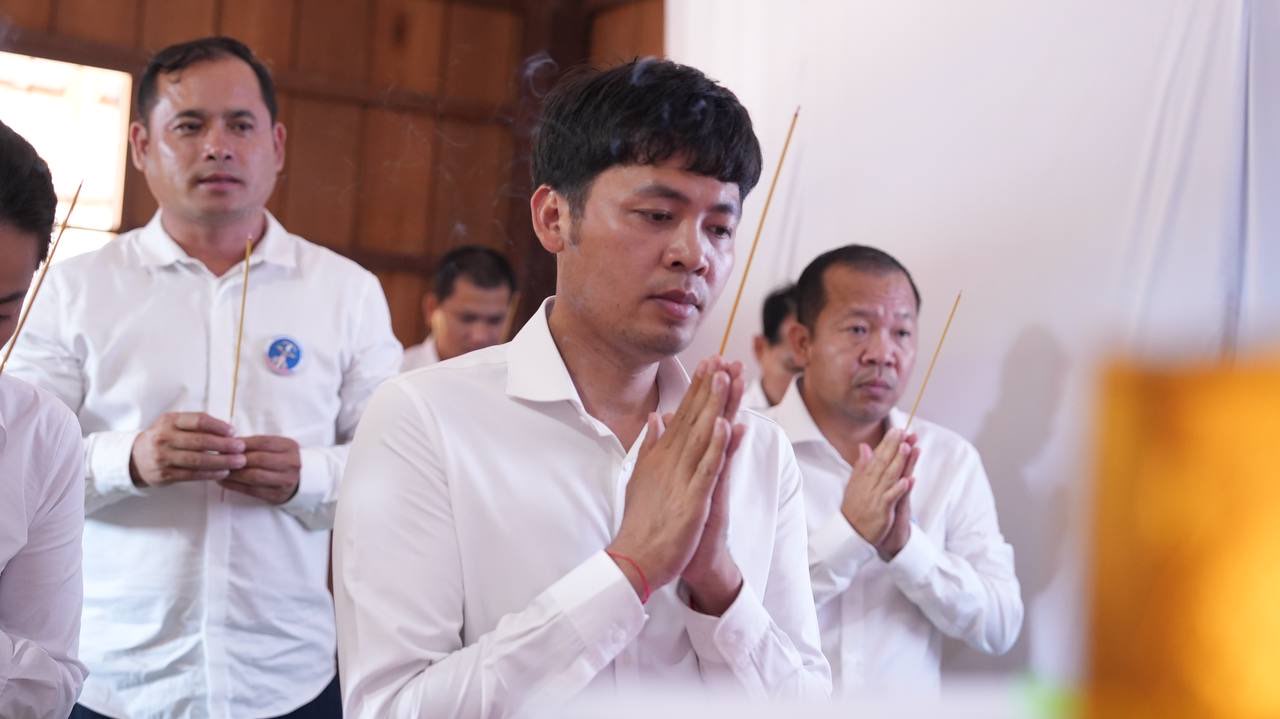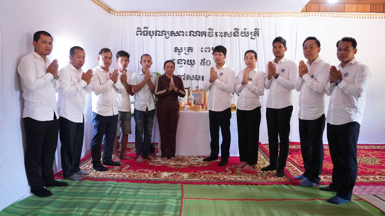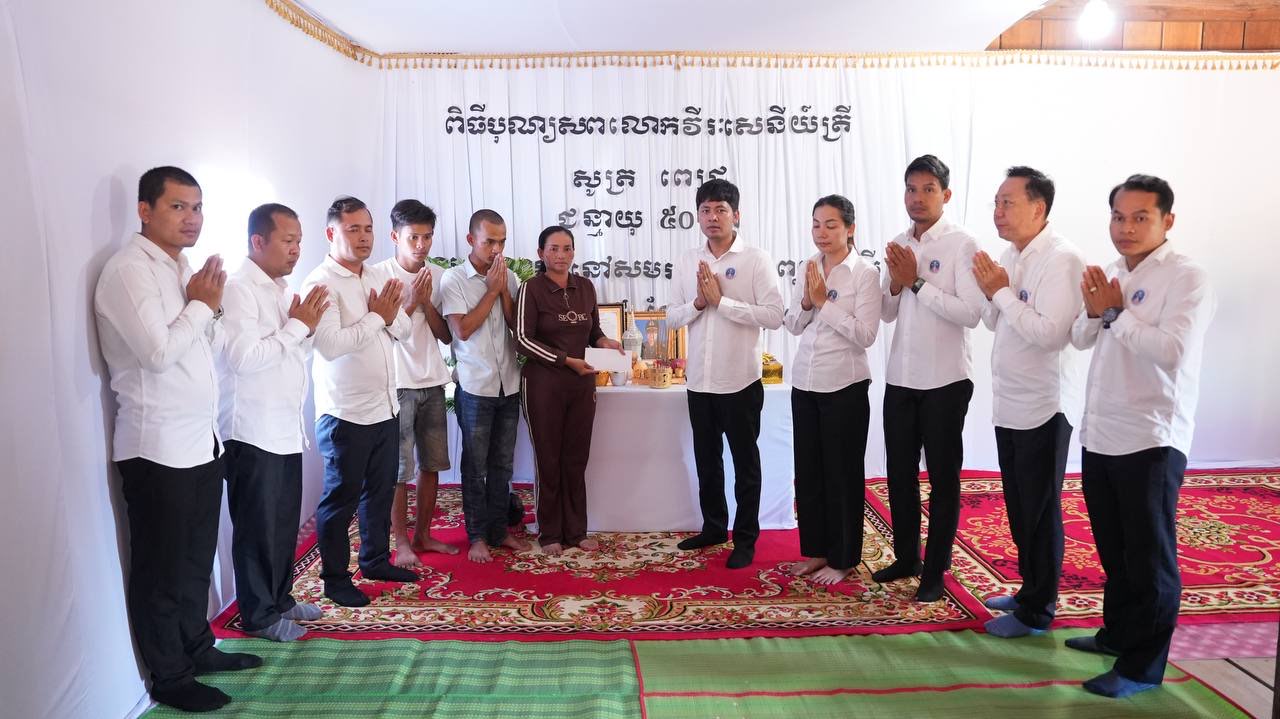(ភ្នំពេញ)៖ ឧកញ៉ា ឡេង និមល និងលោកជំទាវឧកញ៉ាបណ្ឌិត ឡេង បញ្ចពណ៌ តំណាងអ្នកឧកញ៉ា ឡេង ណាវ៉ាត្រា ប្រធានសហព័ន្ធយុវជនបូជាការពារយុត្តិធម៌ កាលពីថ្ងៃព្រហស្បតិ៍ ទី៧ ខែសីហា ឆ្នាំ២០២៥ បានអញ្ជើញដឹកនាំក្រុមការងារចូលរួមគោរពវិញ្ញាណក្ខន្ធយុទ្ធជនពលី វីរ:សេនីយ៍ត្រី សូត្រ ពេជ្រ ដែលបានពលីជីវិតក្នុងការការពារបូរណភាពជាតិ និងអធិបតេយ្យជាតិ។