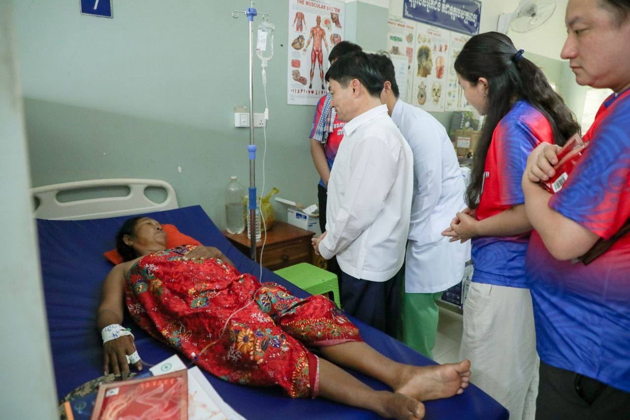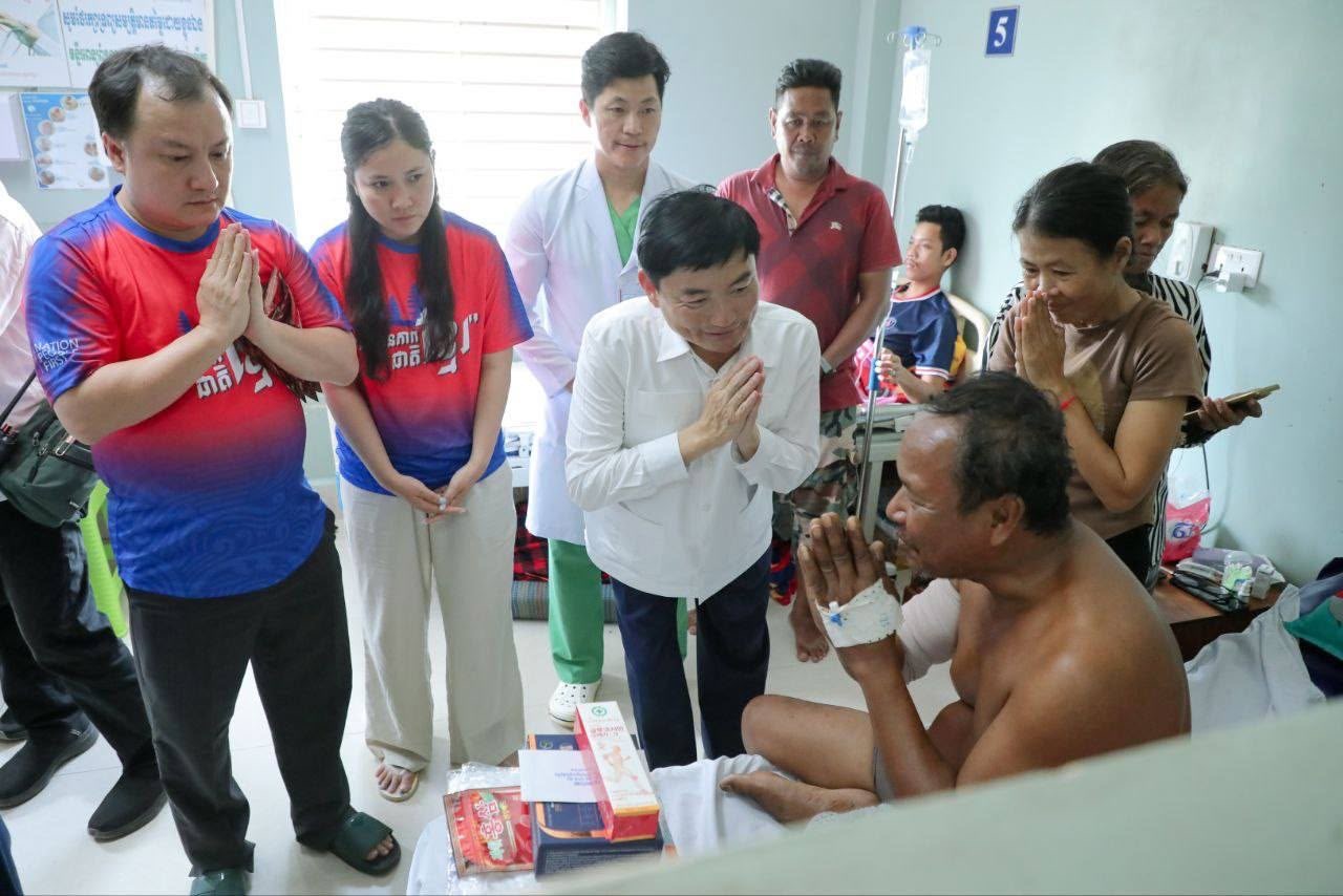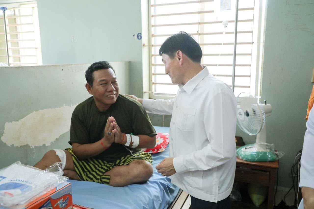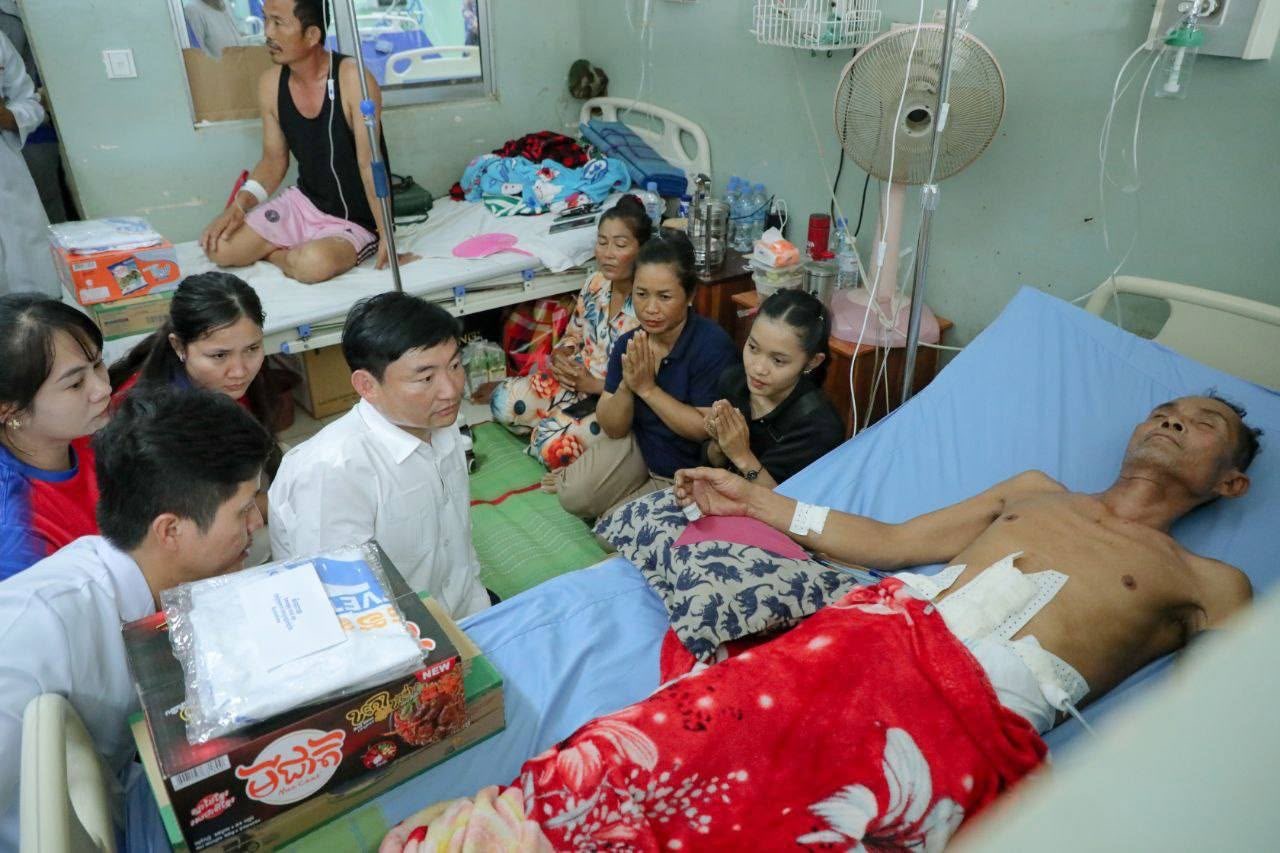 ភ្នំពេញ:ឯកឧត្តម ហេង សួរ ប្រធានក្រុមការងាររៀបចំអង្គការចាត់តាំងយុវជនគណបក្សប្រជាជនកម្ពុជា នៅទ្វីបអាស៊ីខាងកើត និងអាគ្នេយ៍ (ESEA) នារសៀលថ្ងៃទី៨ ខែសីហា ឆ្នាំ២០២៥នេះ បានដឹកនាំក្រុមការងារ និងសមាជិកក្រុមការងារប្រចាំនៅសាធារណរដ្ឋកូរ៉េ ចុះសំណេះសំណាល សួរសុខទុក្ខ និងឧបត្ថម្ភជាថវិកាមួយចំនួន រួមទាំងអំណោយជាគ្រឿងឧបភោគបរិភោគ ចែកជូនបងប្អូនវីរកងទ័ព នៃកងពលតូចអន្តរាគមន៍លេខ៧ និងបងប្អូននាយទាហានចំរុះប្រមាណ ១០០នាក់ ដែលកំពុងសម្រាកព្យាបាលនៅមន្ទីរពេទ្យបង្អែកខេត្ត ១៦ មករា នៅខេត្តព្រះវិហារ។