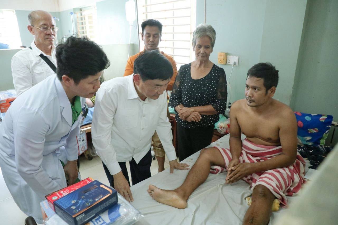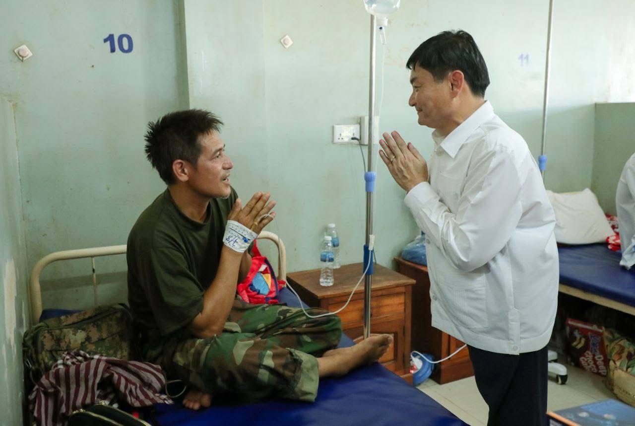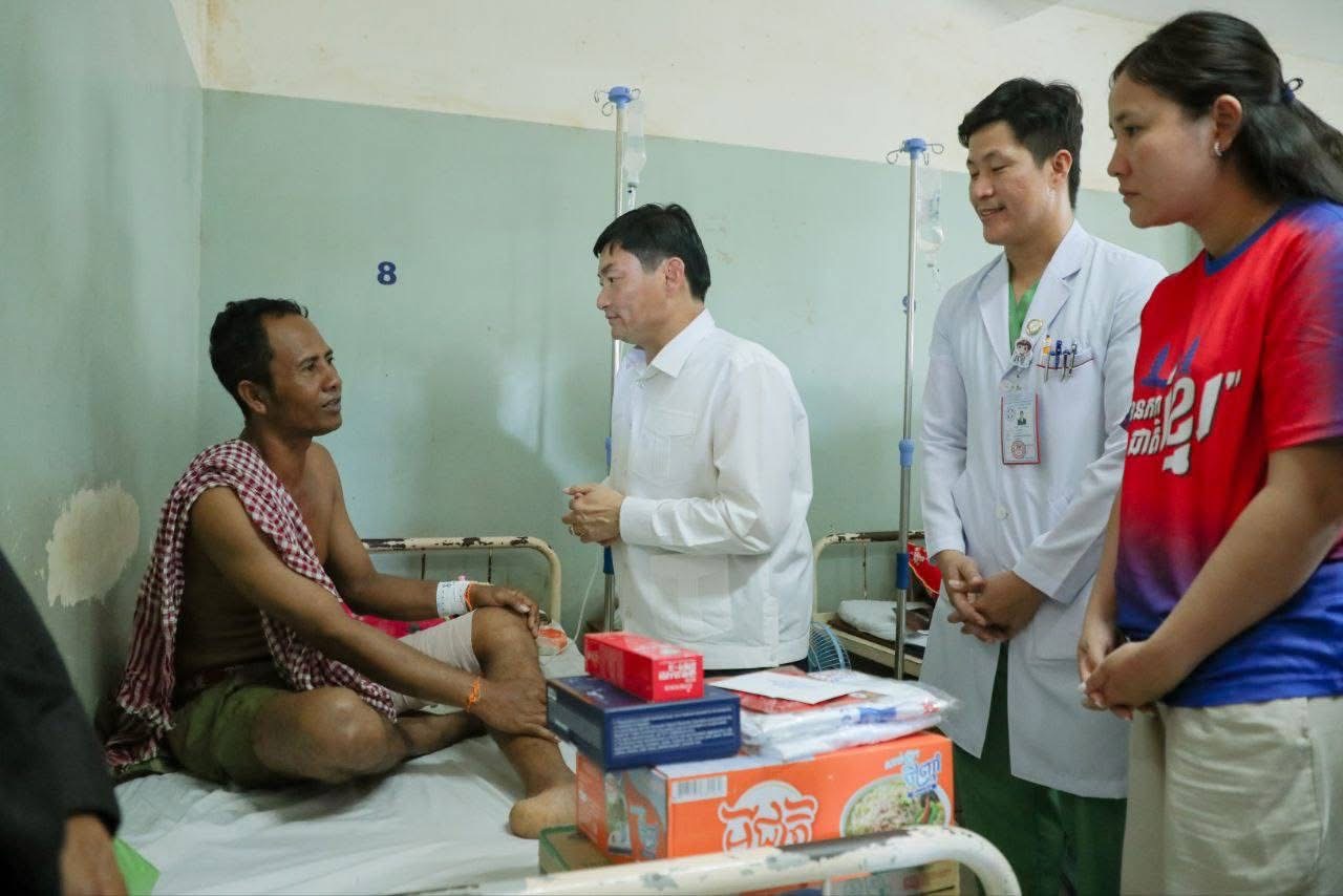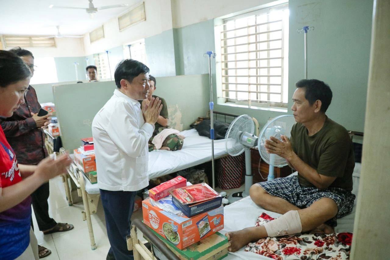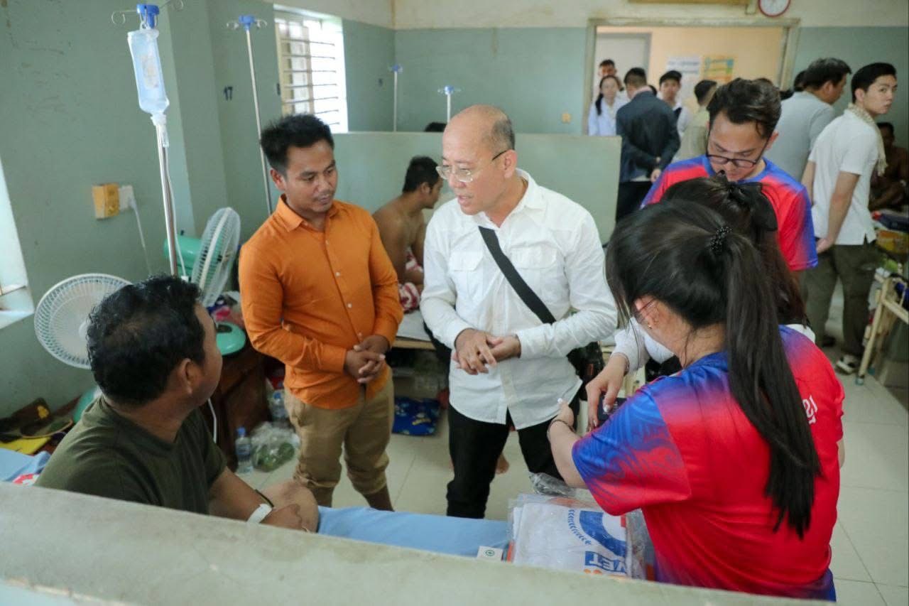 ភ្នំពេញ:ឯកឧត្តម ហេង សួរ ប្រធានក្រុមការងាររៀបចំអង្គការចាត់តាំងយុវជនគណបក្សប្រជាជនកម្ពុជា នៅទ្វីបអាស៊ីខាងកើត និងអាគ្នេយ៍ (ESEA) នារសៀលថ្ងៃទី៨ ខែសីហា ឆ្នាំ២០២៥នេះ បានដឹកនាំក្រុមការងារ និងសមាជិកក្រុមការងារប្រចាំនៅសាធារណរដ្ឋកូរ៉េ ចុះសំណេះសំណាល សួរសុខទុក្ខ និងឧបត្ថម្ភជាថវិកាមួយចំនួន រួមទាំងអំណោយជាគ្រឿងឧបភោគបរិភោគ ចែកជូនបងប្អូនវីរកងទ័ព នៃកងពលតូចអន្តរាគមន៍លេខ៧ និងបងប្អូននាយទាហានចំរុះប្រមាណ ១០០នាក់ ដែលកំពុងសម្រាកព្យាបាលនៅមន្ទីរពេទ្យបង្អែកខេត្ត ១៦ មករា នៅខេត្តព្រះវិហារ។
