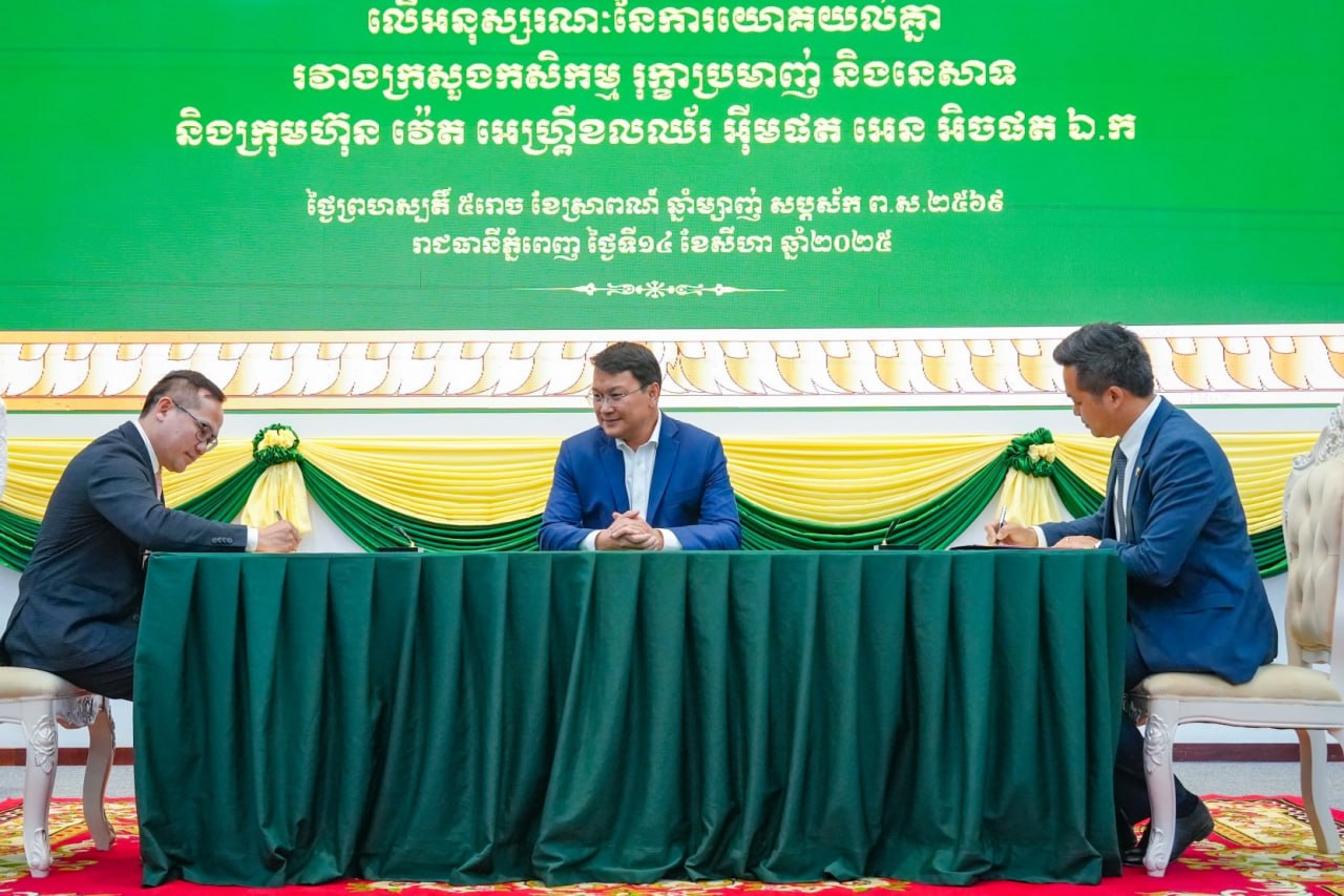 ភ្នំពេញ:ក្រសួងកសិកម្ម រុក្ខាប្រមាញ់ និងនេសាទនៅរសៀលថ្ងៃទី១៤ខែសីហានេះបានចុះអនុស្សរណៈនៃការយោគយល់ជាមួយក្រុមហ៊ុនវ៉េត អេហ្គ្រីខលឈ័រ អ៉ីមផត អេន អិចផត ដែលជាបុត្រសម្ព័ន្ធរបស់ក្រុមហ៊ុនវិរៈប៊ុនថាំ ដើម្បីរៀបចំកិច្ចសន្យាប្រមូលទិញជាមួយសហគមន៍កសិកម្មទំនើប សម្រាប់ធ្វើការនាំចេញស្រូវស្រង៉ែទៅកាន់ទីផ្សារអន្តរជាតិ។