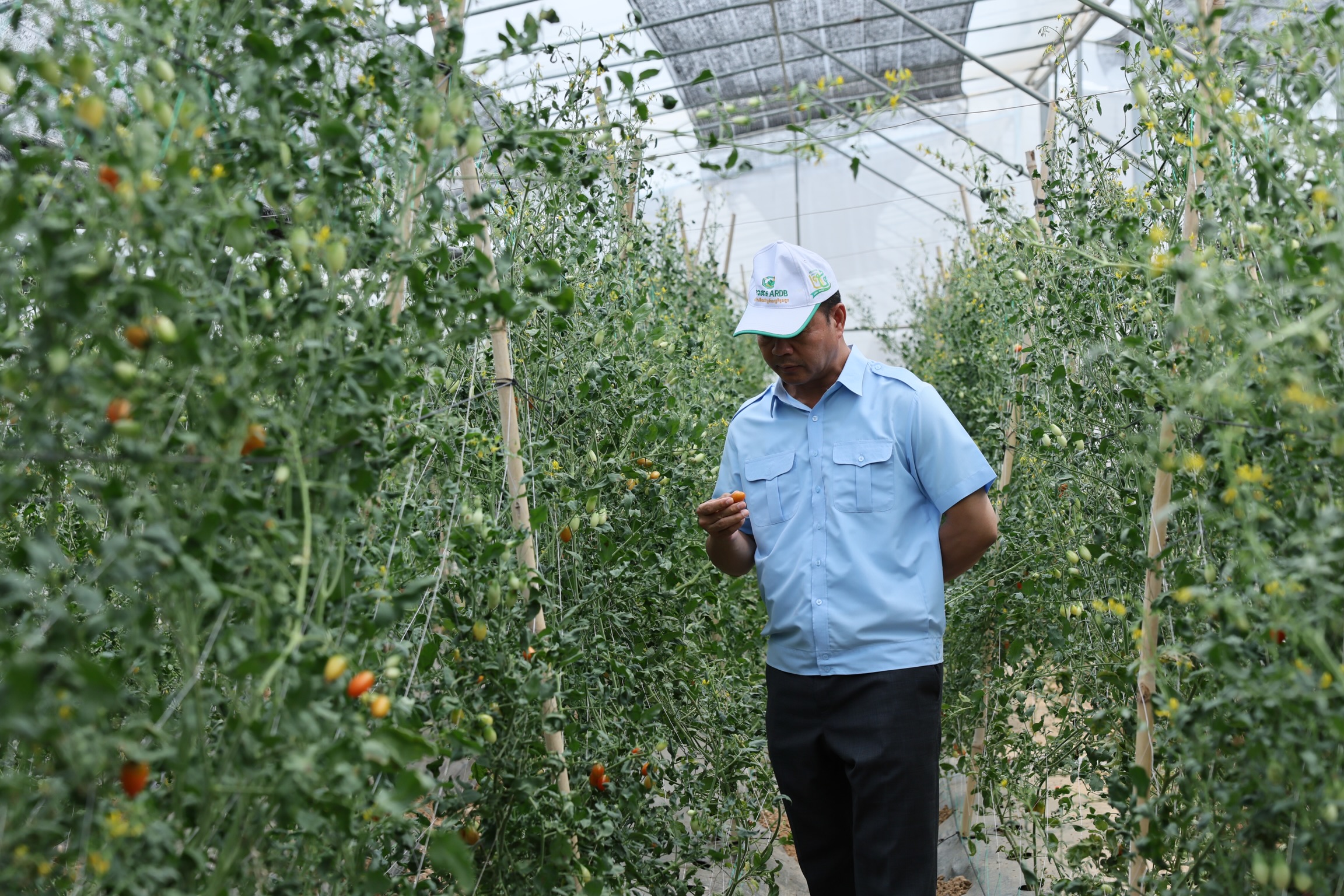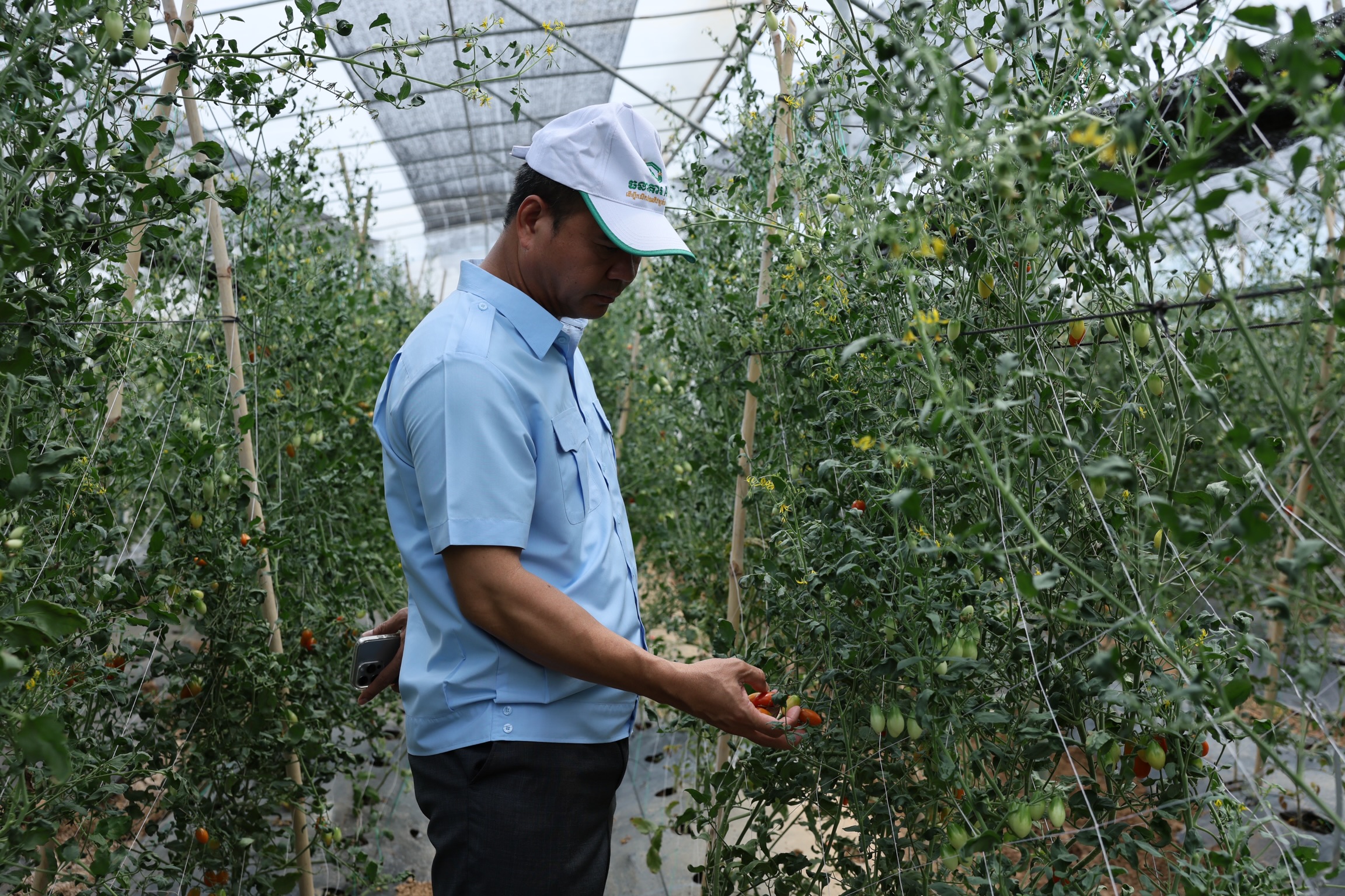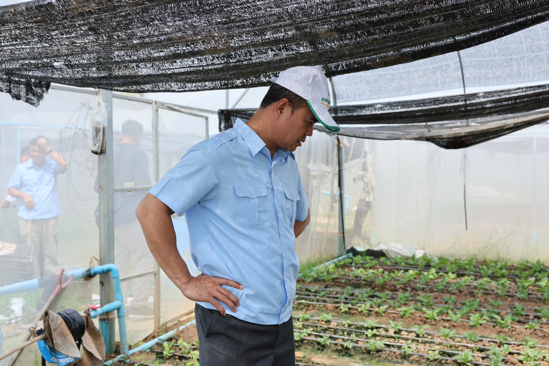 ឯកឧត្តមបណ្ឌិត កៅ ថាច និងសហការីអញ្ជើញចុះពិនិត្យមើលកសិដ្ឋានដាំដុះបន្លែសុវត្ថិភាពក្នងផ្ទះសំណាញ់ស្ថិតនៅឃុំជ័យធំ ស្រុកខ្សាច់កណ្តាល