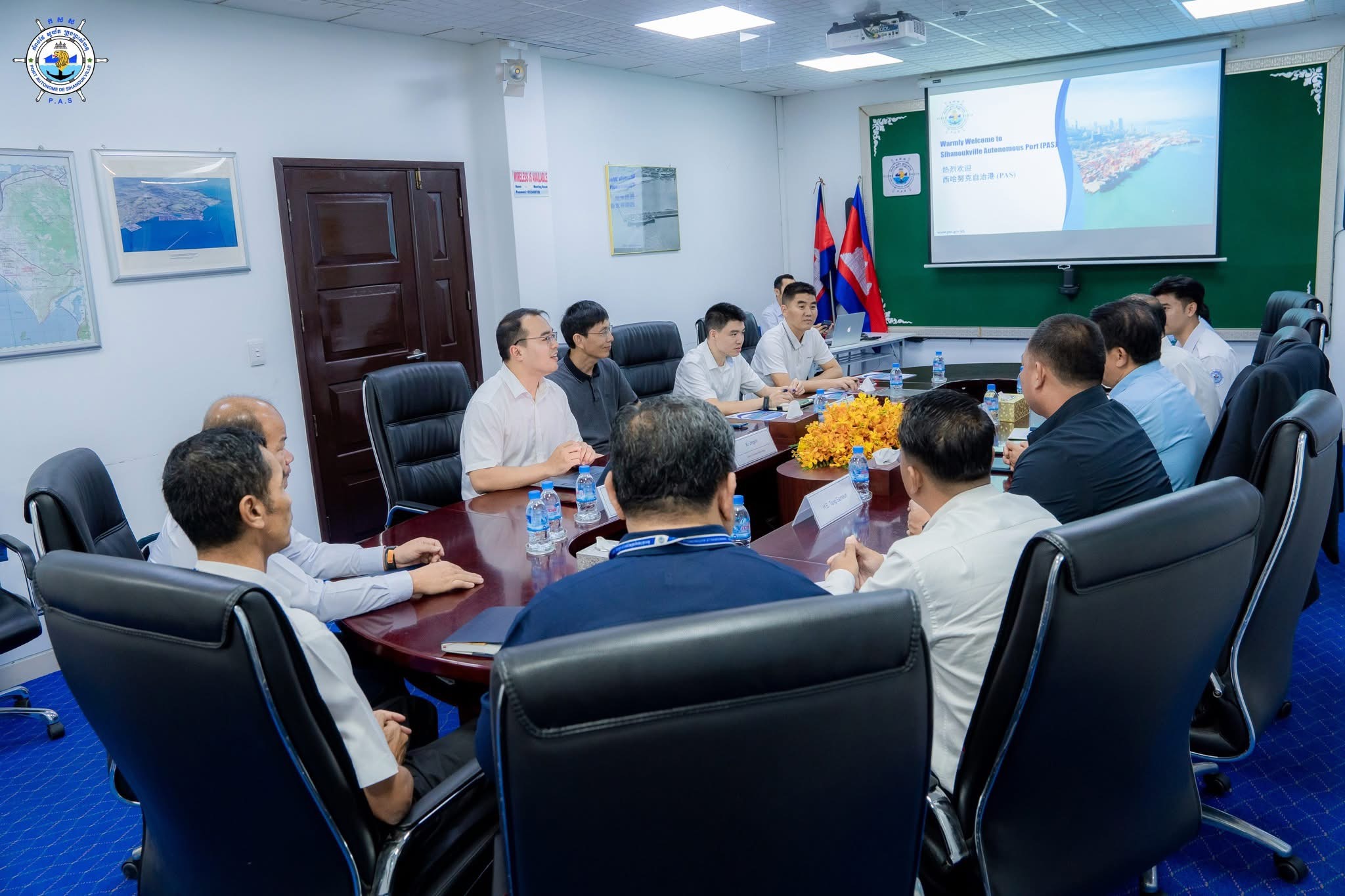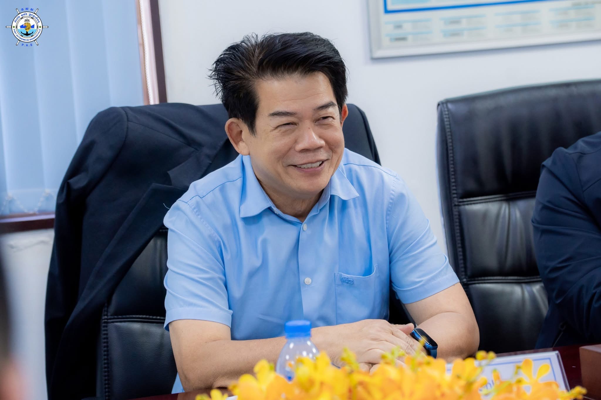 កំពង់ផែស្វយ័តក្រុងព្រះសីហនុ (កសស) ៖ នាវេលាម៉ោង ១០:៣០ នាទីព្រឹក ថ្ងៃព្រហស្បតិ៍ ៥ កើត ខែភទ្របទ ឆ្នាំម្សាញ់ សប្តស័ក ពុទ្ធសករាជ ២៥៦៩ ត្រូវនឹងថ្ងៃទី២៨ ខែសីហា ឆ្នាំ២០២៥ នៅសាលប្រជុំតូច កសស ឯកឧត្តម លូ គឹមឈន់ ប្រតិភូរាជរដ្ឋាភិបាលកម្ពុជា ទទួលបន្ទុកជាប្រធានអគ្គនាយក កំពង់ផែស្វយ័តក្រុងព្រះសីហនុ និងថ្នាក់ដឹកនាំ កសស បានបើកកិច្ចប្រជុំពិភាក្សាការងារជាមួយ ក្រុមហ៊ុន Zhejiang Seaport Logistics Group Co., Ltd. ស្តីពី សក្តានុពល ប្រតិបត្តិការ វឌ្ឍនភាព និងការអភិវឌ្ឍ របស់ កសស។