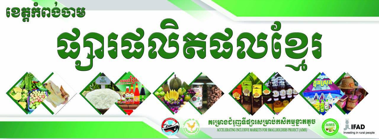 សូមបញ្ជាក់ថា ក្រោមការដឹកនាំ និងការគាំទ្ររបស់ក្រសួងពាណិជ្ជកម្ម និងការសម្របសម្រួលផ្តល់ទីតាំងរបស់រដ្ឋបាលខេត្ត មន្ទីរពាណិជ្ជកម្មខេត្តកំពង់ចាម ក្រោមគម្រោងជំរុញទីផ្សារសម្រាប់កសិកម្មខ្នាតតូច (AIMS) នៃក្រសួងពាណិជ្ជកម្ម បានរៀបចំ និងដាក់ឲ្យដំណើរការផ្សារលក់ផលិតផលខ្មែរ ចាប់តាំងពីឆ្នាំ២០១៩ រហូតមកដល់បច្ចុប្បន្ន។ ផ្សារនេះ មានគោលបំណងផ្ដល់ឱកាសទីផ្សារបន្ថែមដល់កសិករ ផលិតករអាជីវករខ្នាតតូច ជាតំណាងពីក្រុមកសិករផលិត និងជាការតភ្ជាប់ទំនាក់ទំនងទីផ្សារឱ្យកាន់តែប្រសើរ ដល់ក្រុមផលិតដែលអាចរកប្រាក់ចំណូល និងលើកកម្ពស់ជីវភាពរស់នៅពួកគេ។ ការចូលរួមលើកកម្ពស់ និងប្រើប្រាស់ផលិតផលខ្មែរ ជាការរួមចំណែកបង្កើនផលិតភាពផលិតផលក្នុងស្រុក បង្កើនប្រាក់ចំណូល និងលើកស្ទួយជីវភាពប្រជាជន និងជំរុញអភិវឌ្ឍន៍សេដ្ឋកិច្ច-សង្គមឲ្យកាន់តែប្រសើរឡើង។