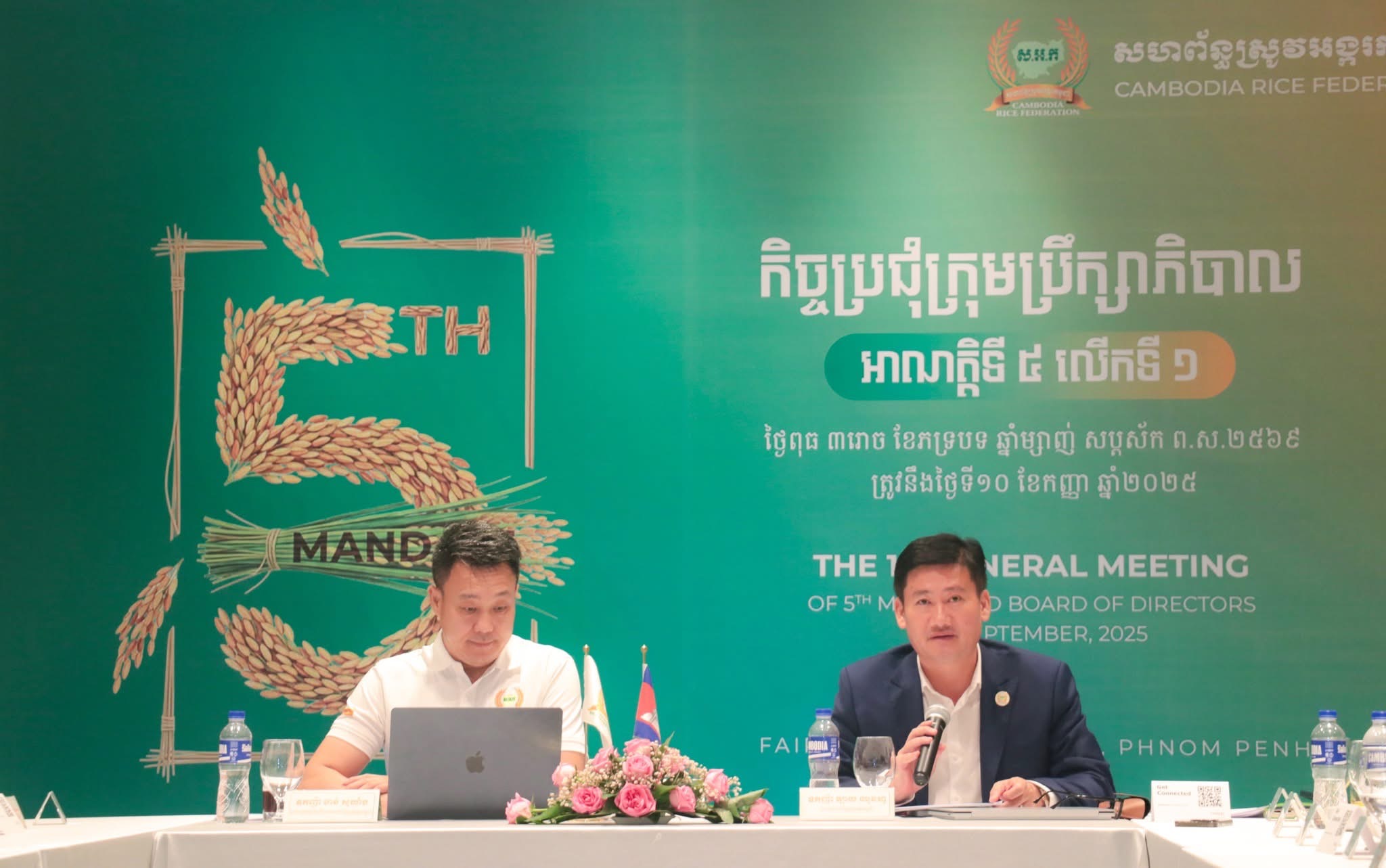 ភ្នំពេញ: សហព័ន្ធស្រូវអង្ករកម្ពុជាកាលពីថ្ងៃទី១០ ខែកញ្ញា ឆ្នាំ២០២៥ រៀបចំបើកកិច្ចប្រជុំក្រុមប្រឹក្សាភិបាលលើកទី១ អាណត្តិទី៥ ដែលប្រព្រឹត្តទៅក្រោមអធិបតីភាព ឧកញ៉ា ចាន់ សុឃាំង ប្រធានក្រុមប្រឹក្សាភិបាលសហព័ន្ធស្រូវអង្ករកម្ពុជាអាណត្តិទី៥ និង ឧកញ៉ា ឡាយ ឈុនហួ ប្រធានសហព័ន្ធស្រូវអង្ករកម្ពុជាអាណត្តិទី៥រៀបចំឡើងនៅសណ្ឋាគារ ហ្វៀរហ្វៀល បាយម៉ារៀ។ត