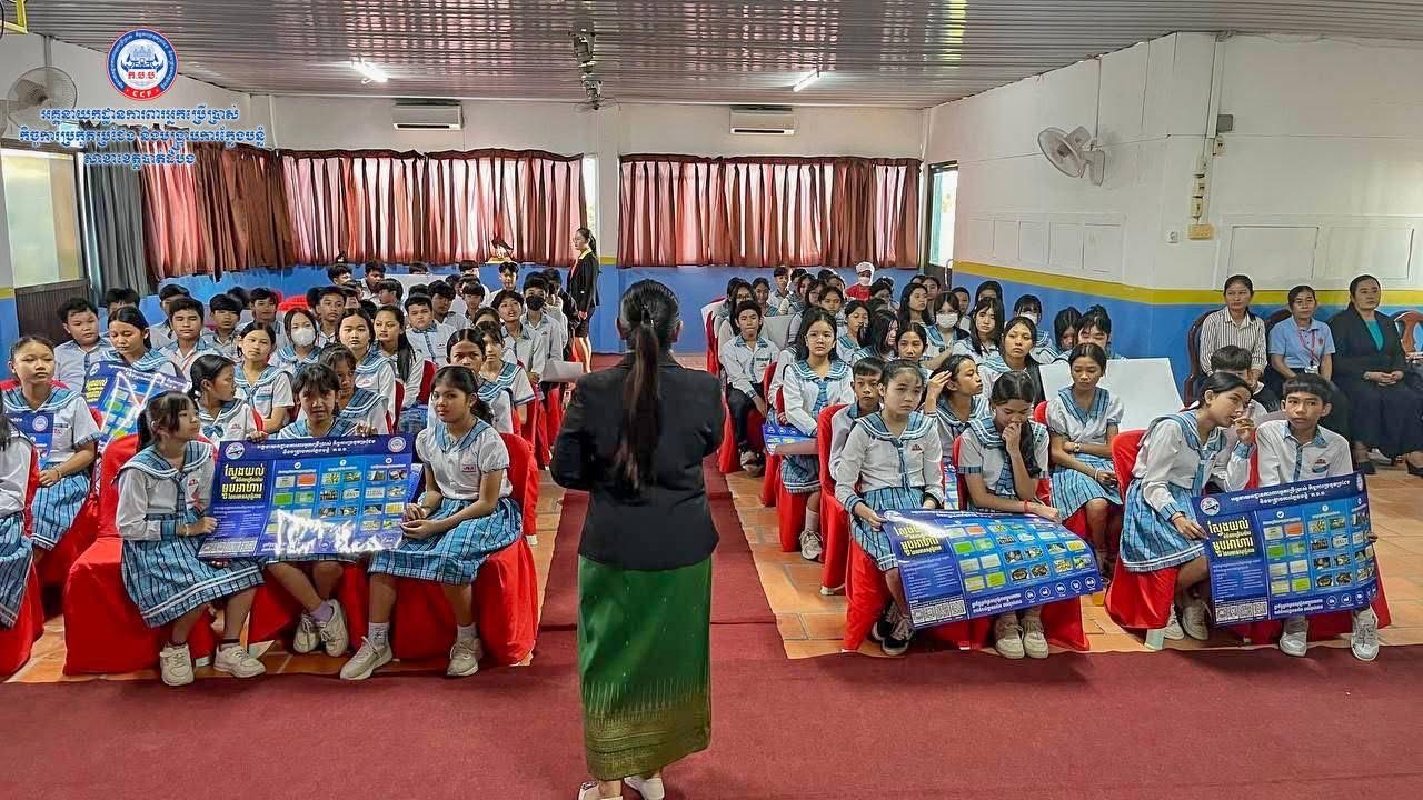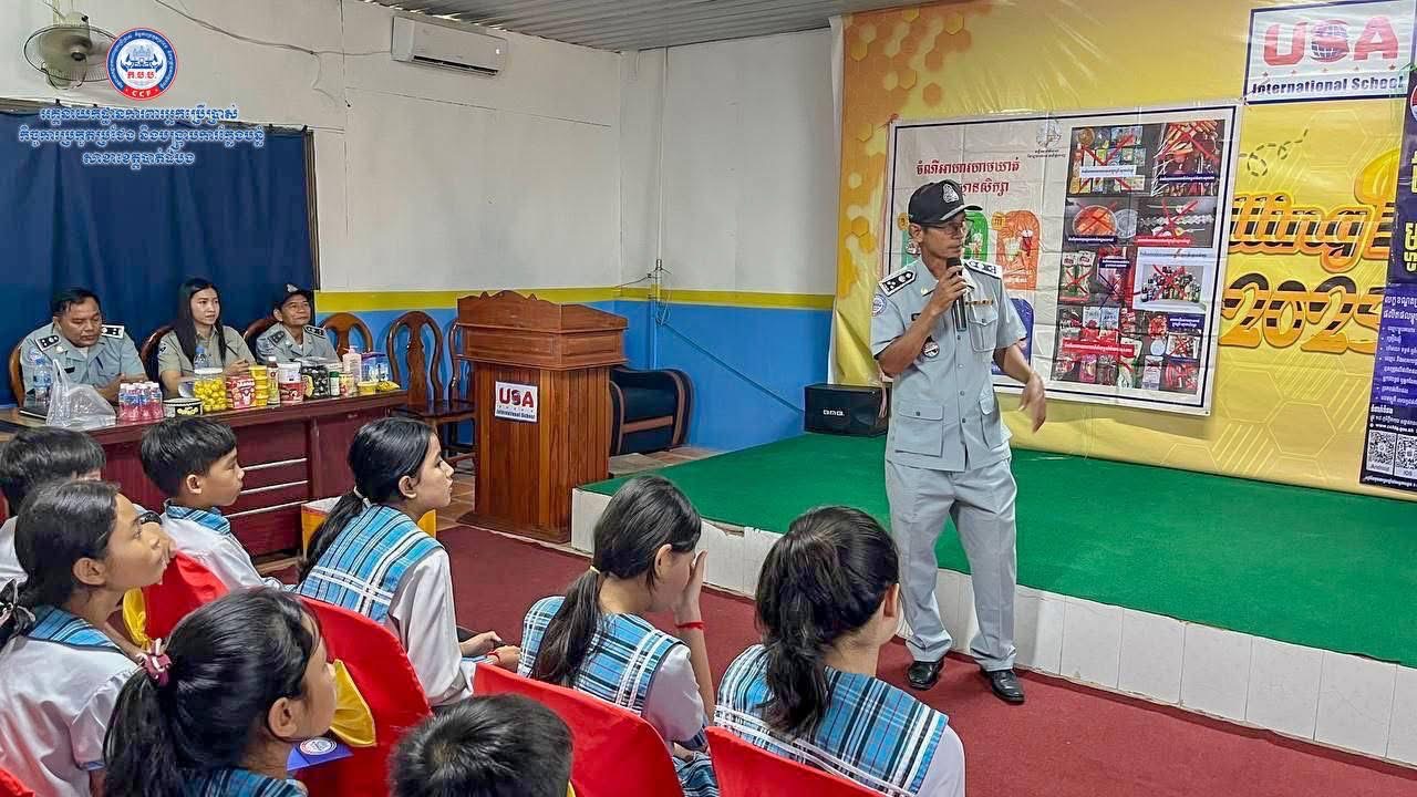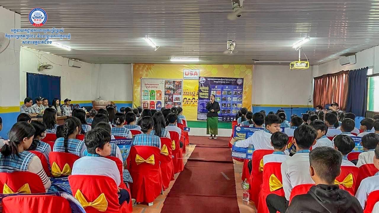 (បាត់ដំបង)៖ ថ្ងៃព្រហស្បតិ៍ ៤រោច ខែភទ្របទ ឆ្នាំម្សាញ់ សប្តស័ក ព.ស.២៥៦៩ ត្រូវនឹងថ្ងៃទី១១ ខែកញ្ញា ឆ្នាំ២០២៥ មន្រ្តីសាខា ក.ប.ប. ខេត្តបាត់ដំបង បានសហការជាមួយមន្រ្តីនៃមន្ទីរពាណិជ្ជកម្មខេត្ត មន្រ្តីនៃមន្ទីរអប់រំ យុវជន និងកីឡាខេត្ត ចុះអប់រំផ្សព្វផ្សាយស្តីពីសុវត្ថិភាពម្ហូបអាហារ កិច្ចការពារអ្នកប្រើប្រាស់ កិច្ចការប្រកួតប្រជែង កម្មវិធី CCF Complaint App និងផលប៉ះពាល់នៃគ្រឿងញៀន ជូនដល់លោកគ្រូ អ្នកគ្រូសិស្សានុសិស្ស និងអាជីវករលក់ដូរនៅក្នុងសាលាអន្តរជាតិ យូ អេស អេ ចំនួន ៩៤នាក់។