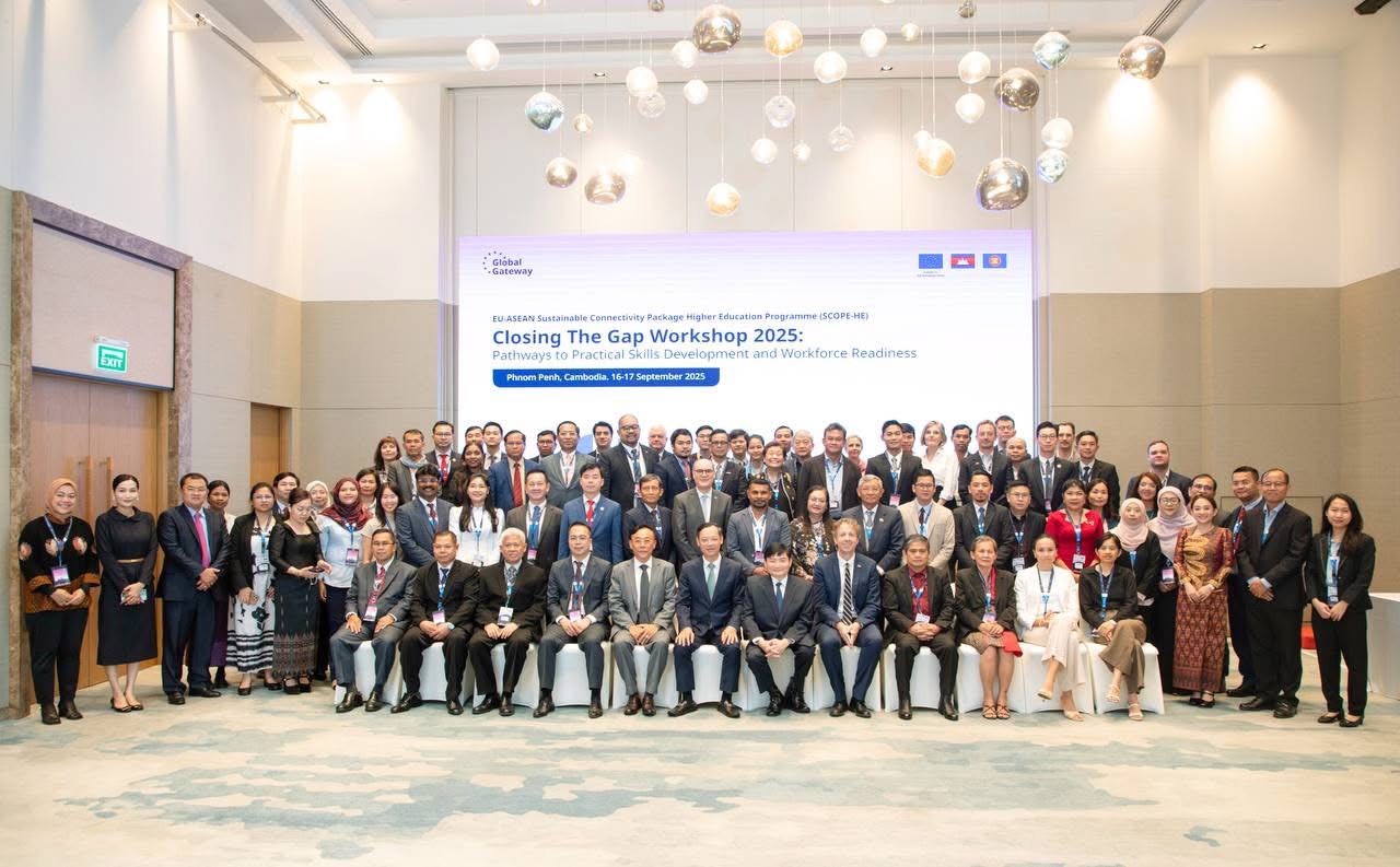 ភ្នំពេញ: ឯកឧត្ដម ហេង សួរ រដ្ឋមន្ត្រីក្រសួងការងារ និងបណ្ដុះបណ្ដាលវិជ្ជាជីវៈ និងឯកឧត្តម អ៊ីហ្គូ ទ្រីសម៉ាន់ (Igor Driesmans) ឯកអគ្គរដ្ឋទូតសហភាពអឺរ៉ុបប្រចាំកម្ពុជា បានអញ្ជើញចូលរួមជាសហអធិបតីដ៏ខ្ពង់ខ្ពស់ក្នុងសិក្ខាសាលាស្តីពី “ការអភិវឌ្ឍន៍ជំនាញជាក់ស្តែង និងការត្រៀមខ្លួនសម្រាប់កម្លាំងពលកម្មជំនាញ ឆ្នាំ២០២៥” នាព្រឹកថ្ងៃទី១៦ ខែកញ្ញា ឆ្នាំ២០២៥នេះ នៅសណ្ឋាគារហ្វ៊ែរហ្វៀល បាយ ម៉ារៀតក្នុងរាជធានីភ្នំពេញ។ សិក្ខាសាលាកម្រិតតំបន់អាស៊ាននេះ នឹងជំរុញឱ្យមានដំណោះស្រាយ ដែលអាចអនុវត្តបានចំពោះចន្លោះប្រហោងក្នុងការបណ្តុះបណ្តាលជំនាញវិជា្ជជីវៈ ដែលជាតម្រូវការទីផ្សារតាមរយៈការផ្លាស់ប្តូរចំណេះដឹងលើការអនុវត្តល្អបំផុតក្នុងការដោះស្រាយបញ្ហាផលិតភាពការងារដោយតម្រូវឱ្យមានការចូលរួមពីភាគីរដ្ឋាភិបាល គ្រឹះស្ថានបណ្តុះបណ្តាល វិស័យឯកជន និងអង្គការអន្តរជាតិនានាក្នុងតំបន់អាស៊ាន៕