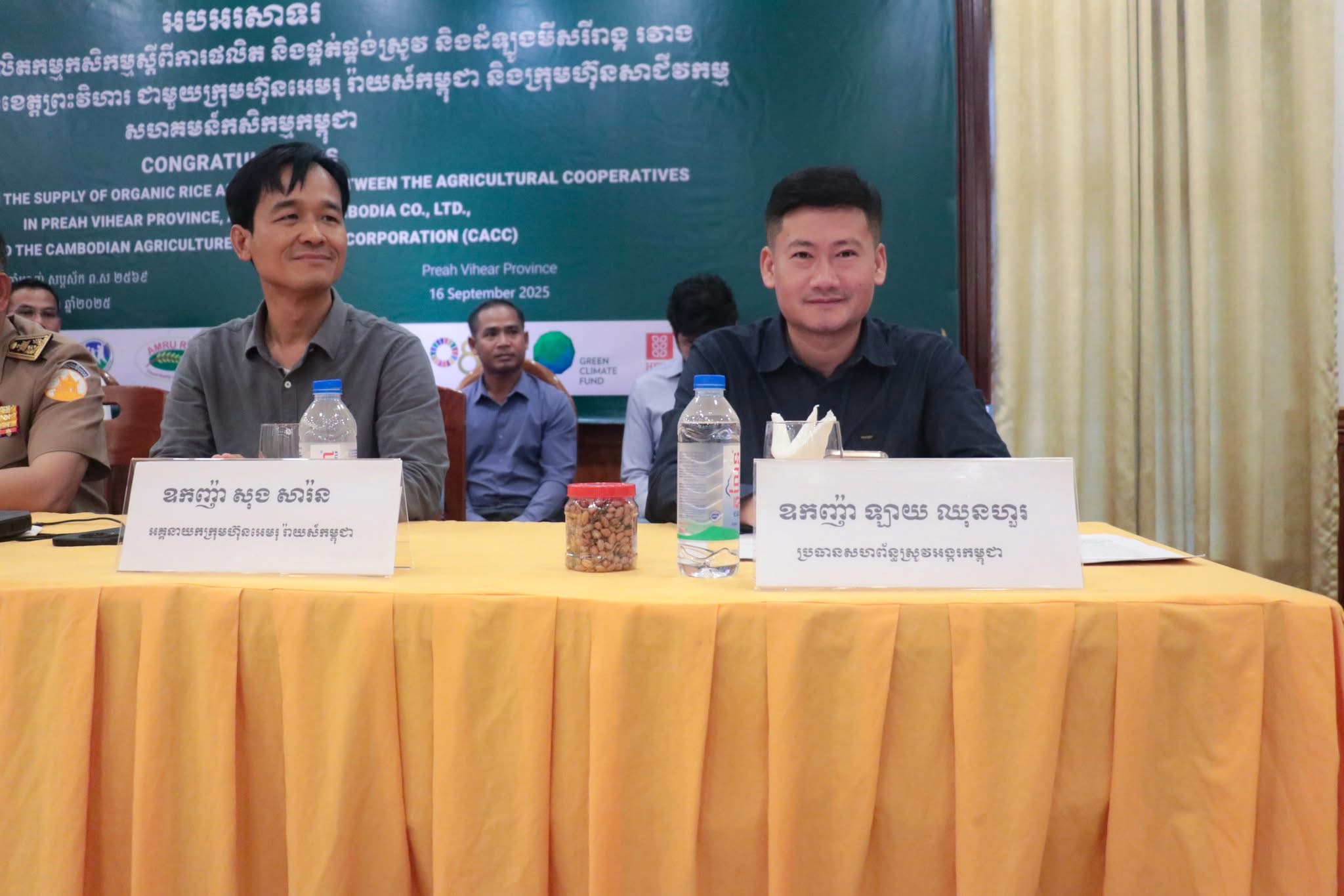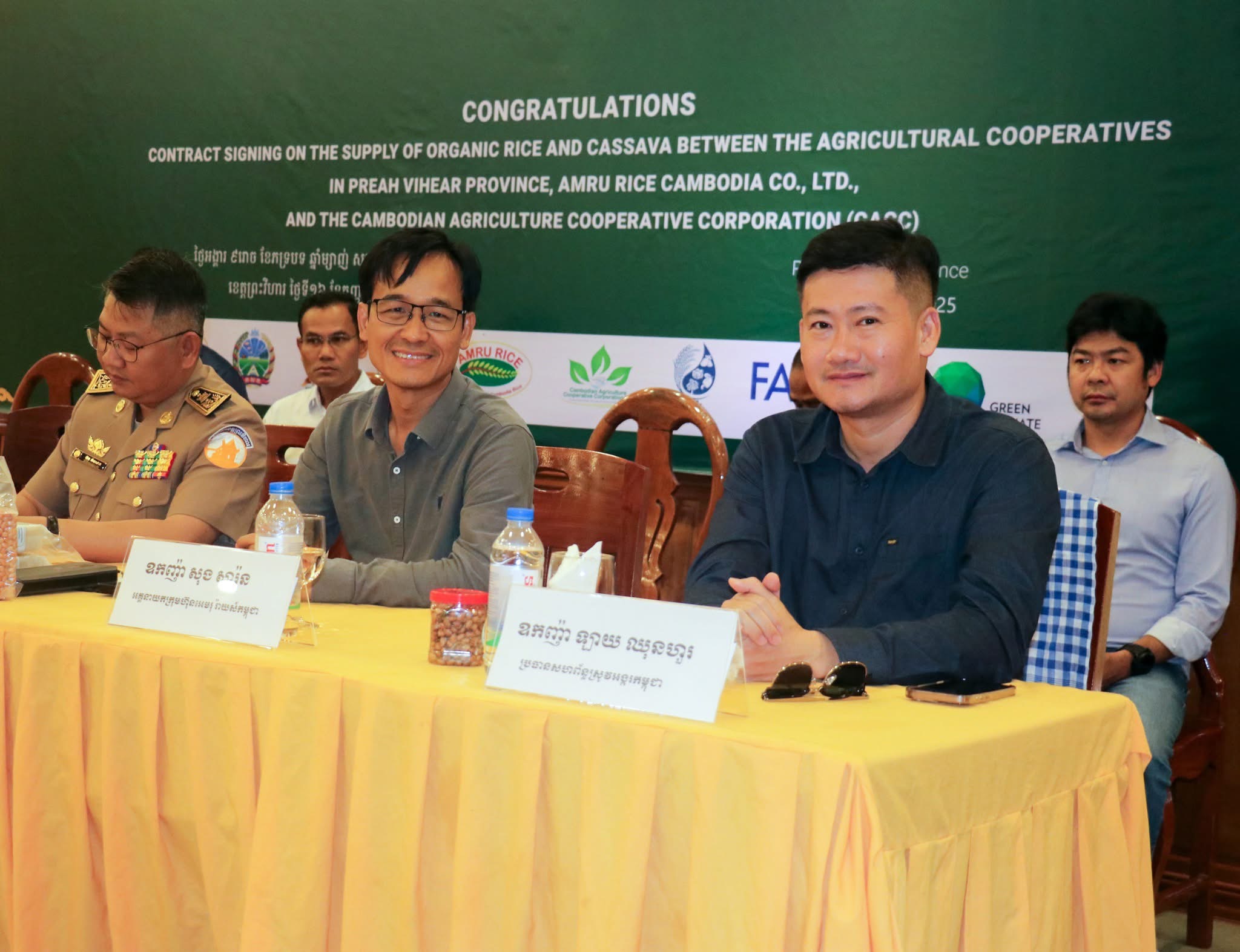 ព្រះវិហារ:នាថ្ងៃអង្គារទី១៦ ខែកញ្ញា ឆ្នាំ២០២៥នេះ ឧកញ៉ា ឡាយ ឈុនហួ ប្រធានសហព័ន្ធសហស្រូវអង្ករកម្ពុជា បានចូលរួមជាភ្ញៀវកិត្តិយស ក្នុងពិធីចុះហត្ថលេខានៃកិច្ចសន្យាកសិកម្ម រវាងក្រុមហ៊ុនឯកជនចំនួន ០២ រួមមានក្រុមហ៊ុនអេមរុរ៉ាយស៍ និងក្រុមហ៊ុនសាជីវកម្មសហគមន៍កសិកម្មកម្ពុជា (CACC) ដែលជាសមាជិកសហព័ន្ធស្រូវអង្ករកម្ពុជា លើការបញ្ជាទិញនូវកសិផលចំនួន ២ មុខ រួមមាន ស្រូវសរីរាង្គ និងដំឡូងមីសរីរាង្គ លេីបរិមាណសរុប ៧៣ ៨០០តោន ពីកសិករមកពីសហគមន៍កសិកម្មចំនួន ៣២ នៅក្នុងខេត្តព្រះវិហារ។