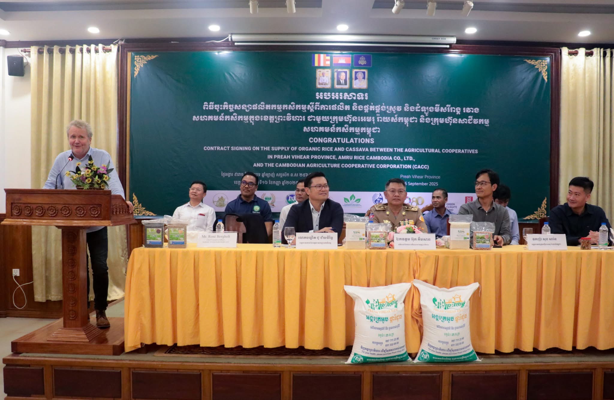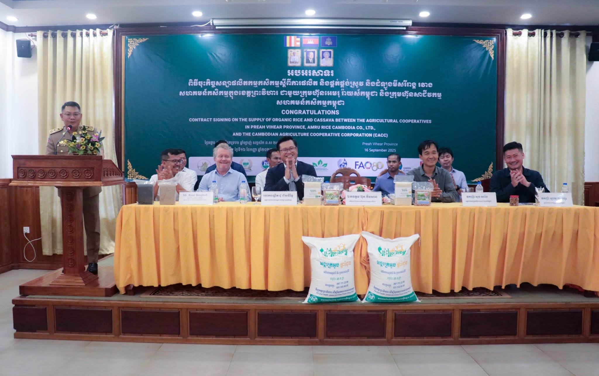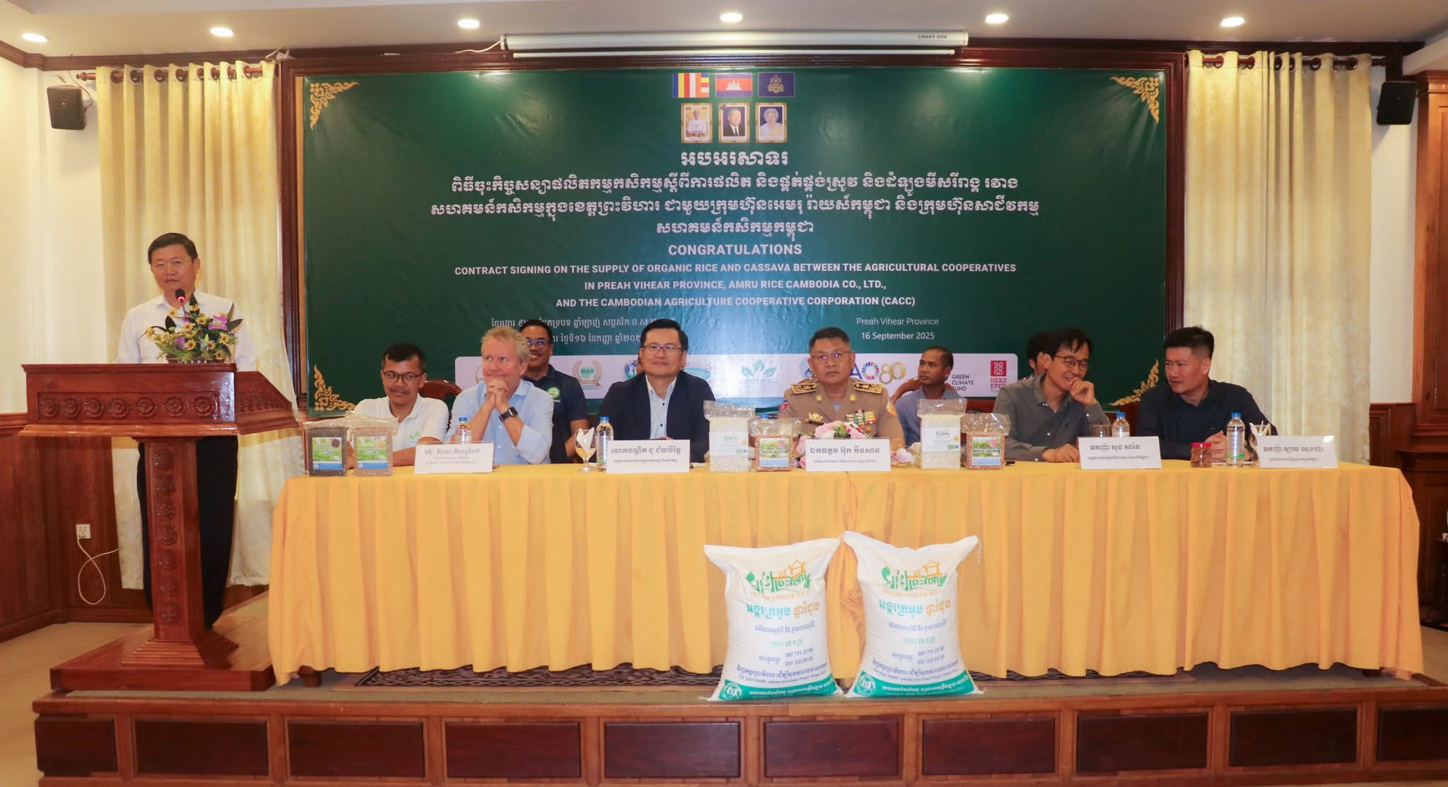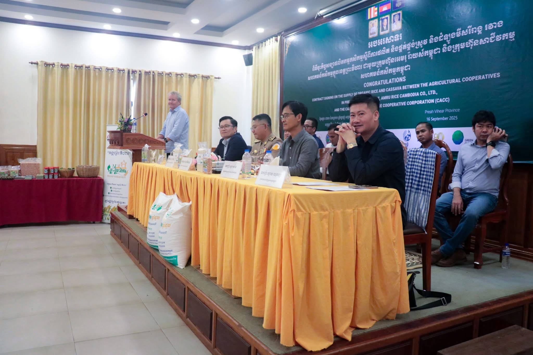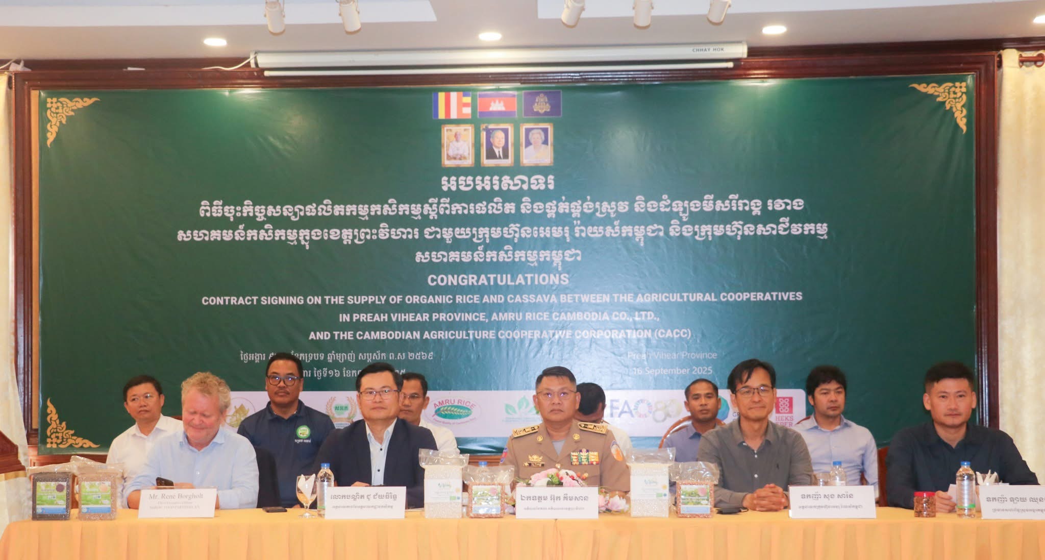 ការចុះកិច្ចព្រមព្រៀងទិញ-លក់ស្រូវ និងដំឡូងមីសរីរាង្គនេះ បានធ្វេីឡេីងតាមរយ:ការអនុវត្តផលិតកម្មកសិកម្មតាមកិច្ចសន្យា ដែលរៀបចំឡេីងនៅរសៀលថ្ងៃទី១៦ ខែកញ្ញា ឆ្នាំ២០២៥ នៅសាលប្រជុំភោជនីយដ្ឋាន លី ហួត ក្រុងព្រះវិហារ ខេត្តព្រះវិហារ ក្រោមអធិបតីភាព លោក អ៊ុក គឹមសាន្ដ អភិបាលរងខត្តព្រះវិហារ ព្រមទាំងមានការចូលរួមពីក្រុមហ៊ុនបញ្ជាទិញ មន្ទីរជំនាញពាក់ព័ន្ធ អង្គការដៃគូ ថ្នាក់ដឹកនាំ និងតំណាងសហគមន៍កសិកម្មទាំង ៣២ ផងដែរ ។