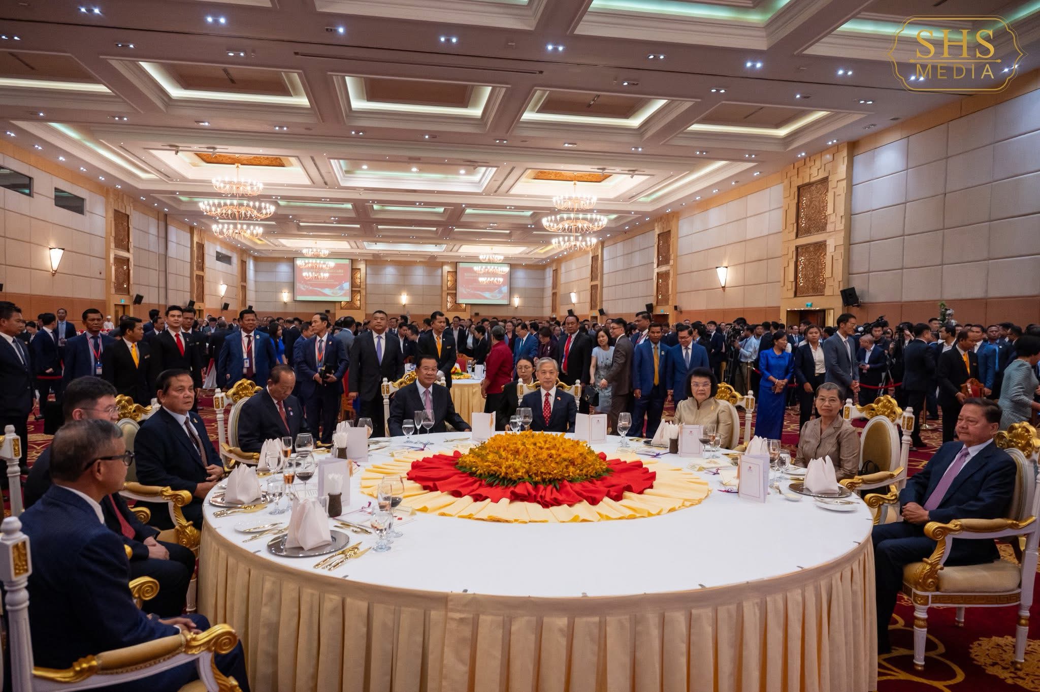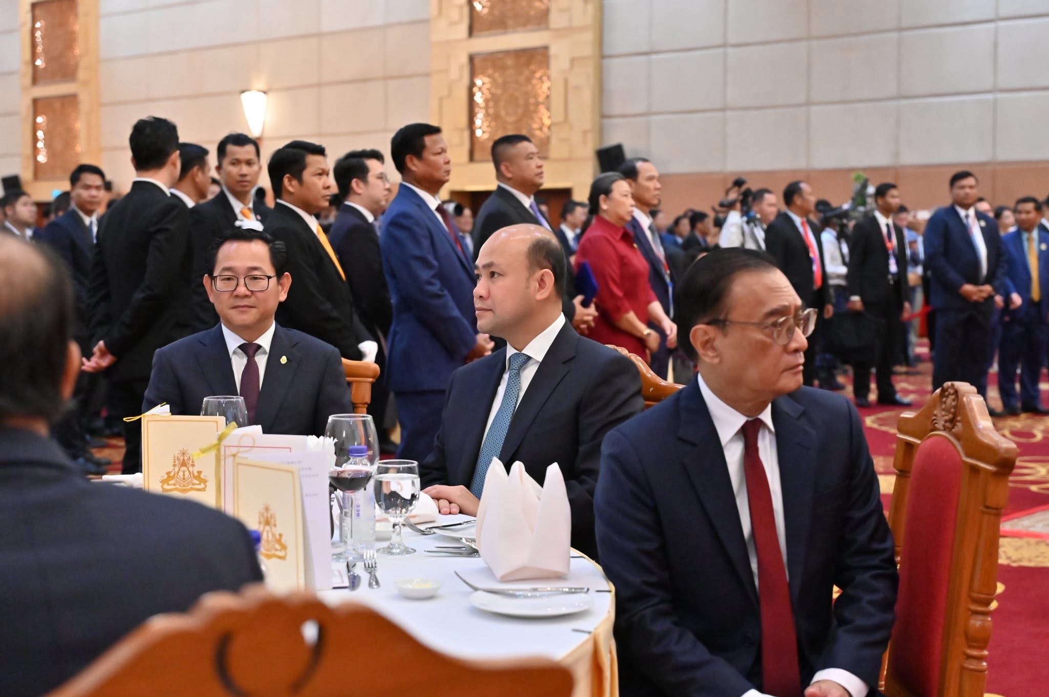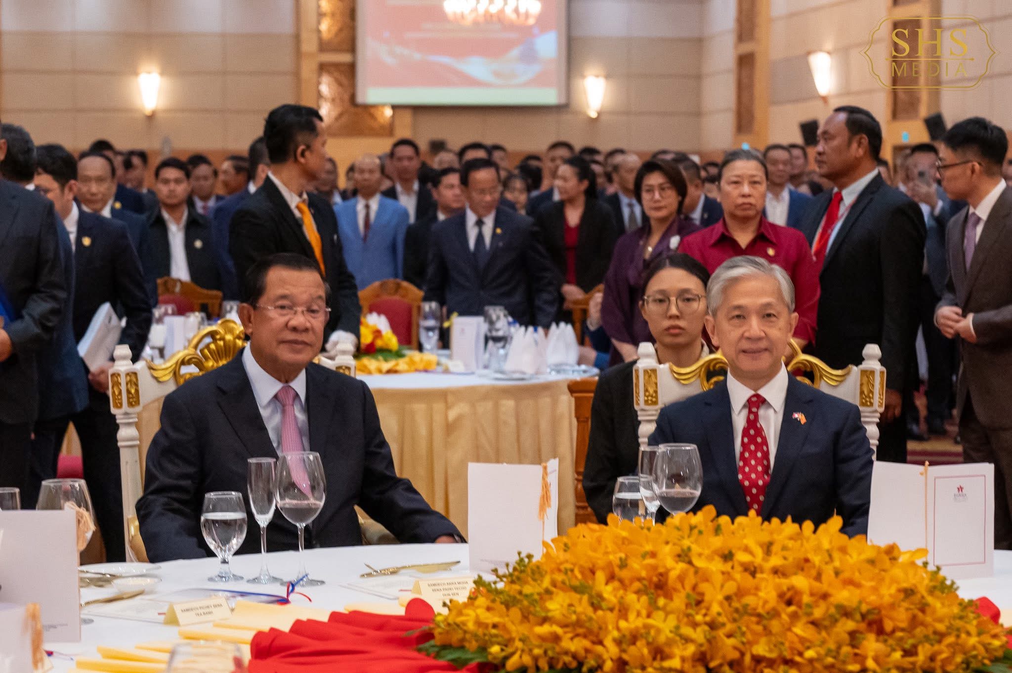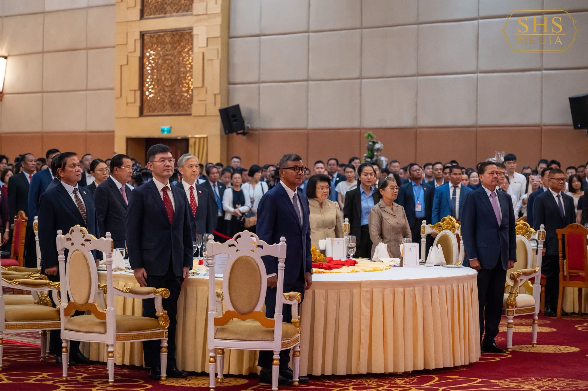 ភ្នំពេញ:នៅល្ងាចថ្ងៃសុក្រទី២៦ ខែកញ្ញា ឆ្នាំ២០២៥ សម្ដេចអគ្គមហាសេនាបតីតេជោ ហ៊ុន សែន ប្រមុខរដ្ឋស្ដីទីនៃព្រះរាជាណាចក្រកម្ពុជា បានអញ្ជើញចូលរួមក្នុងពិធីជប់លៀងអបអរសាទរខួប៧៦ នៃការបង្កើតសាធារណរដ្ឋប្រជាមានិតចិន ដែលពិធីនេះប្រារព្ធធ្វើឡើងនៅសណ្ឋាគារសុខាភ្នំពេញ។ ពិធីនេះមានការអញ្ជើញចូលរួមពីឯកឧត្តម វ៉ាង វិនពីន ឯកអគ្គរដ្ឋទូតវិសាមញ្ញ និងពេញសមត្ថភាព នៃសាធារណរដ្ឋប្រជាមានិតចិន ប្រចាំកម្ពុជា, សមាជិកព្រឹទ្ធសភា រដ្ឋសភា និងរាជរដ្ឋាភិបាល, តំណាងអង្គទូត នៃប្រទេសជាមិត្តប្រចាំកម្ពុជា ព្រមទាំងភ្ញៀវកិត្តិយសជាតិ និងអន្តរជាតិជាច្រើនរូបទៀត។