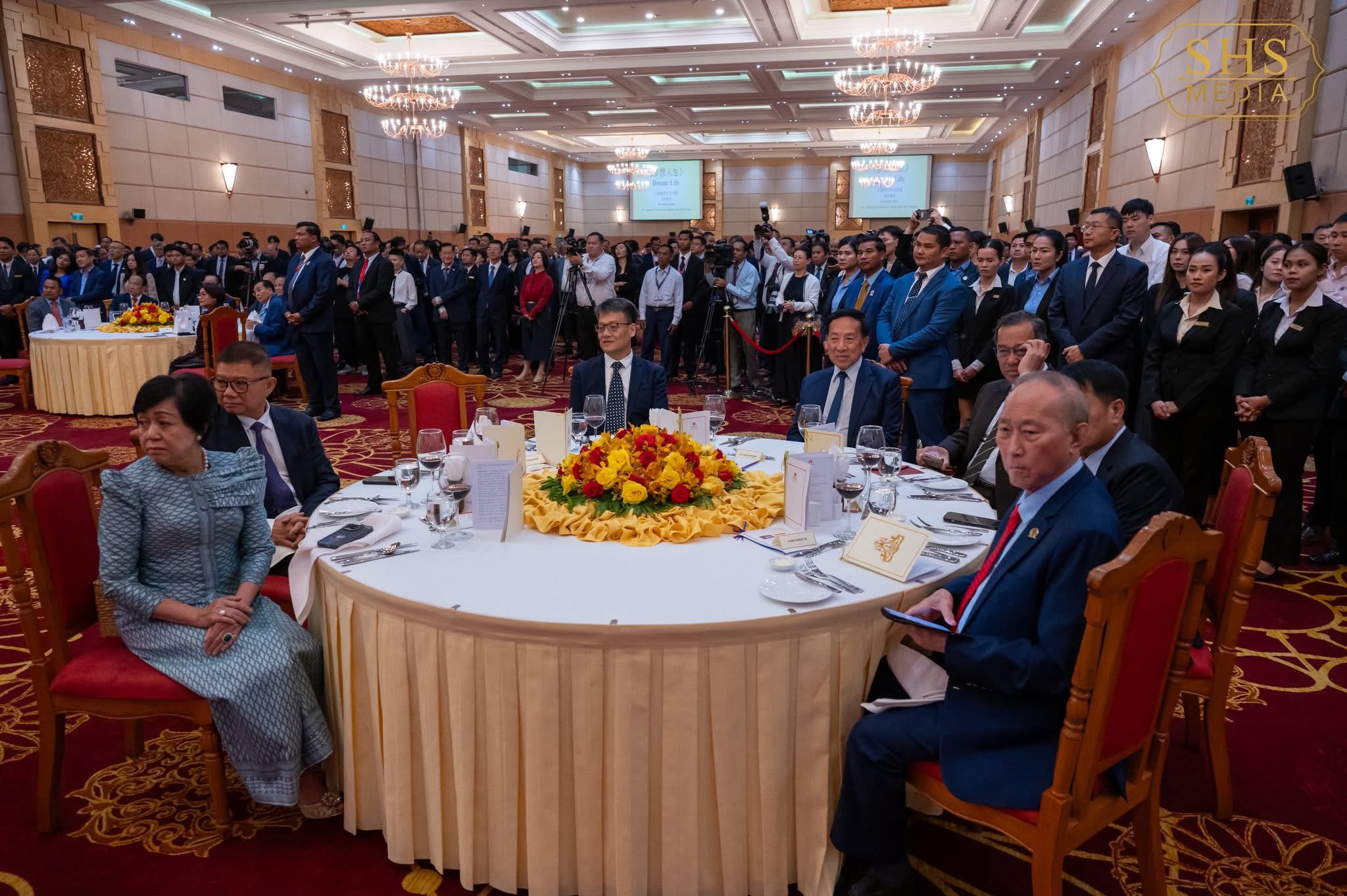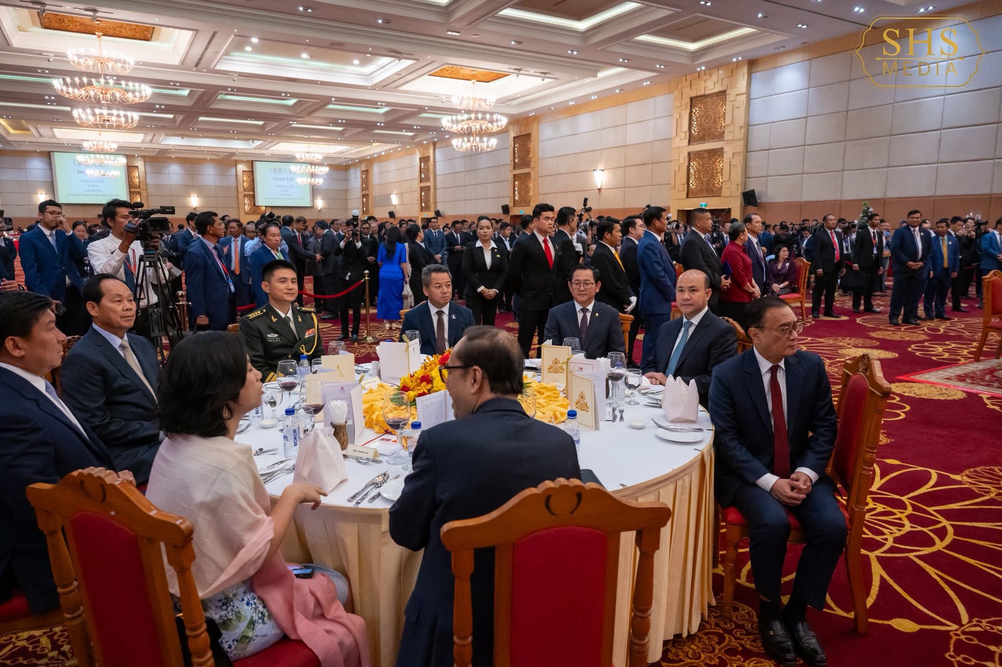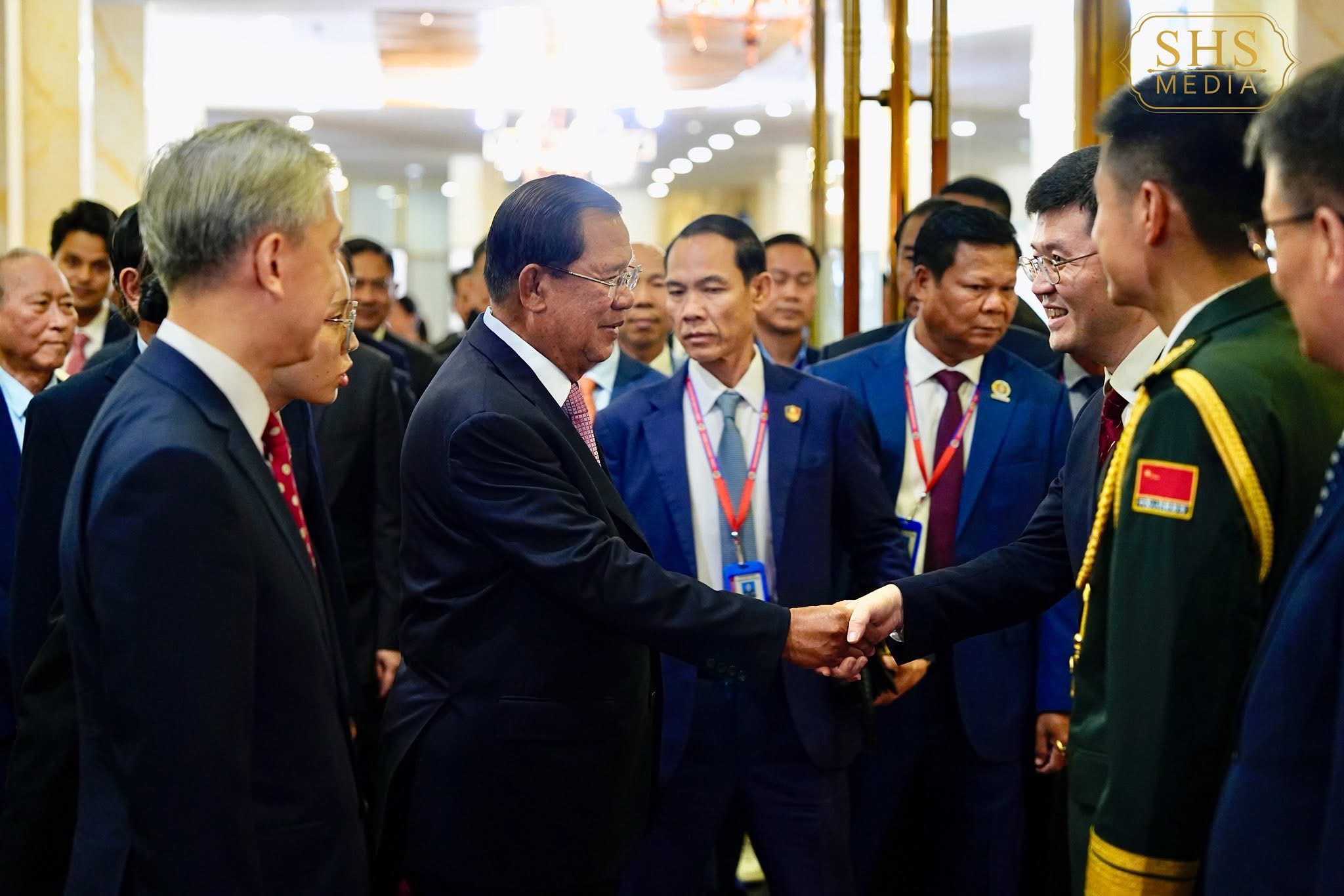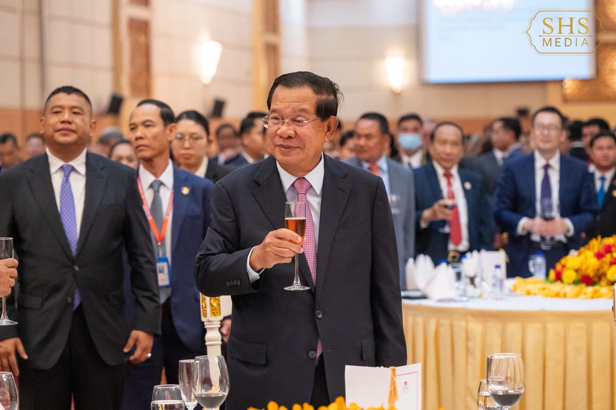 ភ្នំពេញ:នៅល្ងាចថ្ងៃសុក្រទី២៦ ខែកញ្ញា ឆ្នាំ២០២៥ សម្ដេចអគ្គមហាសេនាបតីតេជោ ហ៊ុន សែន ប្រមុខរដ្ឋស្ដីទីនៃព្រះរាជាណាចក្រកម្ពុជា បានអញ្ជើញចូលរួមក្នុងពិធីជប់លៀងអបអរសាទរខួប៧៦ នៃការបង្កើតសាធារណរដ្ឋប្រជាមានិតចិន ដែលពិធីនេះប្រារព្ធធ្វើឡើងនៅសណ្ឋាគារសុខាភ្នំពេញ។ ពិធីនេះមានការអញ្ជើញចូលរួមពីឯកឧត្តម វ៉ាង វិនពីន ឯកអគ្គរដ្ឋទូតវិសាមញ្ញ និងពេញសមត្ថភាព នៃសាធារណរដ្ឋប្រជាមានិតចិន ប្រចាំកម្ពុជា, សមាជិកព្រឹទ្ធសភា រដ្ឋសភា និងរាជរដ្ឋាភិបាល, តំណាងអង្គទូត នៃប្រទេសជាមិត្តប្រចាំកម្ពុជា ព្រមទាំងភ្ញៀវកិត្តិយសជាតិ និងអន្តរជាតិជាច្រើនរូបទៀត។