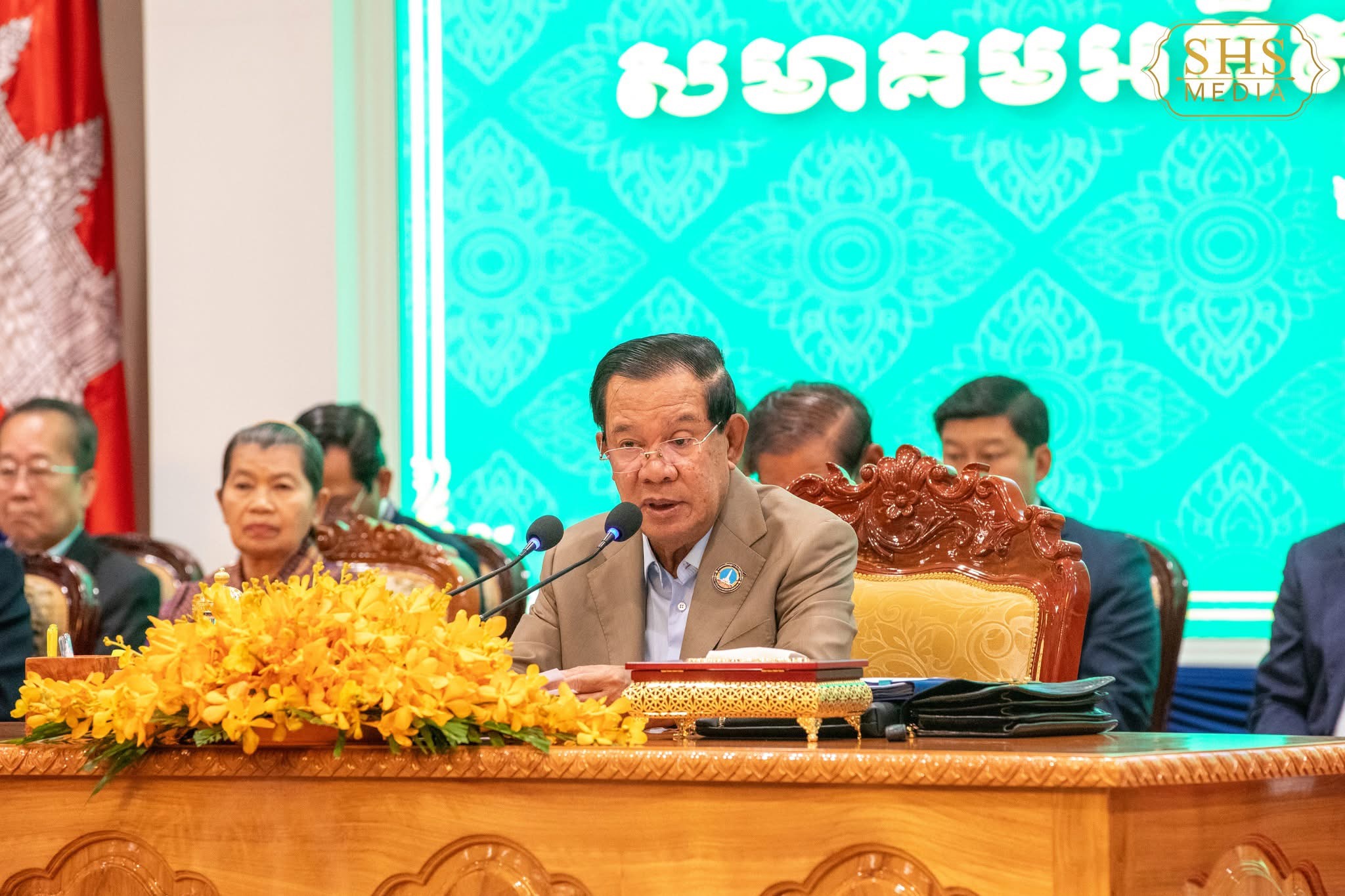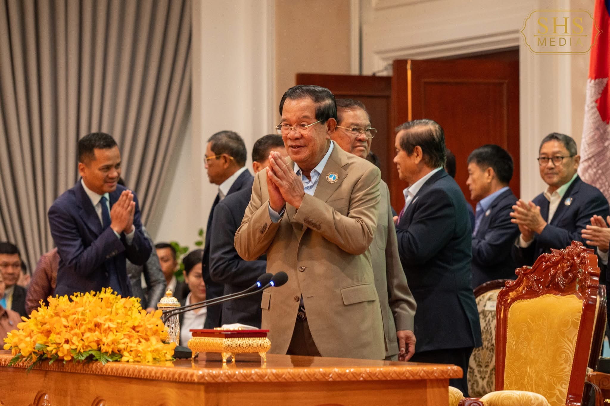 ភ្នំពេញ:នៅព្រឹកថ្ងៃចន្ទទី២៩ ខែកញ្ញា ឆ្នាំ២០២៥នេះ សម្ដេចអគ្គមហាសេនាបតីតេជោ ហ៊ុន សែន ប្រមុខរកស្ដីទី និងជាប្រធានសមាគមអតីតយុទ្ធជនកម្ពុជា អញ្ជើញជាអធិបតីភាពដ៏ខ្ពង់ខ្ពស់ក្នុងមហាសន្និបាតវិសាមញ្ញតំណាងសមាគមអតីតយុទ្ធជនកម្ពុជាទូទាំងប្រទេស ដែលប្រារព្ធធ្វើឡើងនៅក្រសួងមហាផ្ទៃ។