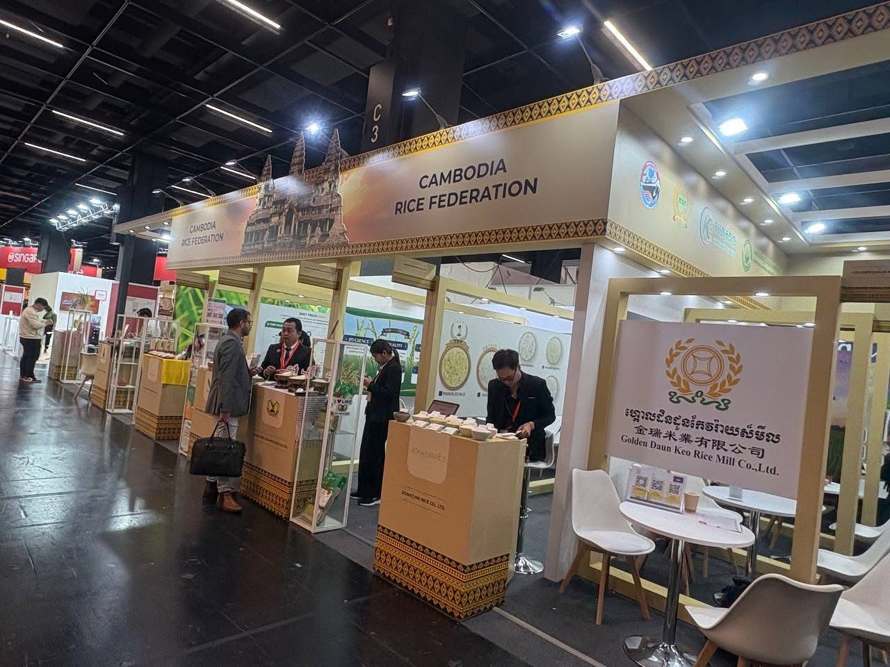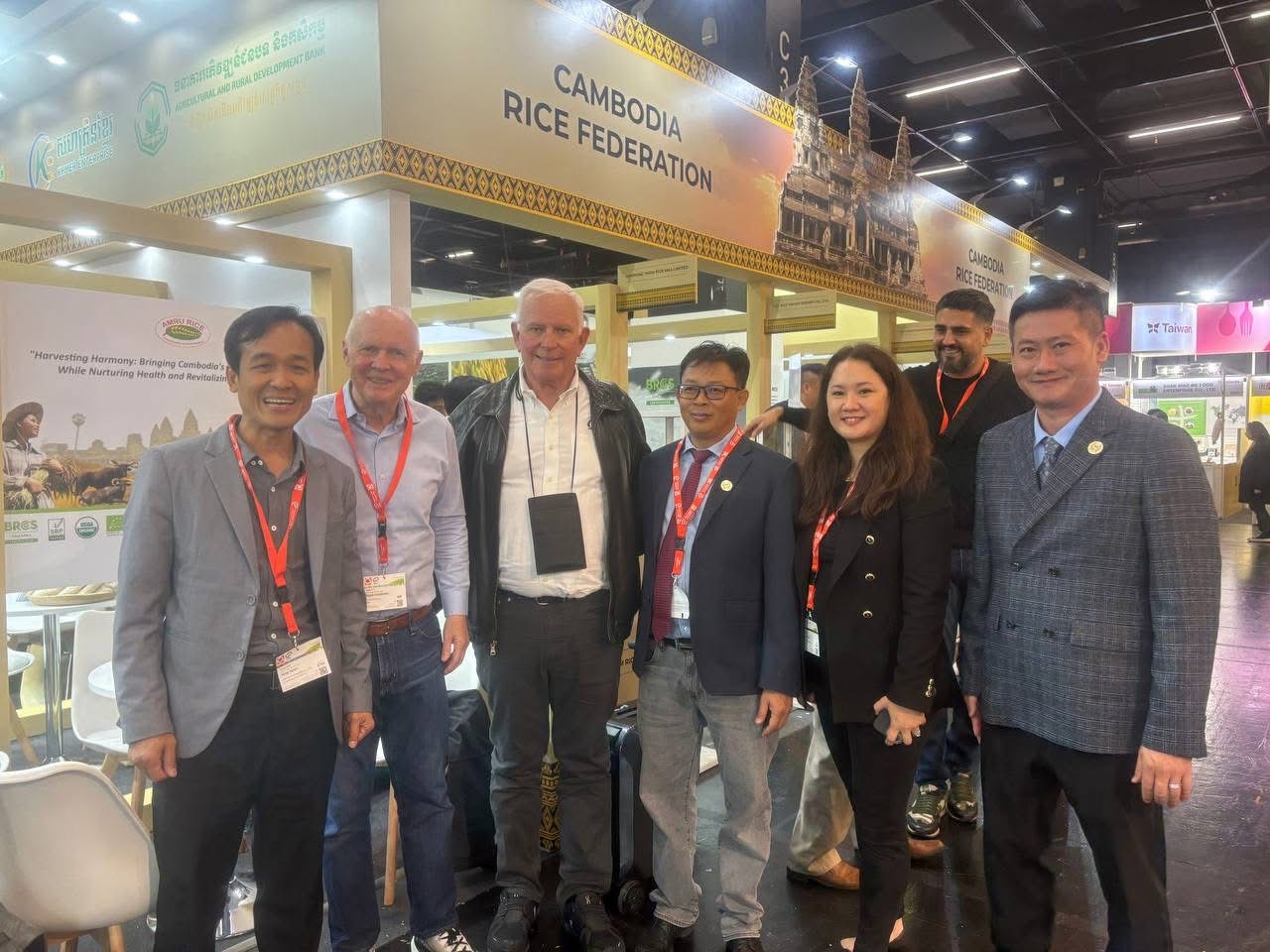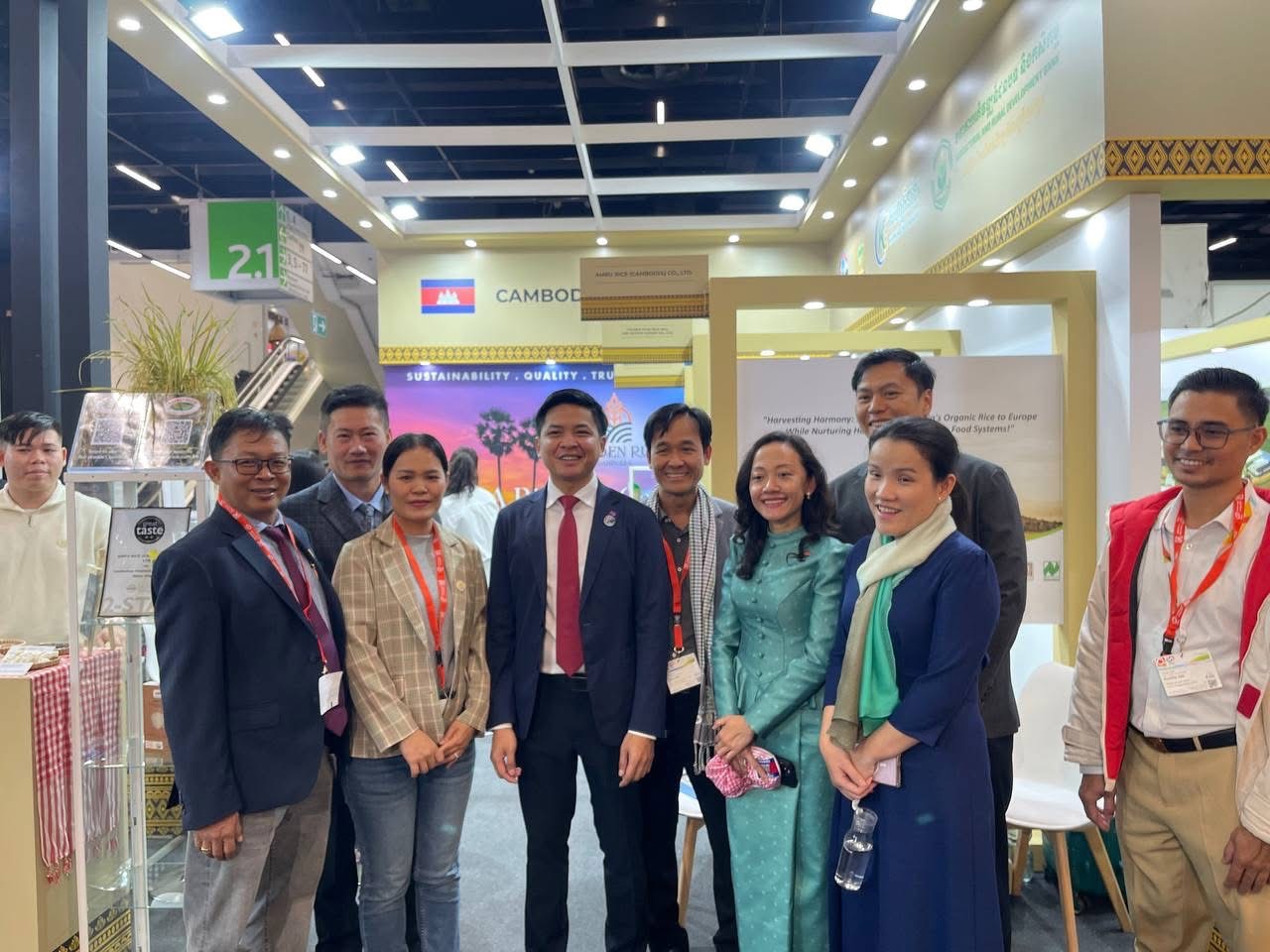 អាឡឺម៉ង់:នៅមជ្ឈមណ្ឌលពិព័រណ៍អន្តរជាតិ Koelnmesse ទីក្រុងកូឡូញ ប្រទេសអាឡឺម៉ង់នៅថ្ងៃសៅរ៍ថ្ងៃទី៤ខែតុលាឆ្នាំ២០២៥នេះ ដោយមានការយកចិត្តទុកដាក់ខ្ពស់ពីរាជរដ្ឋាភិបាល តាមរយៈក្រសួងពាណិជ្ជកម្ម សហគ្រិនខ្មែររបស់ក្រសួងឧស្សាហកម្ម វិទ្យាសាស្ត្រ បច្ចេកវិទ្យា និង នវានុវត្តន៍ ធនាគារអភិវឌ្ឍន៍ជនបទ និងកសិកម្ម​ សហព័ន្ធស្រូវអង្ករកម្ពុជាបានរៀបចំសម្ពោធ នូវពន្លាសហព័ន្ធស្រូវអង្ករកម្ពុជាយ៉ាងស្រស់ស្អាត។