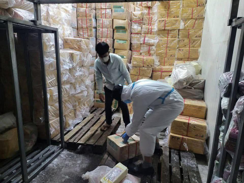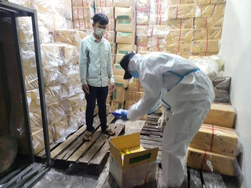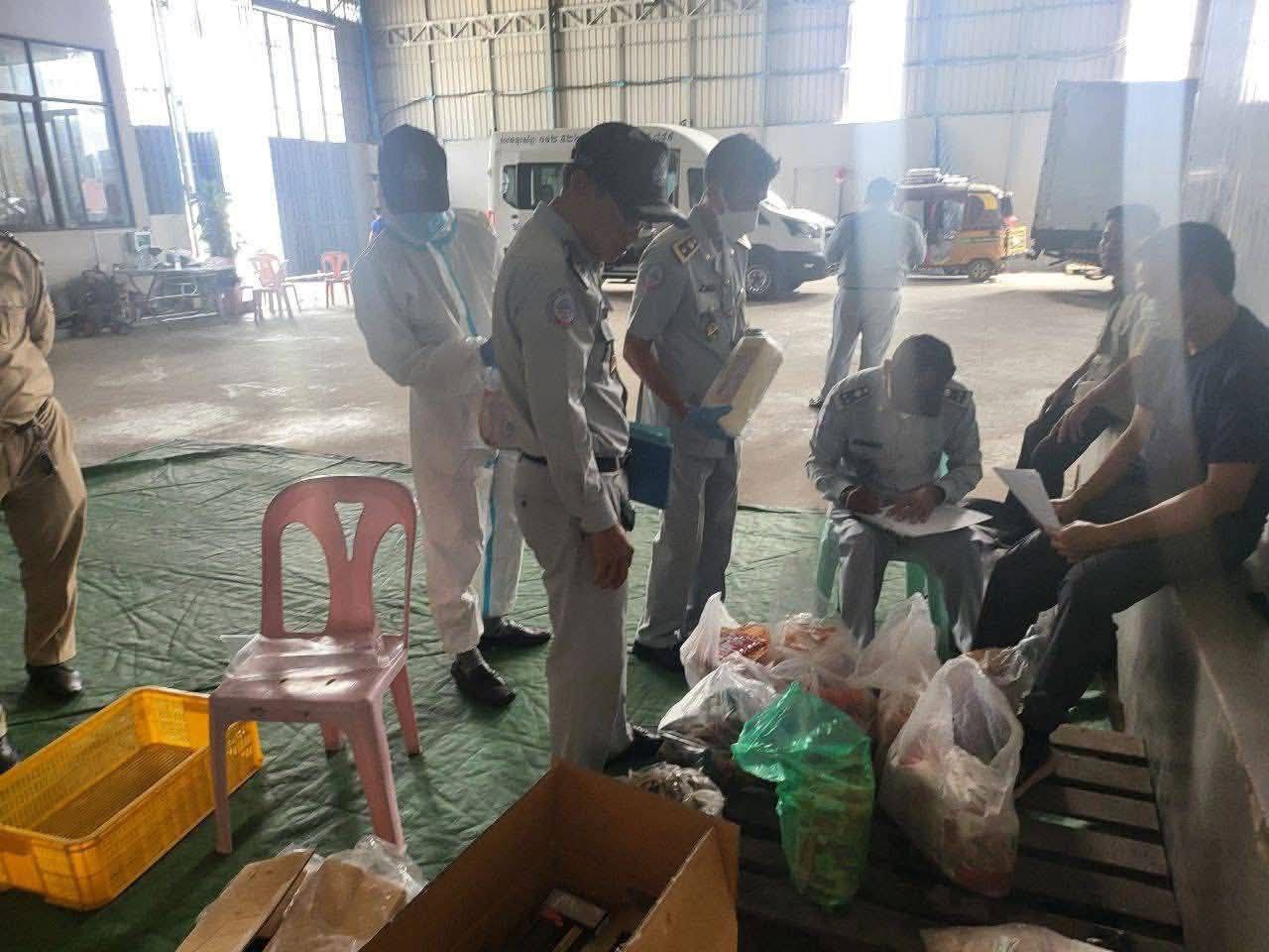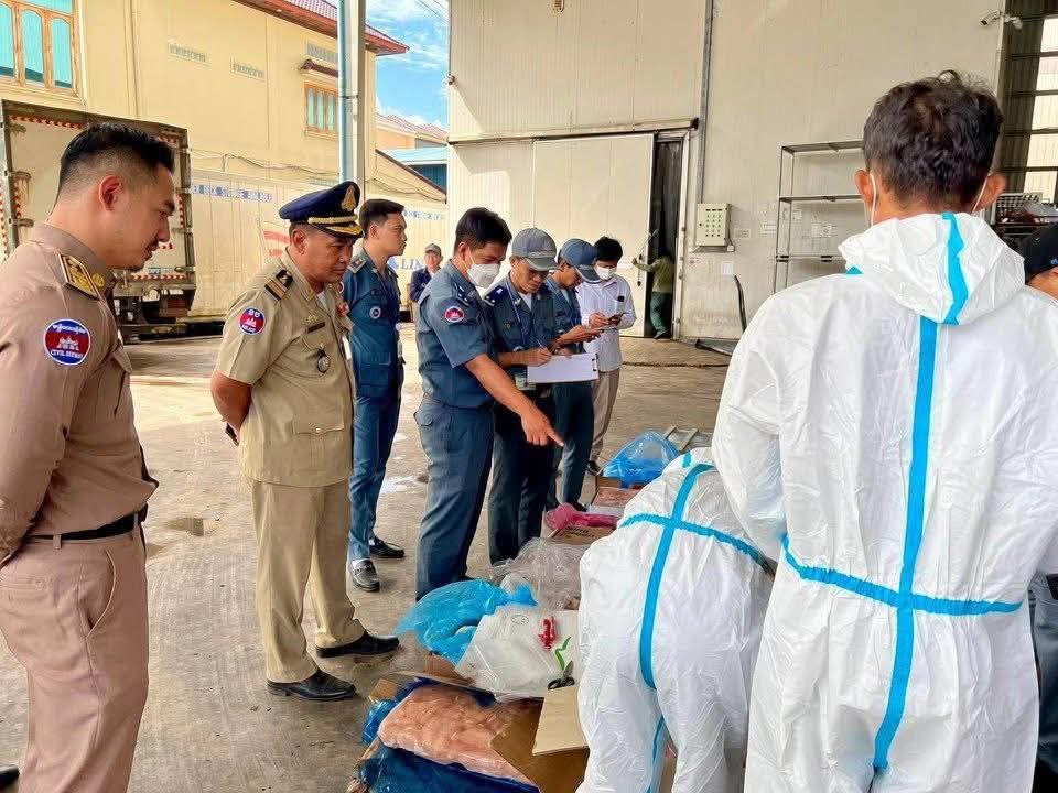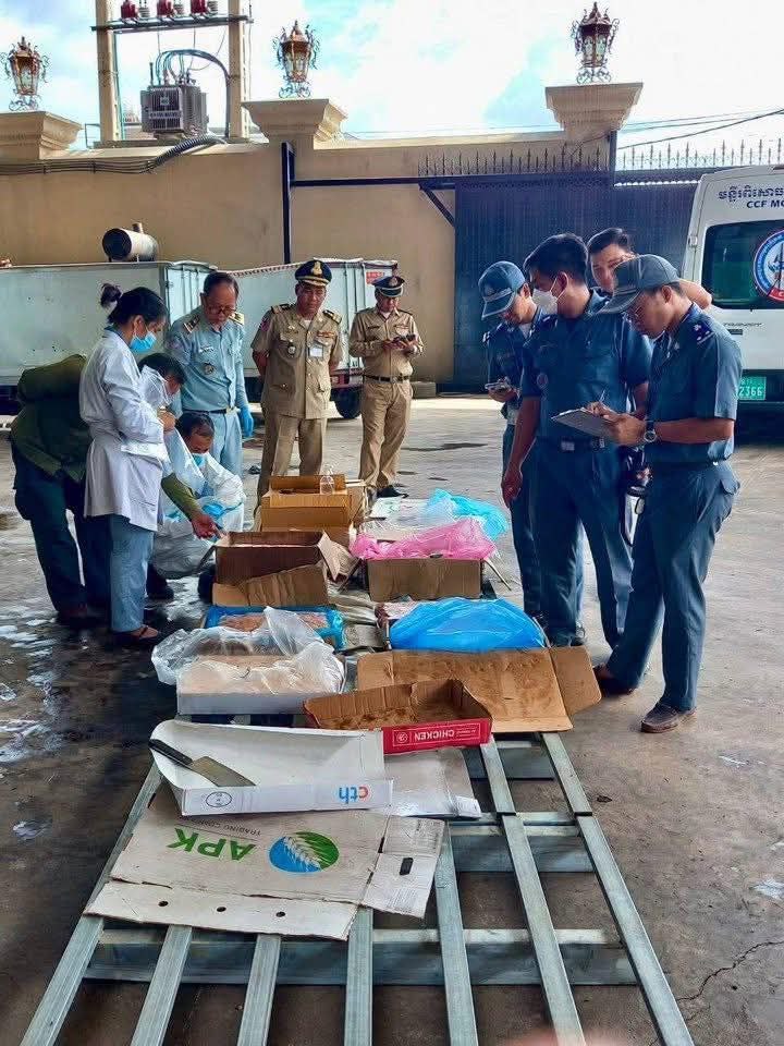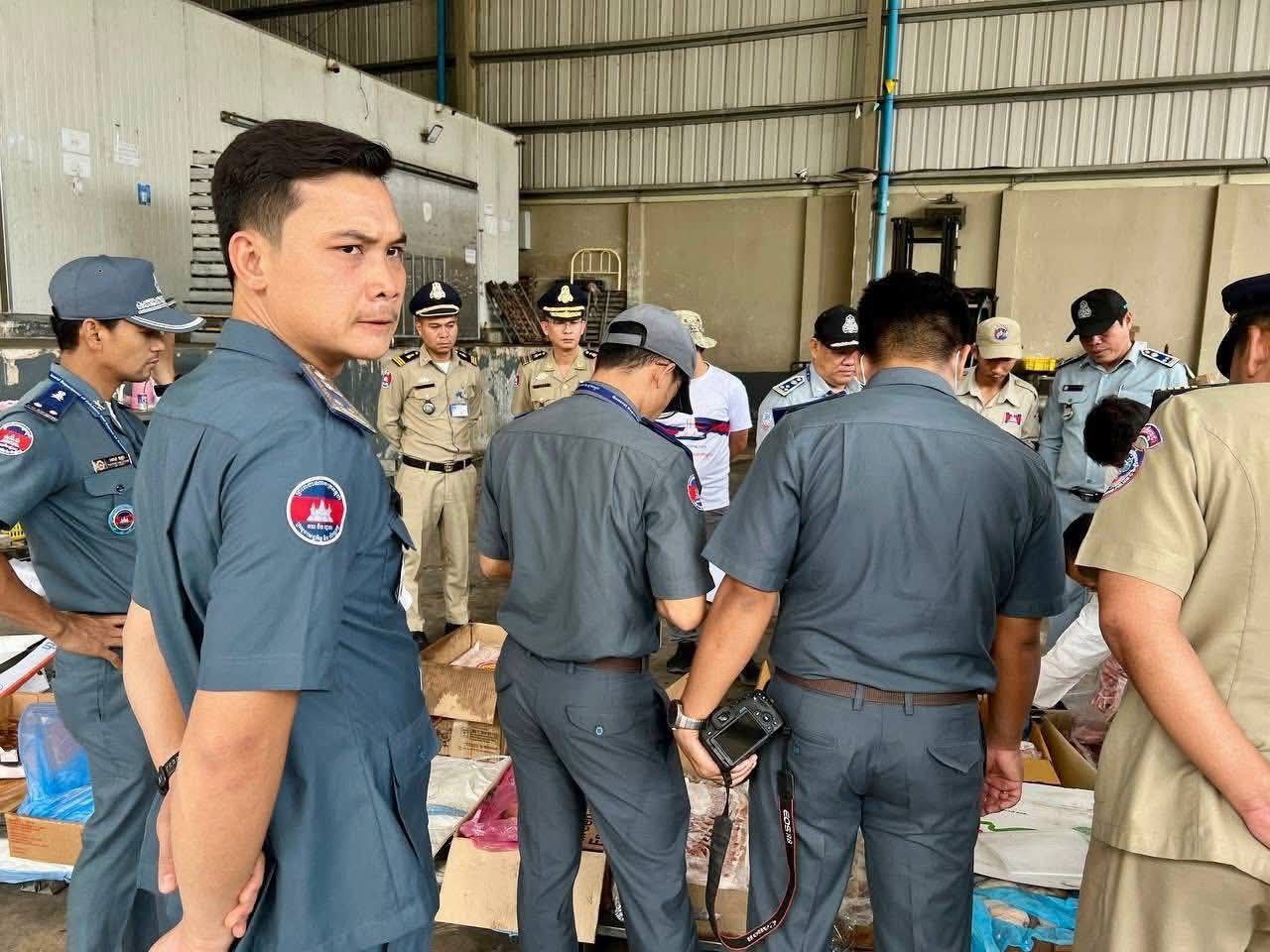 ភ្នំពេញ ៖សមត្ថកិច្ចចម្រុះរួមមានមន្រ្តីគយចល័តតំបន់១ ,មន្ត្រី ក.ប.ប ក្រសួងពាណិជ្ជកម្ម មន្រ្តីនគរបាលសេដ្ឋកិច្ចស្នងការដ្ឋាននគរបាលរាជធានីភ្នំពេញ រួមទាំងមន្ត្រីមូលដ្ឋាន បានចុះត្រួតពិនិត្យសាច់ក្លាសេ របស់ ឧកញ៉ា អ៉ឹម សុផាន់ណារឹទ្ធ ហៅចែទូច ចំនួន ២ទីតាំង នៅសង្កាត់ច្រាំងចំរេះ១ ខណ្ឌឫស្សីកែវ រាជធានីភ្នំពេញ រកឃេីញសាច់ក្លាសេ សរុបចំនួន ៣មុខ សាច់មាន់ សាច់ទា សាច់ជ្រូក សរុបចំនួនជាង ២៤៤តោន។