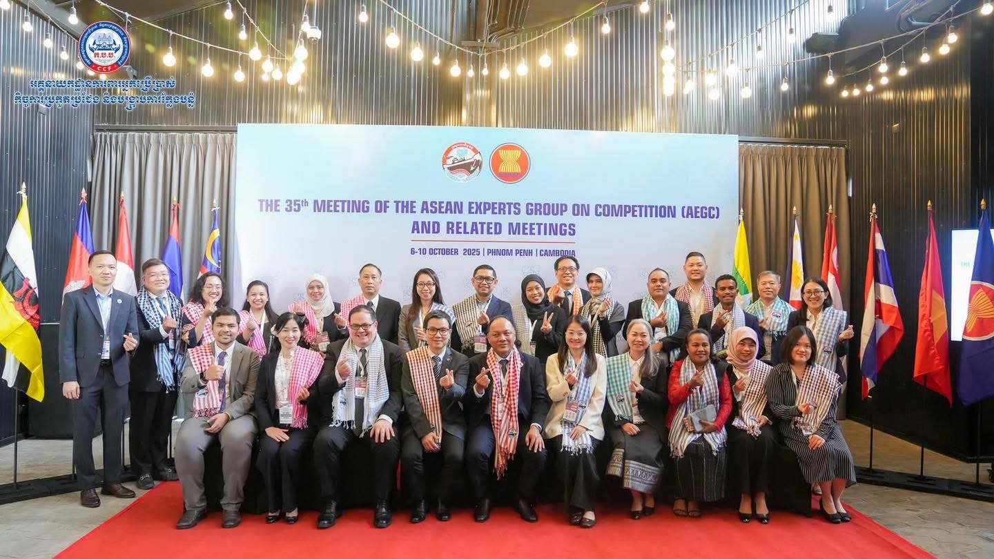 (ភ្នំពេញ)៖ នាព្រឹកថ្ងៃចន្ទ ទី៦ ខែតុលា ឆ្នាំ២០២៥ នៅសណ្ឋាគារ Tribe ភ្នំពេញ អគ្គនាយកដ្ឋានការពារអ្នកប្រើប្រាស់ កិច្ចការប្រកួតប្រជែង និងបង្រ្កាបការក្លែងបន្លំ «ក.ប.ប.» នៃក្រសួងពាណិជ្ជកម្ម សហការជាមួយជាមួយទីភ្នាក់ងារកិច្ចសហប្រតិបត្តិការអាល្លឺម៉ង់ (GIZ) បានទទួលធ្វើជាម្ចាស់ផ្ទះក្នុងការរៀបចំ កិច្ចប្រជុំប្រធានស្ថាប័នប្រកួតប្រជែងអាស៊ានលើកទី៦ (The 6th AHCA Meeting) ក្រោមការដឹកនាំនិងសម្របសម្រួលដោយ ឯកឧត្តម គឹម មាសសុខសីហា អគ្គនាយកនៃអគ្គនាយកដ្ឋាន ក.ប.ប. នៃក្រសួងពាណិជ្ជកម្ម ក្នុងនាមជាប្រធាន AHCA។