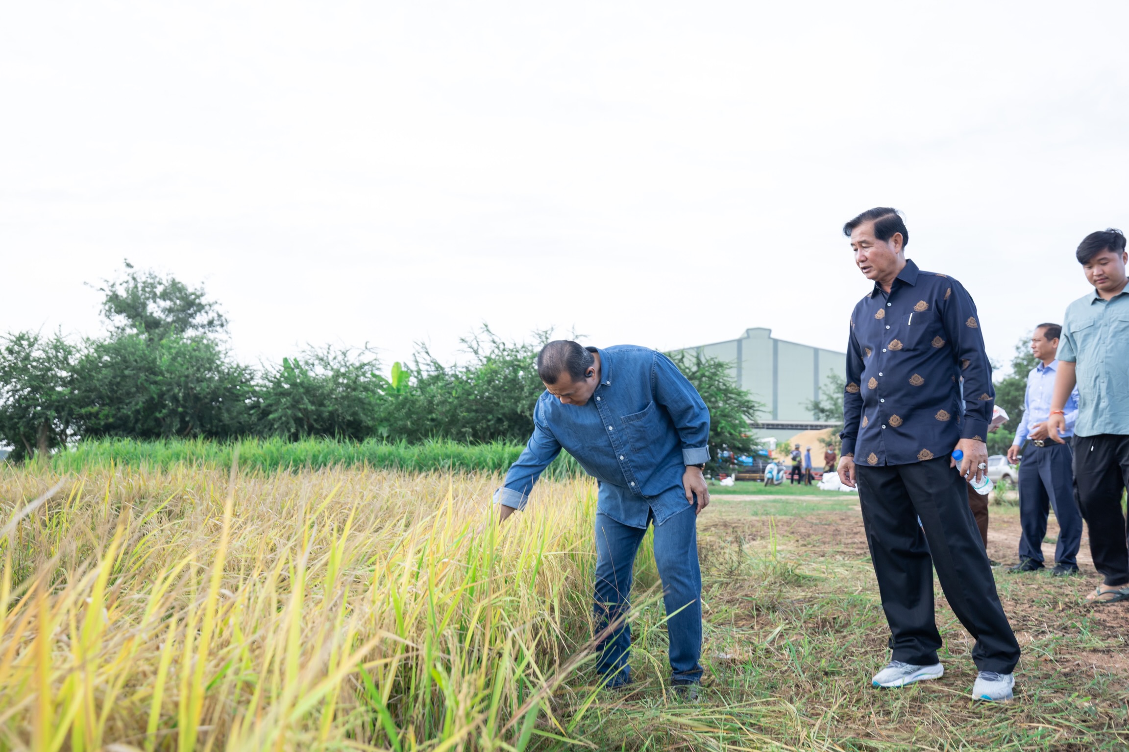 ការអញ្ជើញចុះពិនិត្យមើលការច្រូតស្រូវ ស្រែគំរូ របស់ ឯកឧត្តមបណ្ឌិត កៅ ថាច ខាងលើនេះ គឺស្ថិតនៅរោងម៉ាស៊ីនកិន ស្រូវរបស់ លោក ឈិត ប៊ុនថន ដែលបានដាំដុះស្រូវជាស្រែគំរូ ពូជសែនក្រអូប ដើម្បីបង្ហាញដល់កសិករអាចយកជាបទពិសោធន៍ សម្រាប់ជាគំរូយកទៅអនុវត្តបន្តអាចទទួលបានទិន្នផលចន្លោះពី ៧ទៅ៨តោនក្នុង ១ហិកតា។