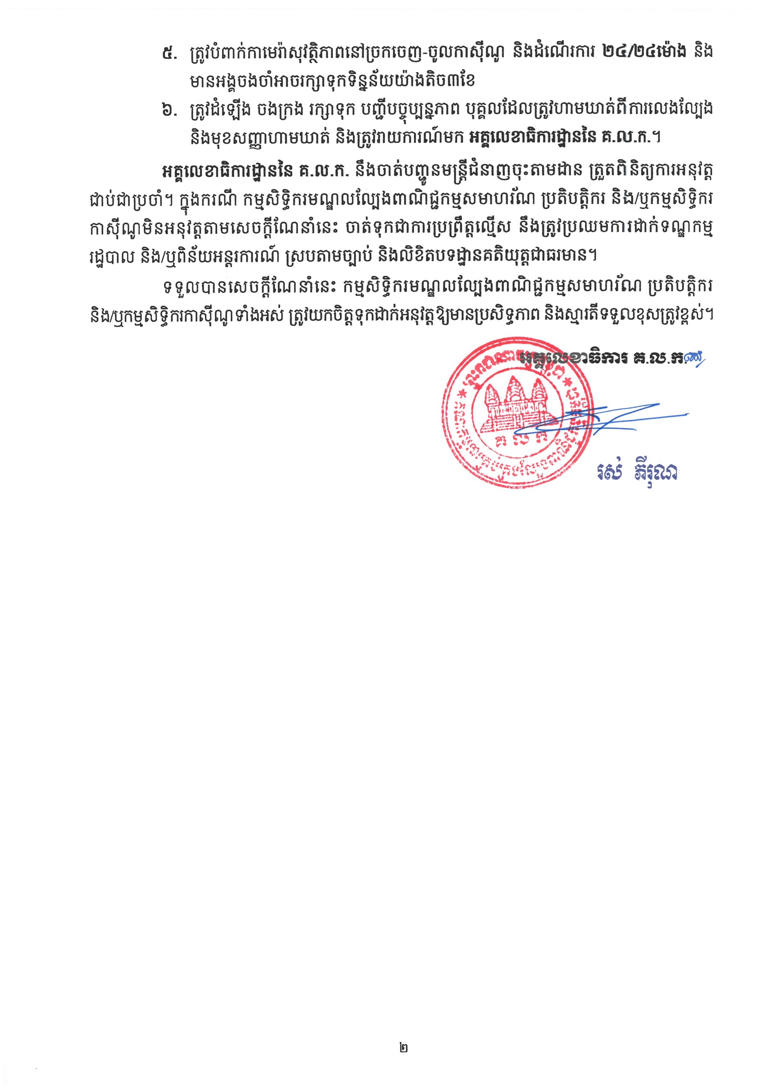 ភ្នំពេញ:គណៈកម្មការគ្រប់គ្រងល្បែងពាណិជ្ជកម្មកម្ពុជាចេញសេចក្តីណែនាំ
