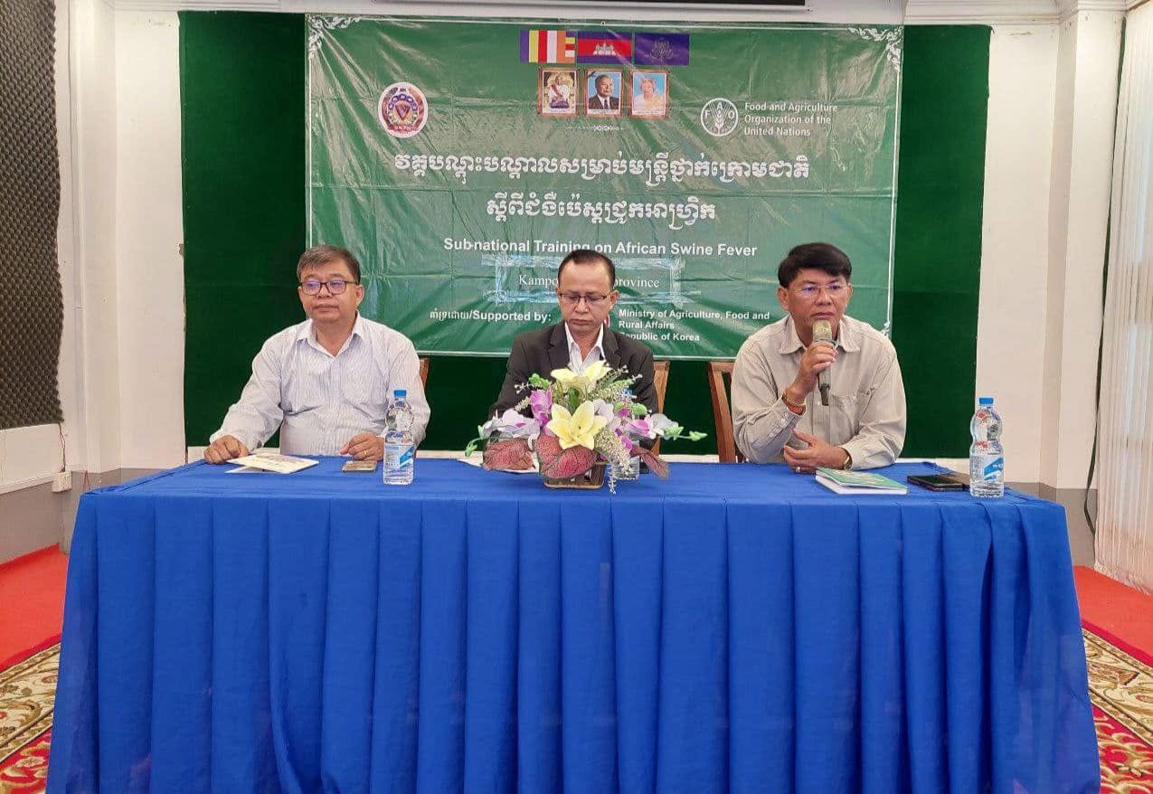 ភ្នំពេញះ លោក នូ យុត្តិកា អគ្គនាយករងនៃអគ្គនាយកដ្ឋានសុខភាពសត្វ និងផលិតកម្មសត្វ ដោយបានការអនុញ្ញាតពីឯកឧត្តម តាន់ ផាន់ណារ៉ា ប្រតិភូរាជរដ្ឋាភិបាលកម្ពុជាទទួលបន្ទុកជាអគ្គនាយកនៃអគ្គនាយកដ្ឋានសុខភាពសត្វ និងផលិតកម្មសត្វ កាលពីថ្ងៃទី៩ ខែតុលា ឆ្នាំ២០២៥នេះបានអញ្ជើញជាអធិបតីក្នុងពិធីបើកវគ្គបណ្តុះបណ្តាលសម្រាប់មន្រ្តីថ្នាក់ក្រោមជាតិស្តីពីជំងឺប៉េស្តជ្រូកអាហ្វ្រិក (ASF)។ វគ្គបណ្តុះបណ្តាលនេះរៀបចំឡើងដោយមានការសហការរវាងអគ្គនាយកដ្ឋានសុខភាពសត្វ និងផលិតកម្មសត្វ ជាមួយអង្គការស្បៀង និងកសិកម្មនៃសហប្រជាជាតិប្រចាំកម្ពុជា (FAO) ដោយមានការចូលរួមពីលោក លោកស្រីតំណាងវិទ្យាស្ថានជាតិស្រាវជ្រាវសុខភាពសត្វ និងផលិតកម្មសត្វ នាយកដ្ឋានសុខភាពសត្វ និងសុខភាពសាធារណៈបសុព្យាបាល ជាគ្រូបង្គោល លោកប្រធាន-អនុប្រធាន និងមន្រ្តីជំនាញផលិតកម្ម និងបសុព្យាបាលខេត្តកំពង់ធំ។