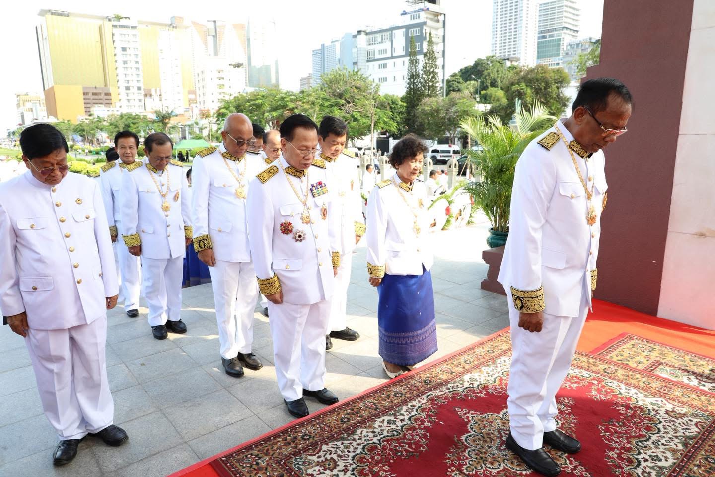 ភ្នំពេញ:ឯកឧត្តម វង សូត អនុប្រធានទី២រដ្ឋសភា នៅរសៀលថ្ងៃទី៨ ខែវិច្ឆិកា ឆ្នាំ២០២៥ បានដឹកនាំគណៈប្រតិភូរដ្ឋសភា អញ្ជើញដាក់កម្រងផ្កានៅវិមានឯករាជ្យ និងគោរពព្រះវិញ្ញាណក្ខន្ធ និងថ្វាយកម្រងផ្កានៅមុខមណ្ឌបព្រះបរមរូប ព្រះបរមរតនកោដ្ឋ ព្រះករុណា ព្រះបាទ សម្តេច នរោត្តម សីហនុ ព្រះមហាវីរក្សត្រ ព្រះវររាជបិតាឯករាជ្យ បូរណភាពទឹកដី និងឯកភាពជាតិខ្មែរ នៅមណ្ឌបព្រះបរមរូបសួនច្បារខាងកើតវិមានឯករាជ្យ មុនមួយថ្ងៃនៃទិវាបុណ្យឯករាជ្យជាតិ៩វិច្ឆិកា ឆ្នាំ២០២៥ ។