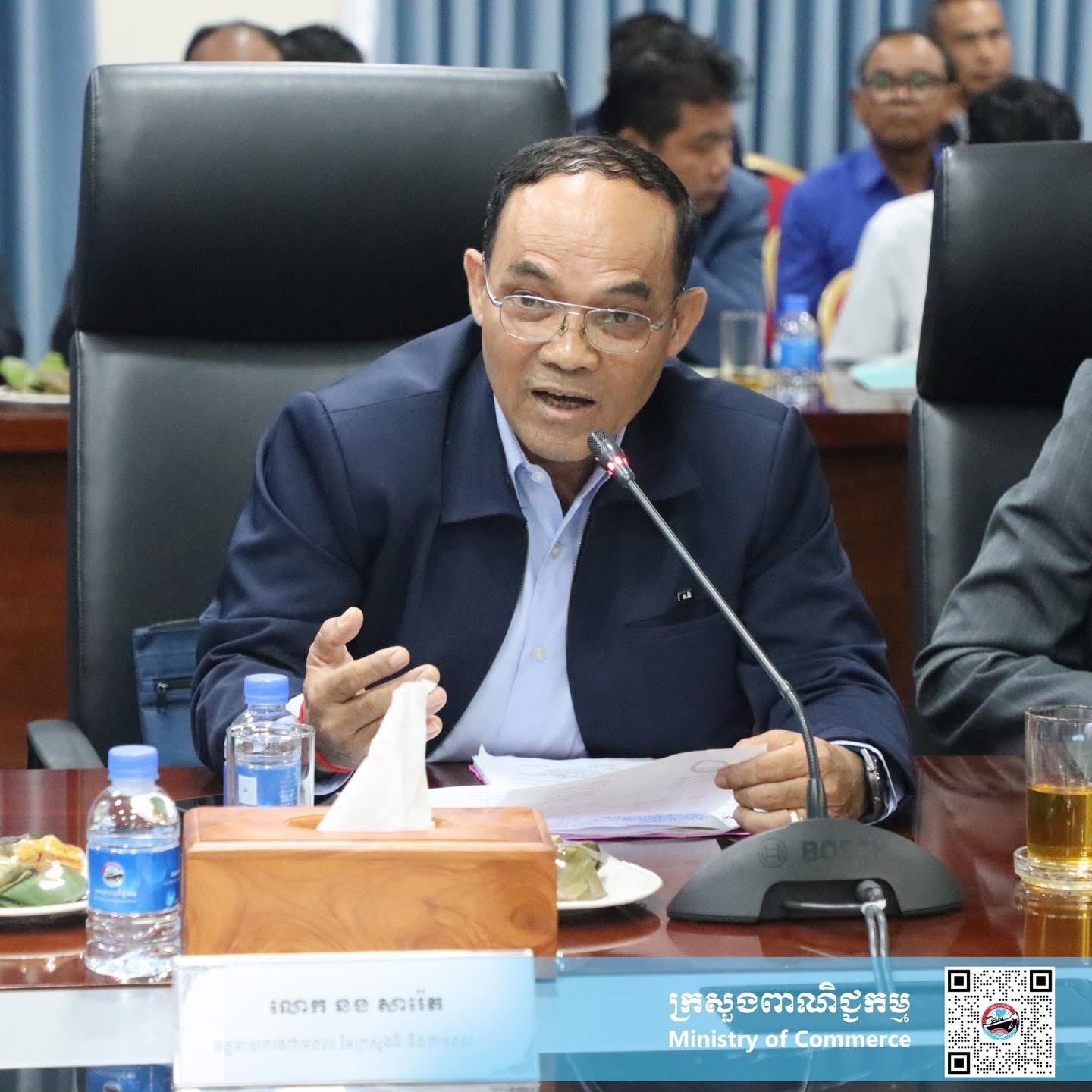 (ភ្នំពេញ)៖ នាព្រឹកថ្ងៃចន្ទ ទី១០ ខែវិច្ឆិកា ឆ្នាំ២០២៥ នៅទីស្តីការក្រសួងពាណិជ្ជកម្ម ឯកឧត្តម រាជ រ៉ា រដ្ឋលេខាធិការក្រសួងពាណិជ្ជកម្ម និងជាអនុប្រធានប្រចាំការនៃក្រុមការងារអន្តរស្ថាប័ន សម្រាប់ពិនិត្យ តាមដាន វាយតម្លៃ ការអនុវត្តគោលនយោបាយជាតិស្តីពីដំឡូងមី ២០២០-២០២៥ (ក.ត.គ.ដ.) និង ឯកឧត្តម តូច ប៊ុនហួរ រដ្ឋលេខាធិការក្រសួងកសិកម្ម រុក្ខាប្រមាញ់ និងនេសាទ បានចូលរួមជាគណៈអធិបតីក្នុងសិក្ខាសាលាពិគ្រោះយោបល់ ក្នុងគោលបំណងពិនិត្យ និងពិភាក្សាលើសេចក្តីព្រាងរបាយការណ៍វាយតម្លៃចុងអាណត្តិនៃការអនុវត្តគោលនយោបាយជាតិស្តីពីដំឡូងមី ២០២០-២០២៥ ដោយមានការចូលរួមពីសមាជិក សមាជិកាតំណាងពីអន្ដរក្រសួង ស្ថាប័ន ពាក់ព័ន្ធ តំណាងអគ្គនាយកដ្ឋាននិងនាយកដ្ឋានពាក់ព័ន្ធ មន្ទីរពាណិជ្ជកម្មតាមខេត្តគោលដៅ ប្រធានសហព័ន្ធដំឡូងមីកម្ពុជា តំណាងសមាគមសម្ព័ន្ធដំឡូងមីកម្ពុជា-ចិន និងភាគីពាក់ព័ន្ធ សរុបចំនួន ៧៥ នាក់។