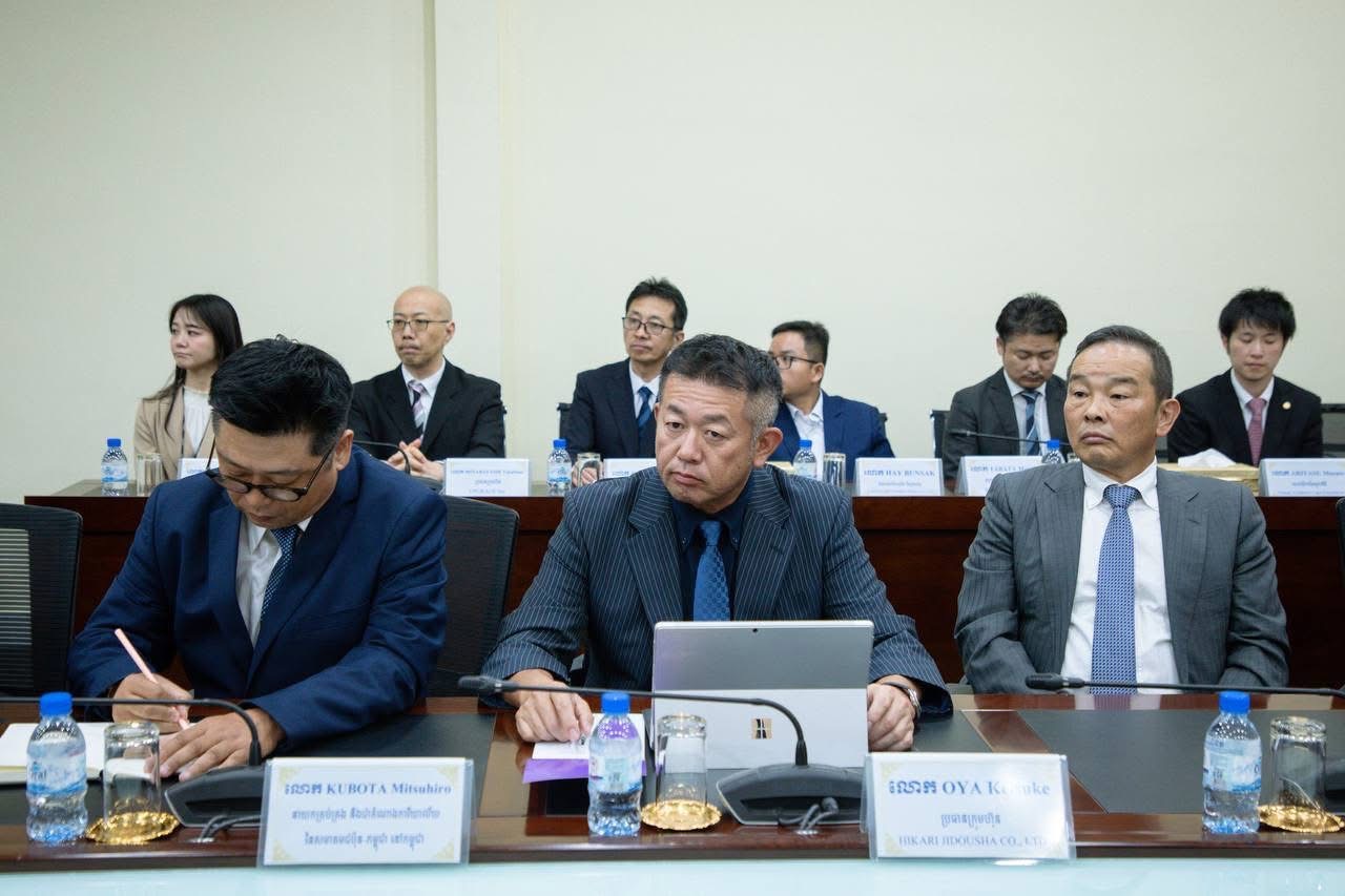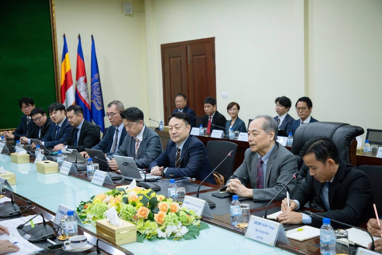 (ភ្នំពេញ)៖ ឯកឧត្តម ហេង សួរ រដ្ឋមន្រ្តីក្រសួងការងារ និងបណ្តុះបណ្តាលវិជ្ជាជីវៈ បានទទួលជួបជាមួយ ឯកឧត្តម TAKAHASHI Fumiaki ប្រធានសមាគមកម្ពុជា-ជប៉ុន (JCA) ដែលបានដឹកនាំប្រតិភូ ២៩រូប ដែលជាថ្នាក់ដឹកនាំសមាគម JCA និងតំណាងក្រុមហ៊ុនសមាជិក ចូលជួបសម្តែងការគួរសម និងពិភាក្សាការងារ នារសៀលថ្ងៃទី១០ ខែវិច្ឆិកា ឆ្នាំ២០២៥ នៅទីស្តីការក្រសួង។