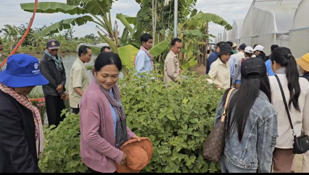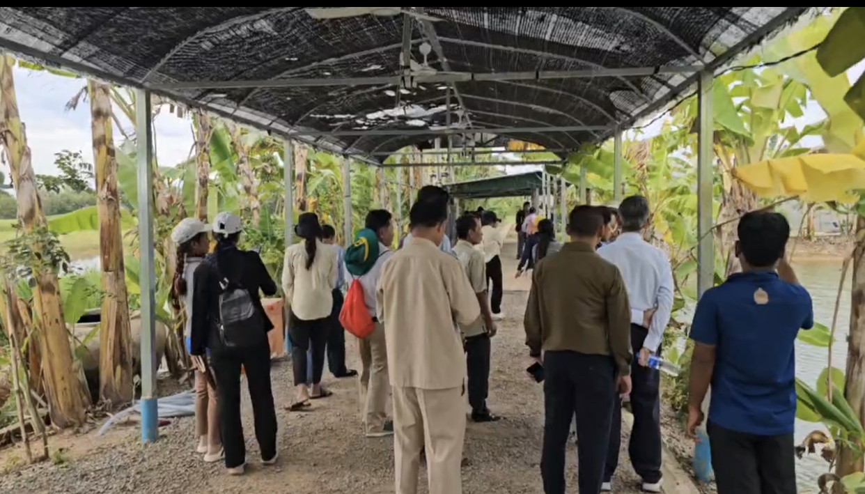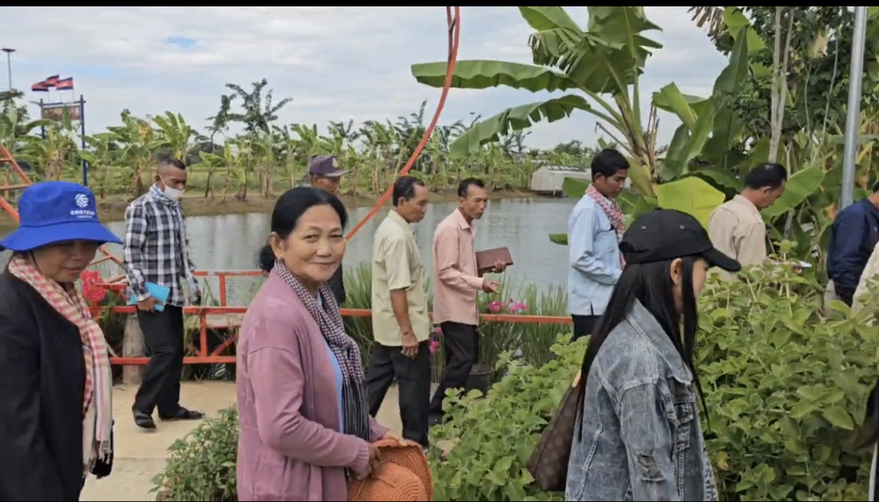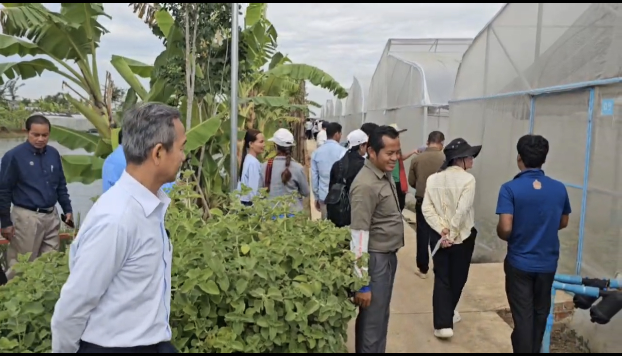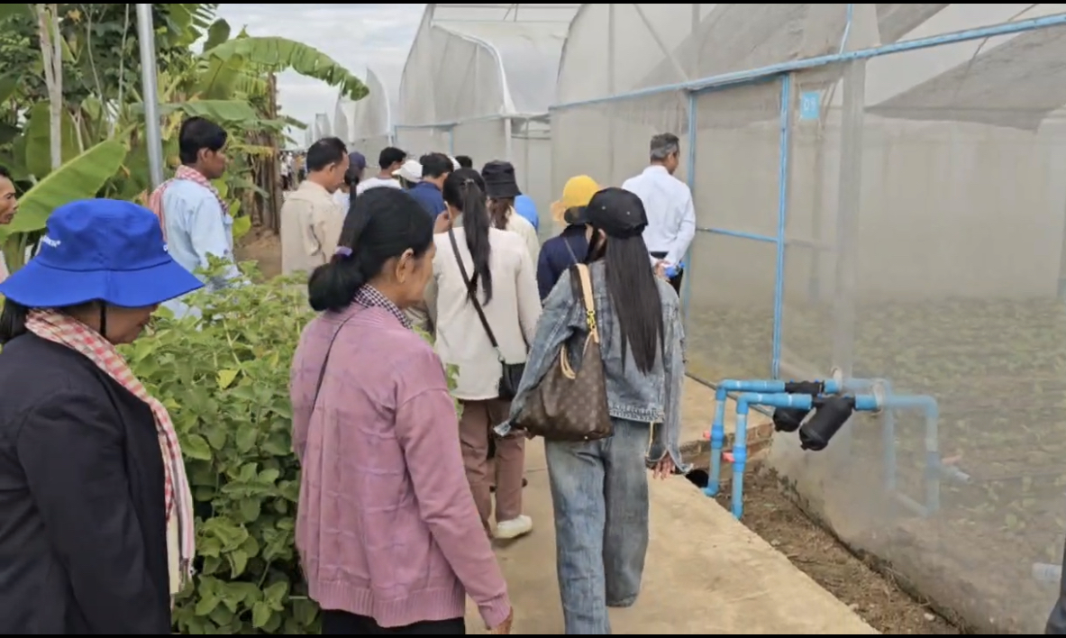 កំពង់ធំ៖ ឯកឧត្តម បណ្ឌិត សួង ណយ រដ្ឋលេខាធិការទីស្តីការគណៈរដ្ឋមន្រ្តី និងជាអនុប្រធានគណៈកម្មាធិការជាតិជំរុញចលនាភូមិមួយផលិតផលមួយ ដោយមានការសហការជាមួយធនាគារអភិវឌ្ឍន៍ជនបទនិងកសកម្ម សាខាខេត្តបាត់ដំបង និងការិយាល័យចល័តខេត្តកំពង់ធំ នៅថ្ងៃទី២១ខែវិច្ឆិកាឆ្នាំ២០២៥នេះបានដឹកនាំកសិករមកពីបណ្តាស្រុកទាំងអស់ចុះធ្វើទស្សនកិច្ចសិក្សានៅទីតាំងផ្ទាល់របស់សហគមន៍កសិកម្មតាសីសាមគ្គី។