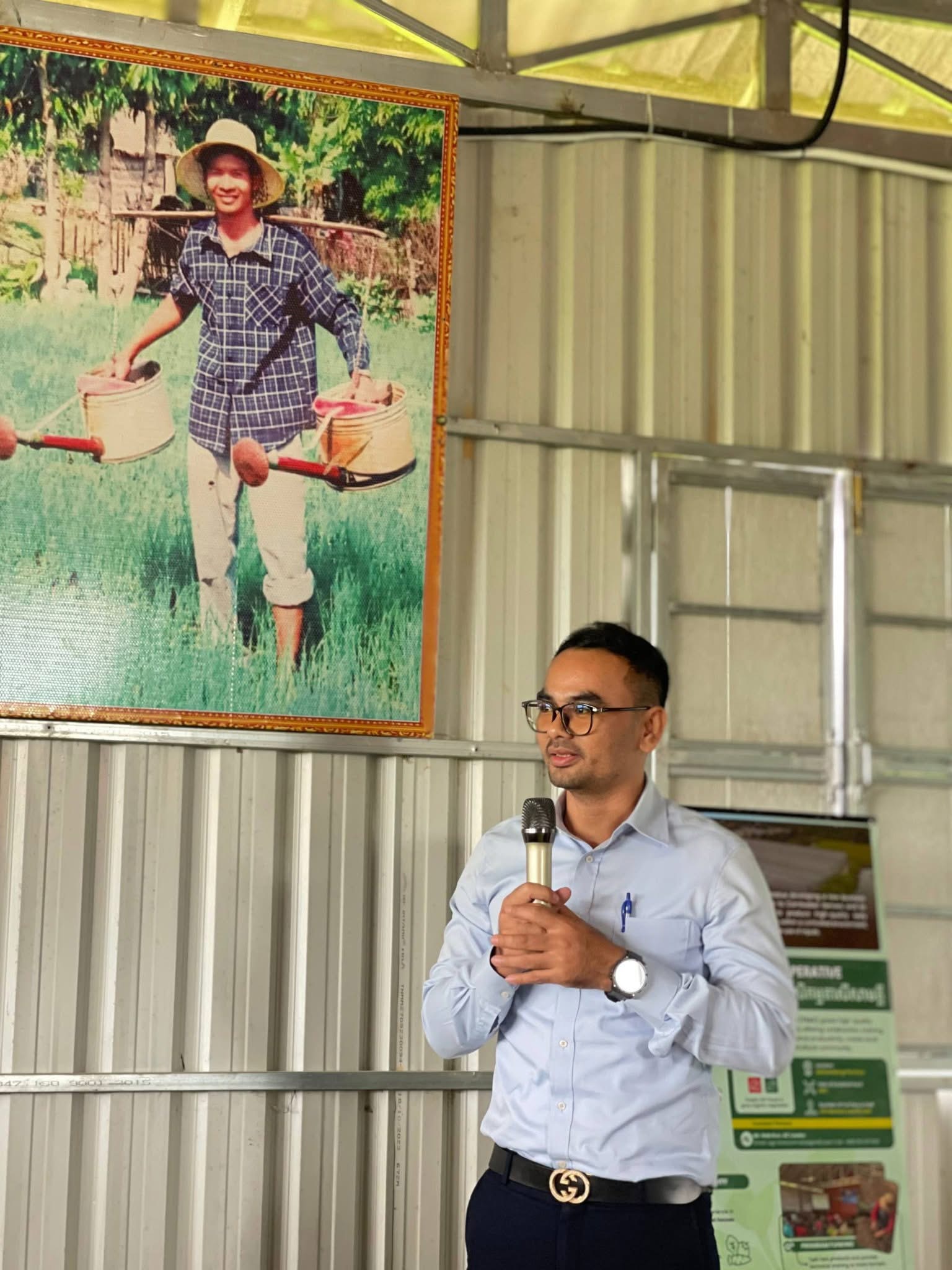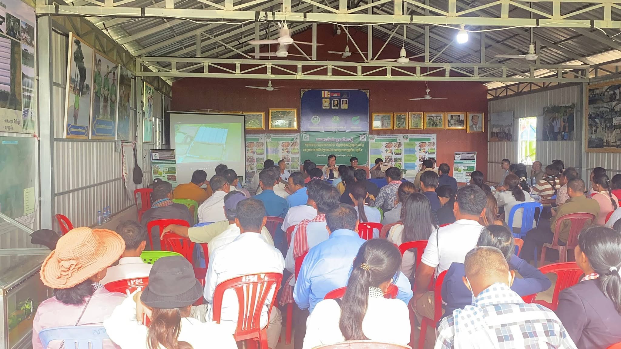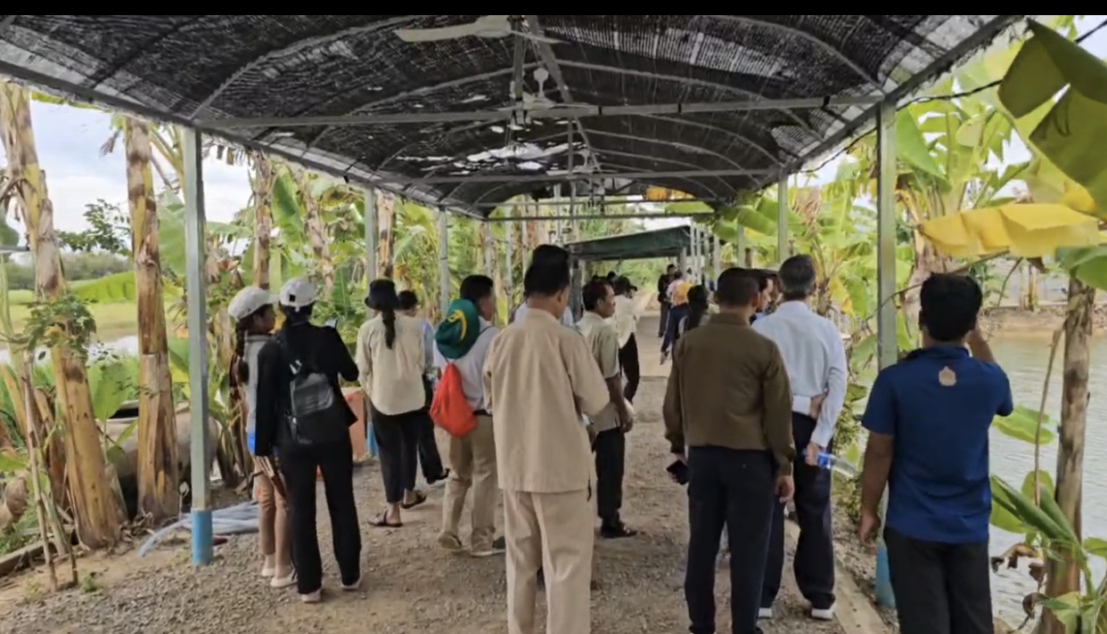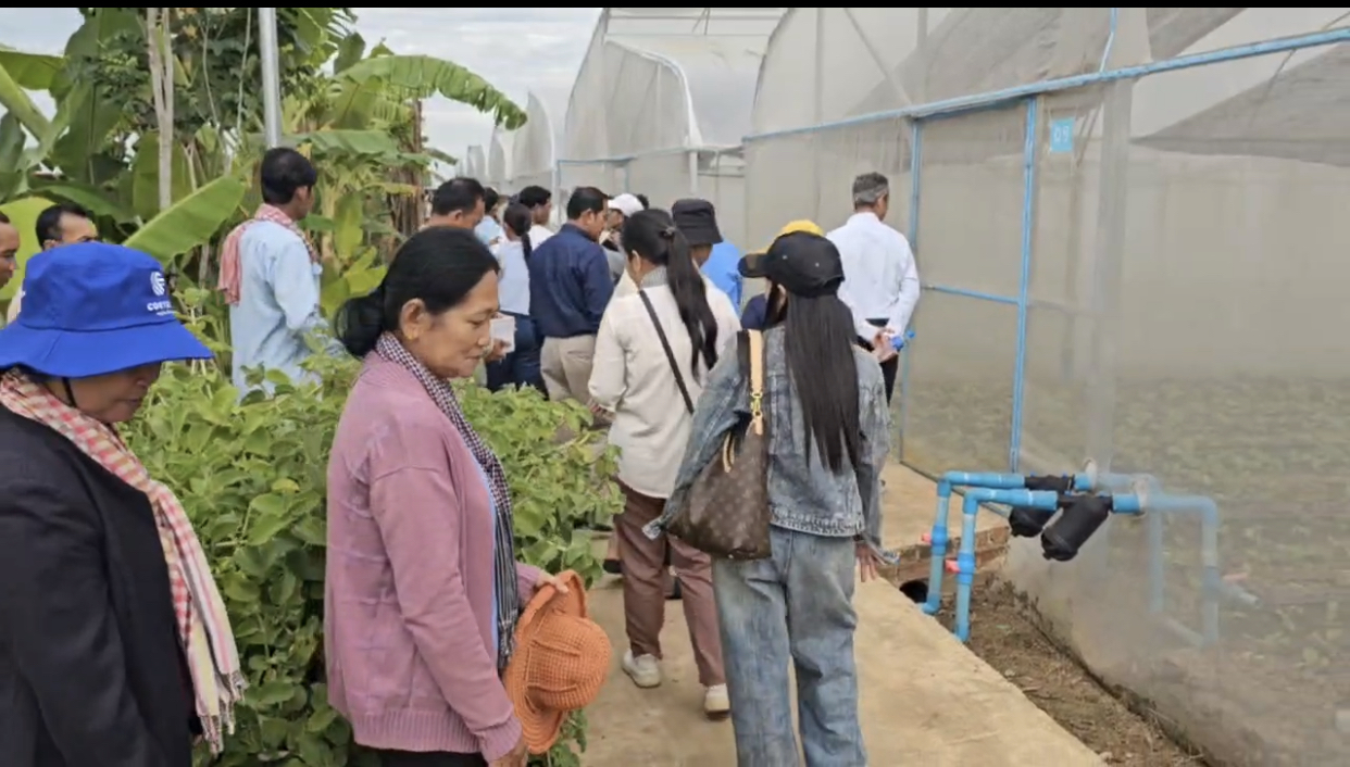 កំពង់ធំ៖ ឯកឧត្តម បណ្ឌិត សួង ណយ រដ្ឋលេខាធិការទីស្តីការគណៈរដ្ឋមន្រ្តី និងជាអនុប្រធានគណៈកម្មាធិការជាតិជំរុញចលនាភូមិមួយផលិតផលមួយ ដោយមានការសហការជាមួយធនាគារអភិវឌ្ឍន៍ជនបទនិងកសកម្ម សាខាខេត្តបាត់ដំបង និងការិយាល័យចល័តខេត្តកំពង់ធំ នៅថ្ងៃទី២១ខែវិច្ឆិកាឆ្នាំ២០២៥នេះបានដឹកនាំកសិករមកពីបណ្តាស្រុកទាំងអស់ចុះធ្វើទស្សនកិច្ចសិក្សានៅទីតាំងផ្ទាល់របស់សហគមន៍កសិកម្មតាសីសាមគ្គី។