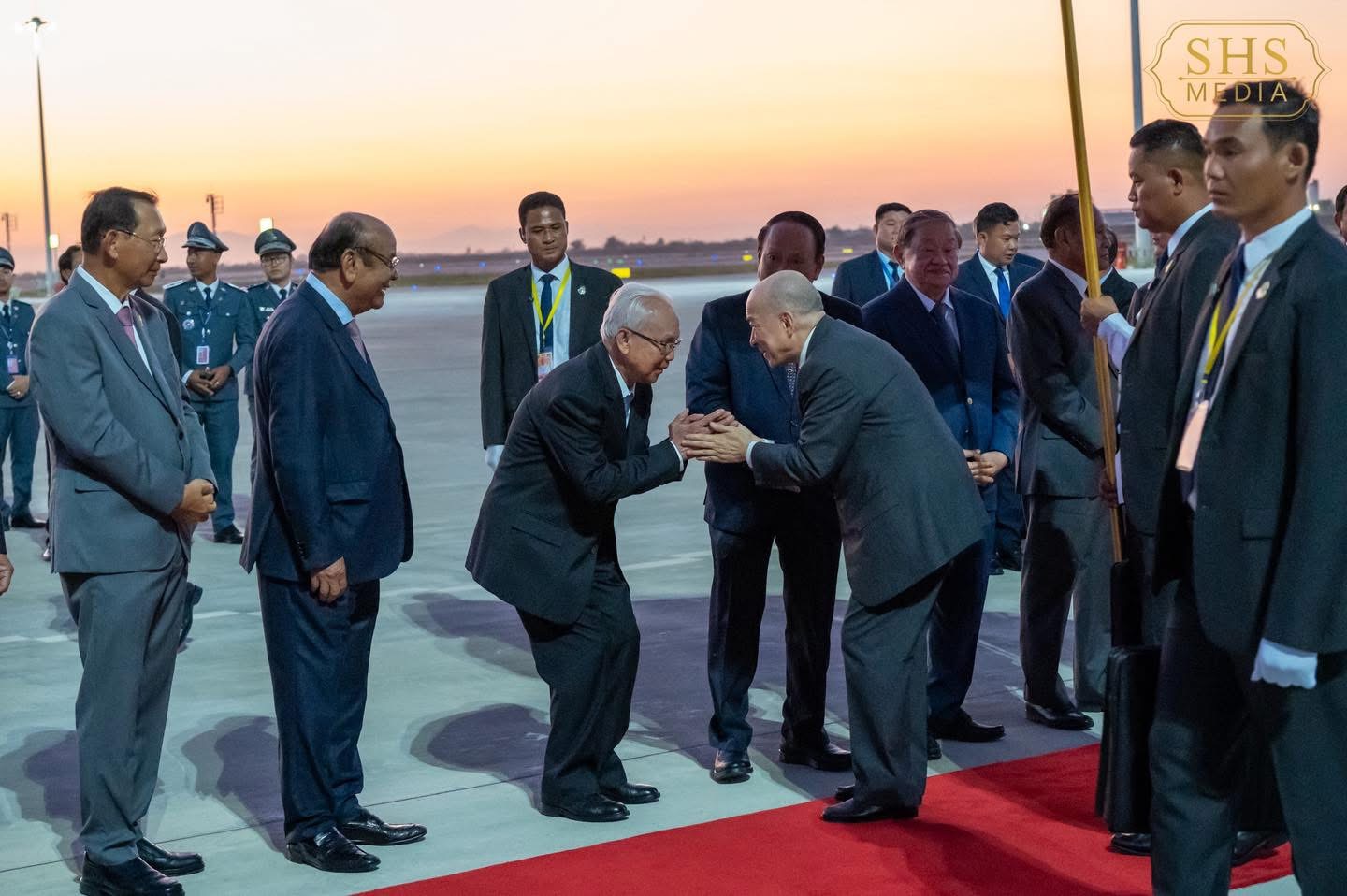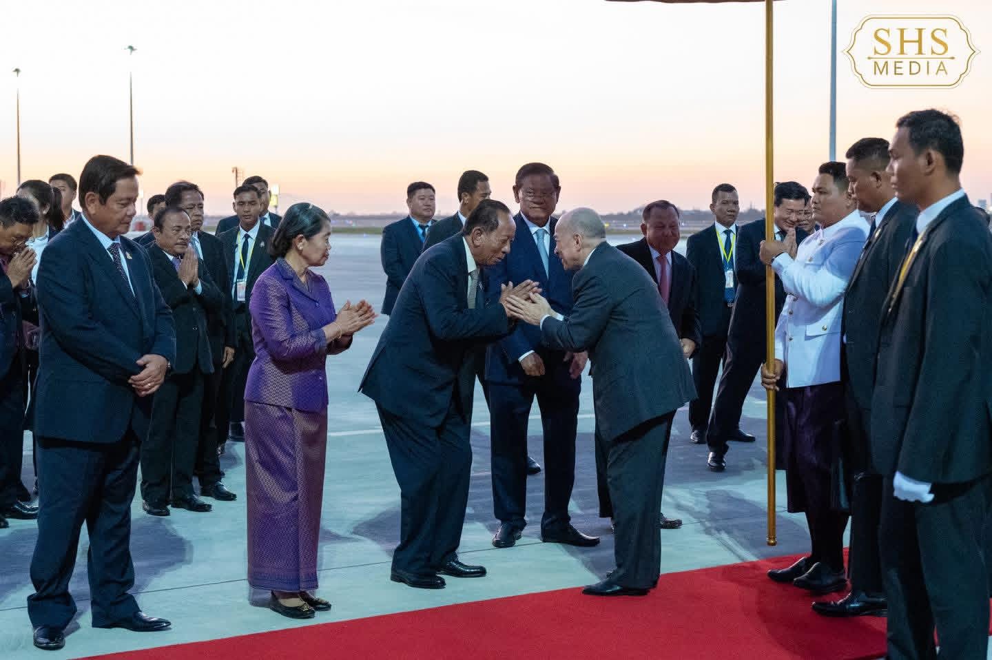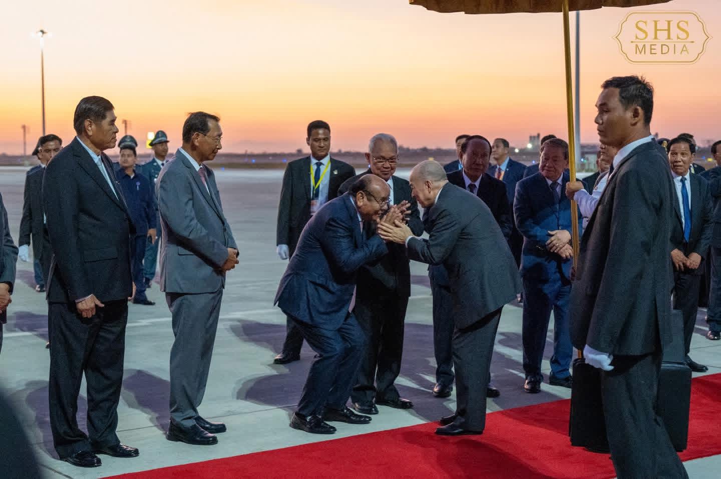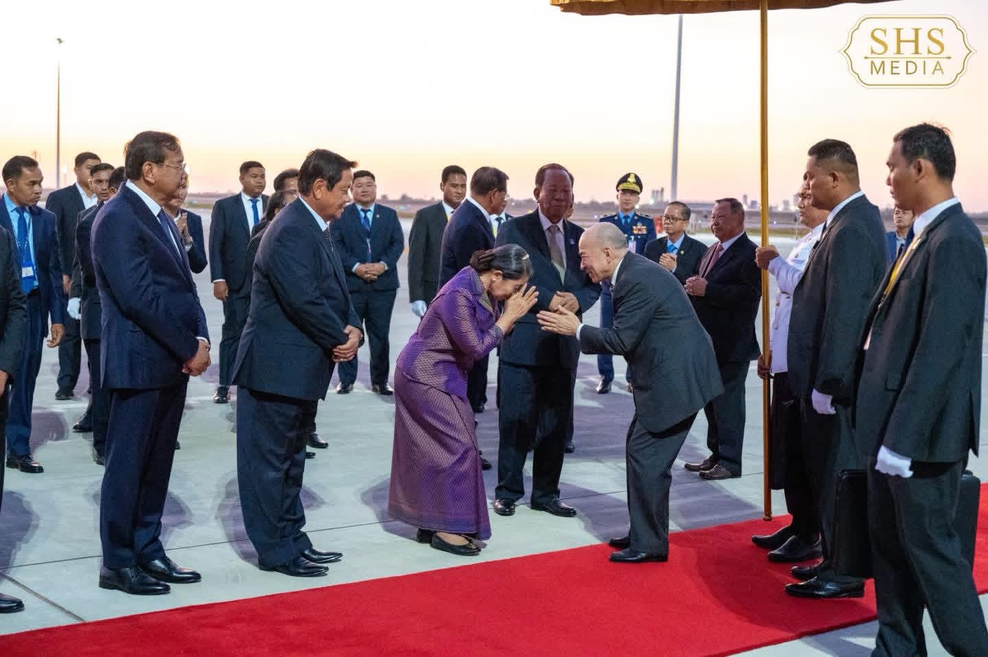 ភ្នំពេញ: សម្ដេចអគ្គមហាសេនាបតីតេជោ ហ៊ុន សែន ប្រធានក្រុមឧត្តមប្រឹក្សាផ្ទាល់ព្រះមហាក្សត្រ និងជាប្រធានព្រឹទ្ធសភា នៃព្រះរាជាណាចក្រកម្ពុជានៅនៅរសៀល ថ្ងៃអាទិត្យទី៧ ខែធ្នូ ឆ្នាំ២០២៥នេះបាន ញ្ជើញទទួលព្រះរាជដំណើរយាងនិវត្តន៍ របស់ព្រះករុណាព្រះបាទសម្ដេច ព្រះបរមនាថ នរោត្តម សីហមុនី ព្រះមហាក្សត្រ នៃព្រះរាជាណាចក្រកម្ពុជា បន្ទាប់ពីព្រះអង្គបានយាងចូលរួមកម្មវិធីបណ្ឌិត្យសភាវិទ្យាសាស្រ្ត នៅទីក្រុងប៉ារីស ប្រទេសបារាំង។
