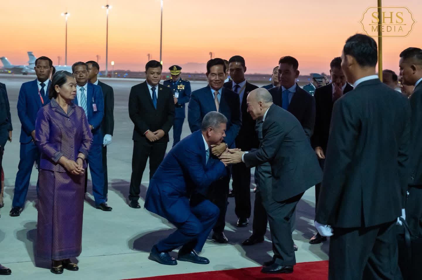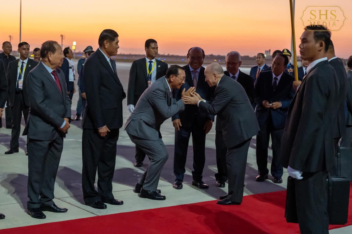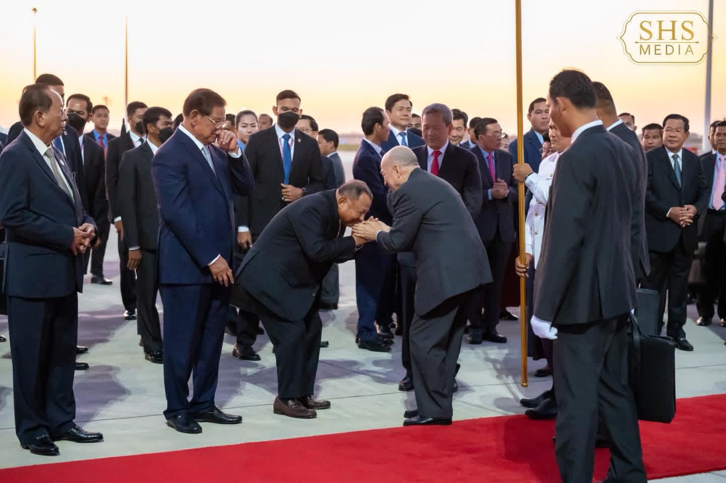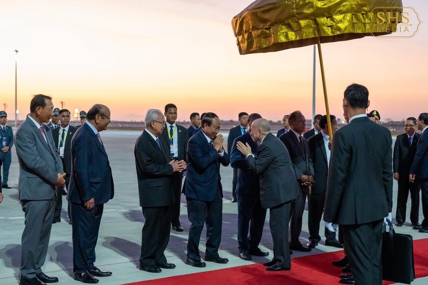 ភ្នំពេញ: សម្ដេចអគ្គមហាសេនាបតីតេជោ ហ៊ុន សែន ប្រធានក្រុមឧត្តមប្រឹក្សាផ្ទាល់ព្រះមហាក្សត្រ និងជាប្រធានព្រឹទ្ធសភា នៃព្រះរាជាណាចក្រកម្ពុជានៅនៅរសៀល ថ្ងៃអាទិត្យទី៧ ខែធ្នូ ឆ្នាំ២០២៥នេះបាន ញ្ជើញទទួលព្រះរាជដំណើរយាងនិវត្តន៍ របស់ព្រះករុណាព្រះបាទសម្ដេច ព្រះបរមនាថ នរោត្តម សីហមុនី ព្រះមហាក្សត្រ នៃព្រះរាជាណាចក្រកម្ពុជា បន្ទាប់ពីព្រះអង្គបានយាងចូលរួមកម្មវិធីបណ្ឌិត្យសភាវិទ្យាសាស្រ្ត នៅទីក្រុងប៉ារីស ប្រទេសបារាំង។