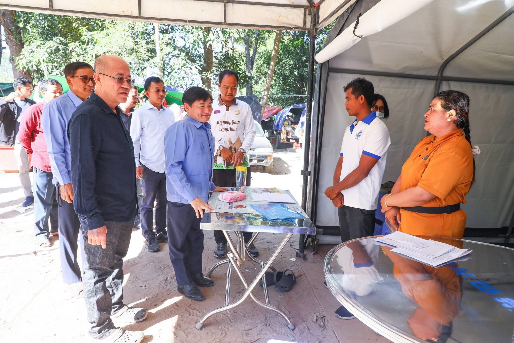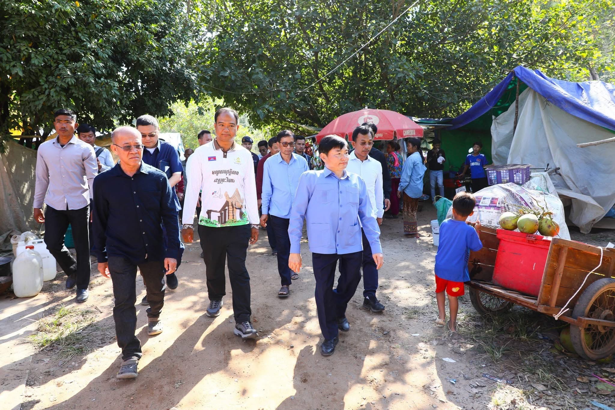 (ខេត្តព្រះវិហារ)៖ នាព្រឹកថ្ងៃទី២០ ខែធ្នូ ឆ្នាំ២០២៥នេះដែរ បន្ទាប់ពីបានប្រគល់អំណោយជូនរដ្ឋបាលខេត្តព្រះវិហារ ឯកឧត្តម ហេង សួរ រដ្ឋមន្ត្រីក្រសួងការងារ និងបណ្ដុះបណ្ដាលវិជ្ជាជីវៈ រួមជាមួយ ឯកឧត្តម គីម រិទ្ធី អភិបាលនៃគណៈអភិបាលខេត្តព្រះវិហារ និងសហការីបានចុះសួរសុខទុក្ខប្រជាពលរដ្ឋភៀសសឹកមកពីស្រុកជាំក្សាន្ត បាននាំយកអំណោយរបស់ថ្នាក់ដឹកនាំក្រសួង មន្រ្តីរាជការ សប្បុរសជន ម្ចាស់រោងចក្រ សហគ្រាស ក្រុមហ៊ុន ថ្នាក់ដឹកនាំសហជីព បងប្អូនកម្មករនិយោជិត ដែលមានជាអំណោយជាថវិកា និងសម្ភារគ្រឿងឧបភោគបរិភោគ សម្រាប់ផ្តល់ជូនបងប្អូនប្រជាពលរដ្ឋភៀសសឹកចំនួន ២ពាន់គ្រួសារ ស្មើនឹង១២ ០០០នាក់ នៅស្រុកត្បែងមានជ័យ ខេត្តព្រះវិហារ។