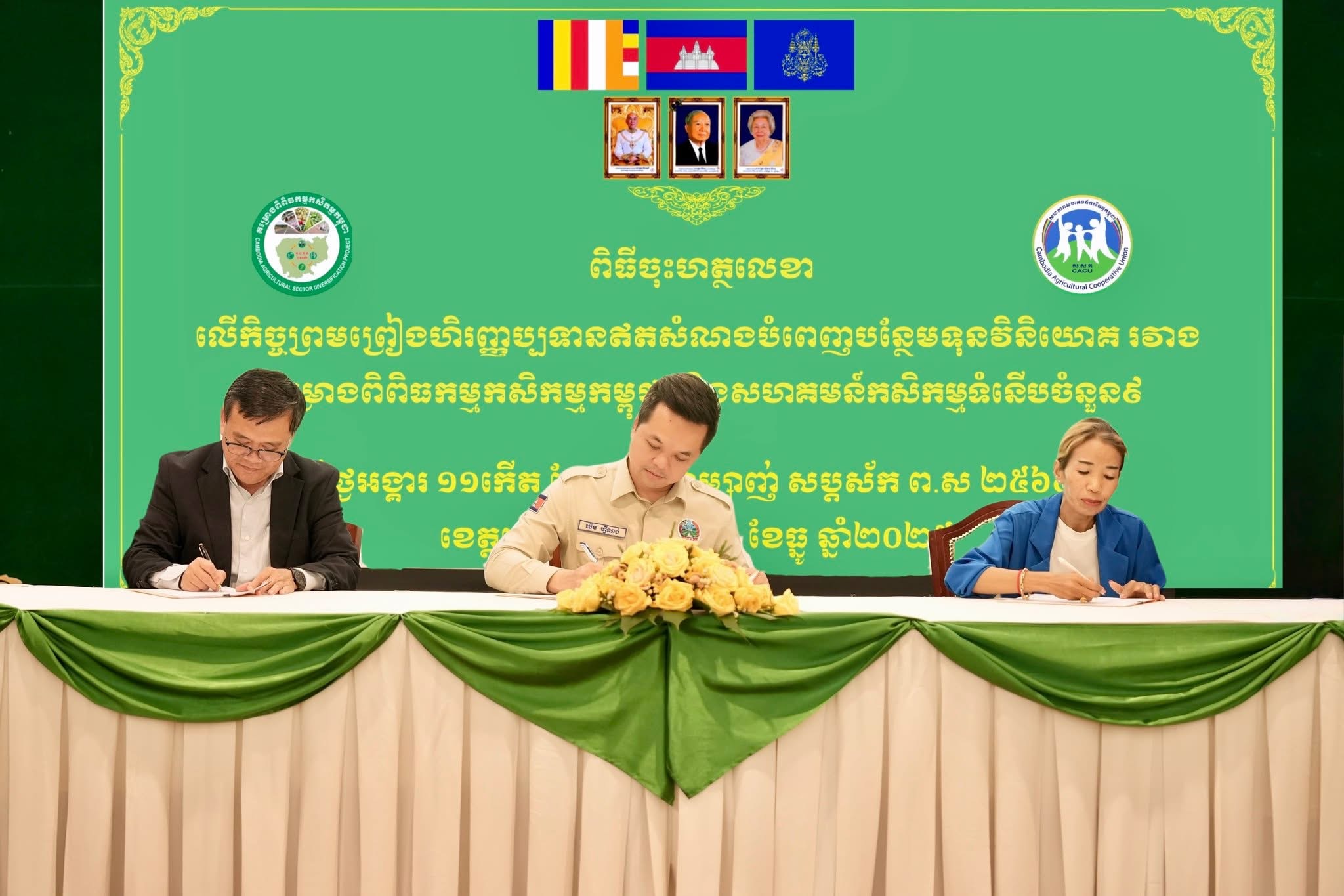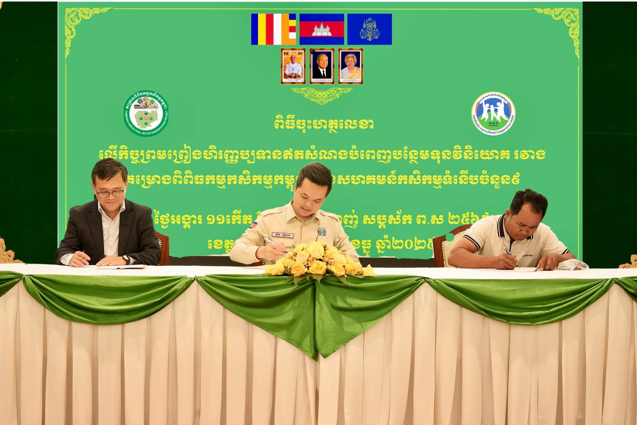 ភ្នំពេញ៖ ឯកឧត្តម ឃឹម ហ្វីណង់ អនុរដ្ឋលេខាធិការក្រសួងកសិកម្ម រុក្ខាប្រមាញ់ និងនេសាទ និងជានាយកគម្រោងពិពិធកម្មកសិកម្មកម្ពុជា(CASDP)នៃក្រសួងកសិកម្ម និងឯកឧត្តម ចាន់ សីហា អគ្គនាយករងនៃធនាគារអភិវឌ្ឍន៍ជនបទនិងកសិកម្ម បានអញ្ជើញចុះហត្ថលេខាផ្តល់កម្ចីឥណទានការប្រាក់ទាបជាង១២លានដុល្លារនិងជំនួយឥតសំណងជិត១លានដុល្លារ ។