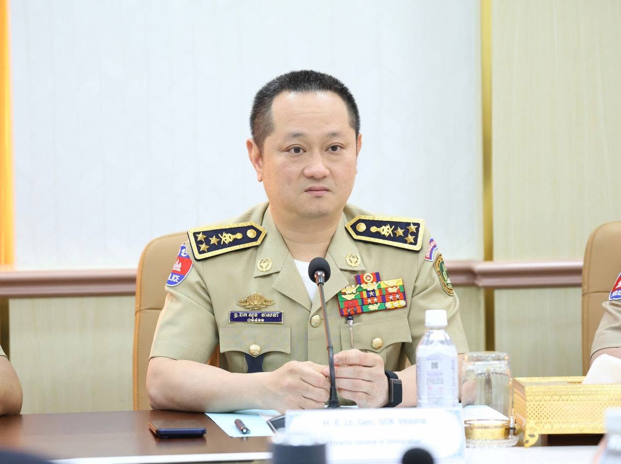 ភ្នំពេញ: នាព្រឹកថ្ងៃទី១៣ ខែមករា ឆ្នាំ២០២៦ ឯកឧត្តម ឧត្តមសេនីយ៍ឯក សុខ វាសនា អគ្គនាយកអន្តោប្រវេសន៍ បានទទួលជួបពិភាក្សាការងារជាមួយគណៈប្រតិភូ ដឹកនាំដោយ ឯកឧត្តម LIU Zhongyi ឧបការីរដ្ឋមន្រ្តីក្រសួងសន្តិសុខសាធារណៈនៃសាធារណរដ្ឋប្រជាមានិតចិន។