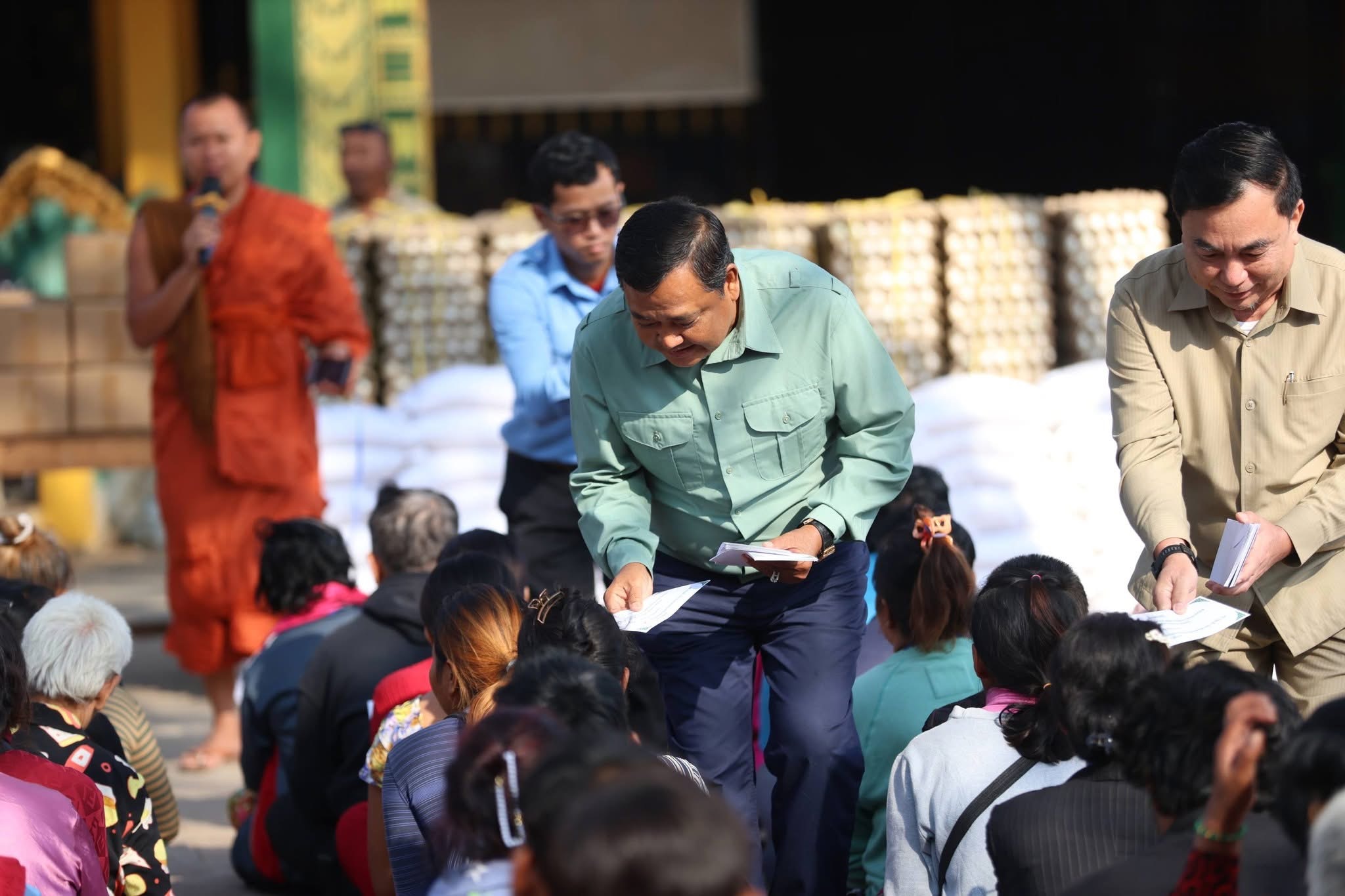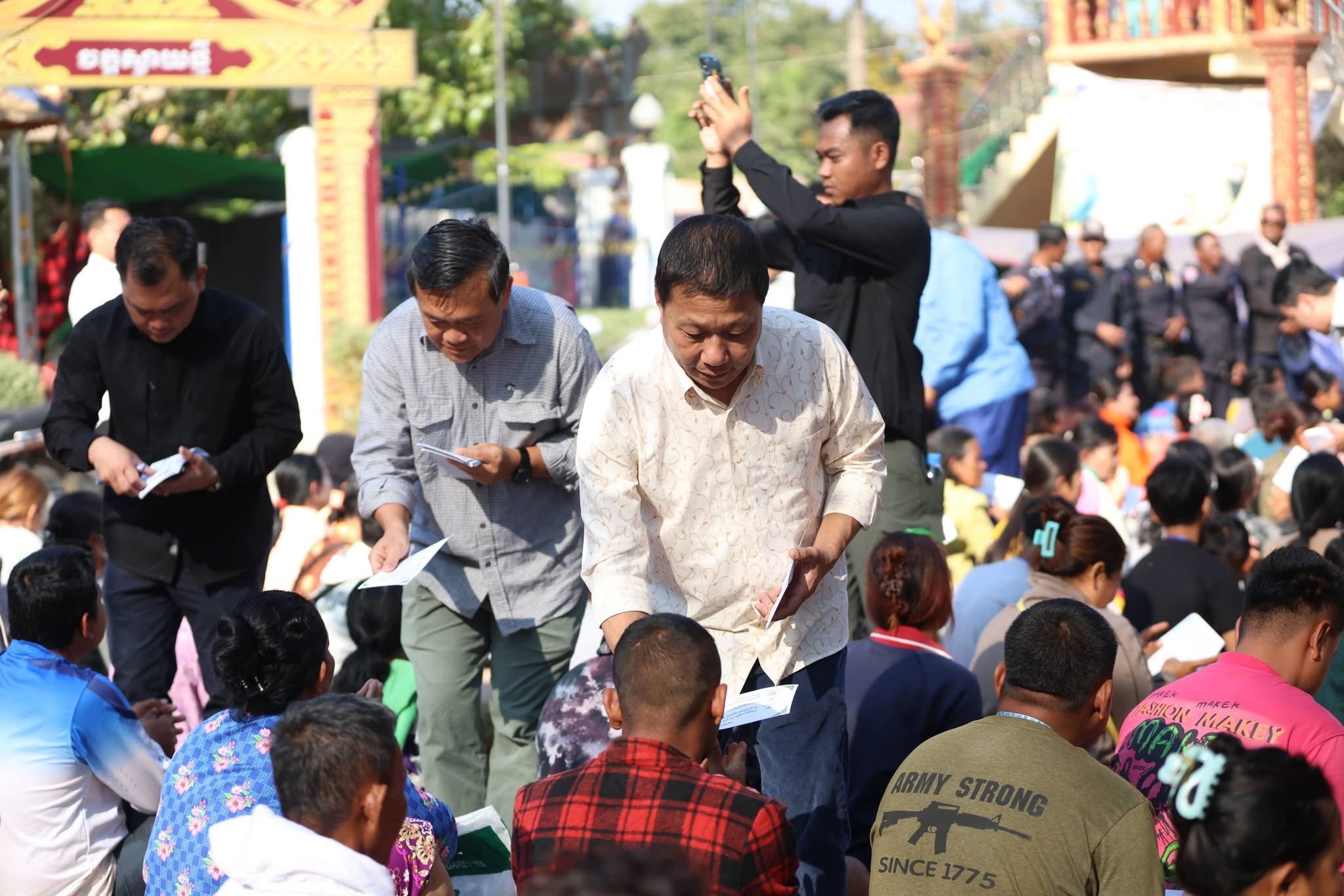 នៅក្នុងពិធីសំណេះសំណាលប្រកបដោយមនោសញ្ចេតនា និងក្តីអាណិតអាសូរនេះ ឯកឧត្តមបណ្ឌិត និងក្រុមការងារ បាននាំយកនូវអំណោយជាគ្រឿងឧបភោគបរិភោគ និងសម្ភារៈចាំបាច់ ជូនដល់គ្រួសារភៀសសឹកសរុបចំនួន ៣,០០០ គ្រួសារ ដោយក្នុងមួយគ្រួសារទទួលបាន៖