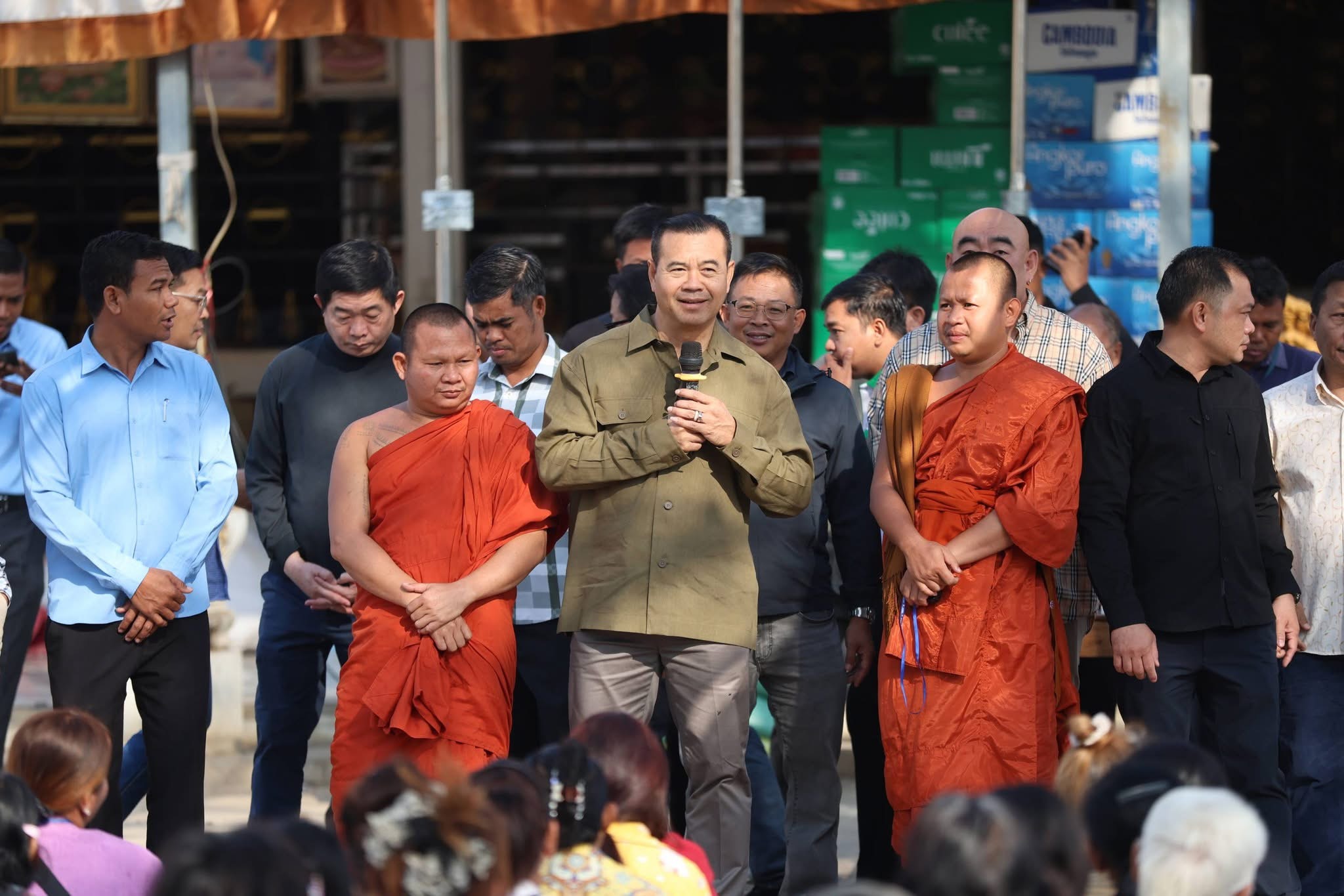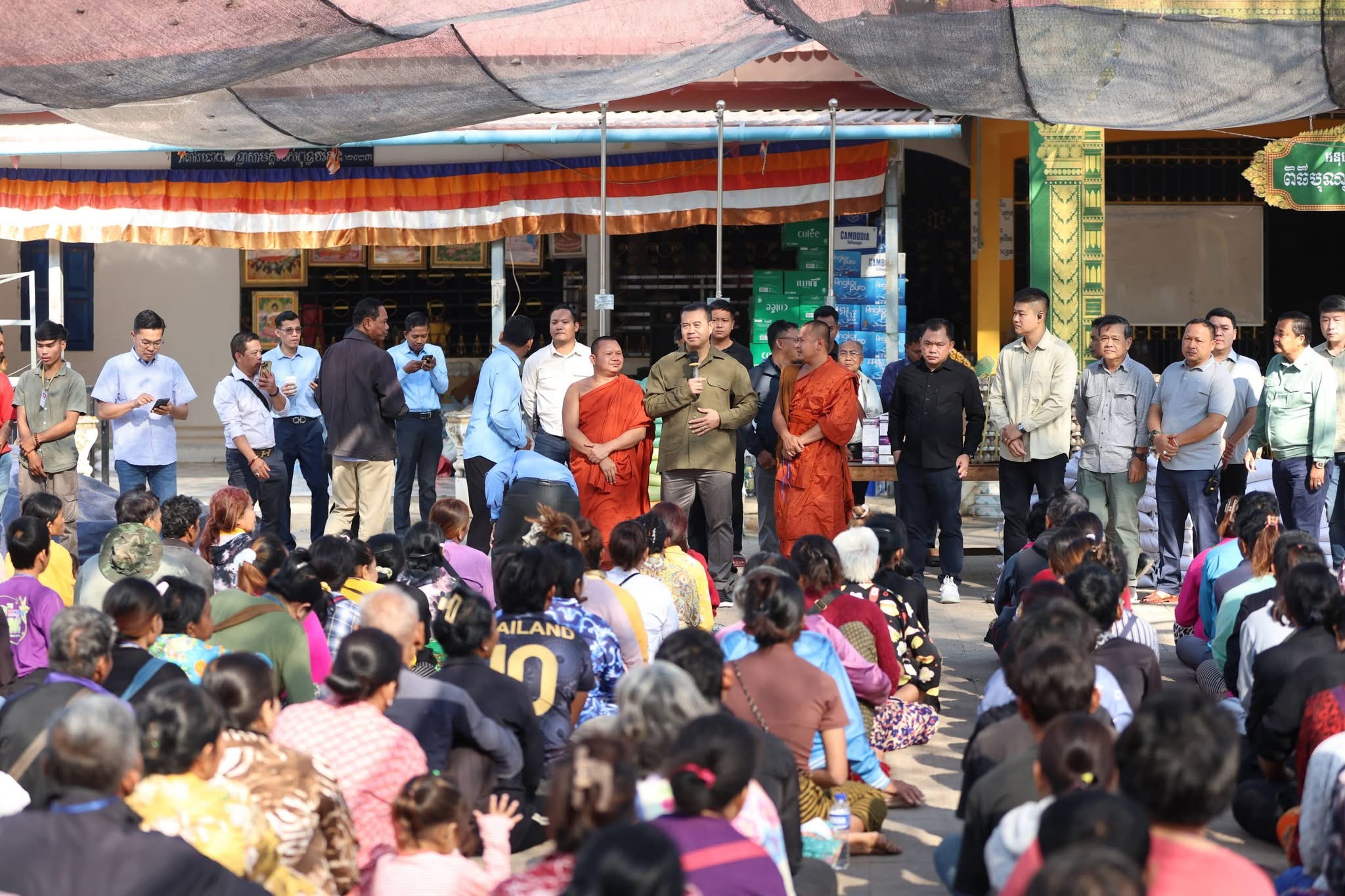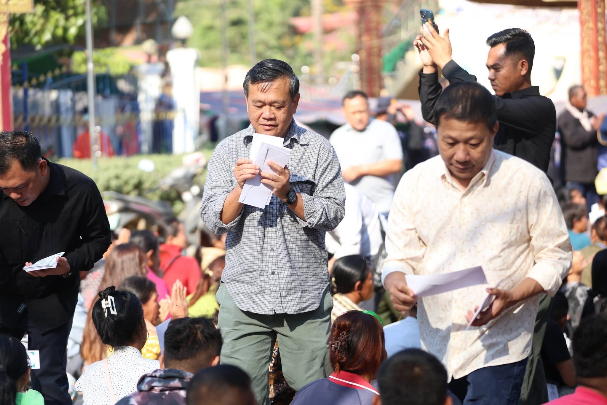 (ខេត្តបន្ទាយមានជ័យ-ឧត្តរមានជ័យ)៖ នាព្រឹកថ្ងៃទី១៤ ខែមករា ឆ្នាំ២០២៦ នេះ ក្នុងស្មារតី «ខ្មែរជួយខ្មែរ» និងដើម្បីចូលរួមចំណែកជាមួយរាជរដ្ឋាភិបាលកម្ពុជា ក្នុងគ្រាដ៏លំបាក ឯកឧត្តមបណ្ឌិត កៅ ថាច ប្រតិភូរាជរដ្ឋាភិបាល និងលោកជំទាវ ព្រមទាំងសហការី និងសប្បុរសជនទាំងក្នុង និងក្រៅប្រទេស បានអញ្ជើញចុះសួរសុខទុក្ខដោយផ្ទាល់ និងនាំយកអំណោយមនុស្សធម៌ចែកជូនបងប្អូនប្រជាពលរដ្ឋ ដែលកំពុងស្នាក់អាស្រ័យបណ្តោះអាសន្ននៅមណ្ឌលសុវត្ថិភាពចំនួន ៣ទីតាំងផ្សេងគ្នា។
