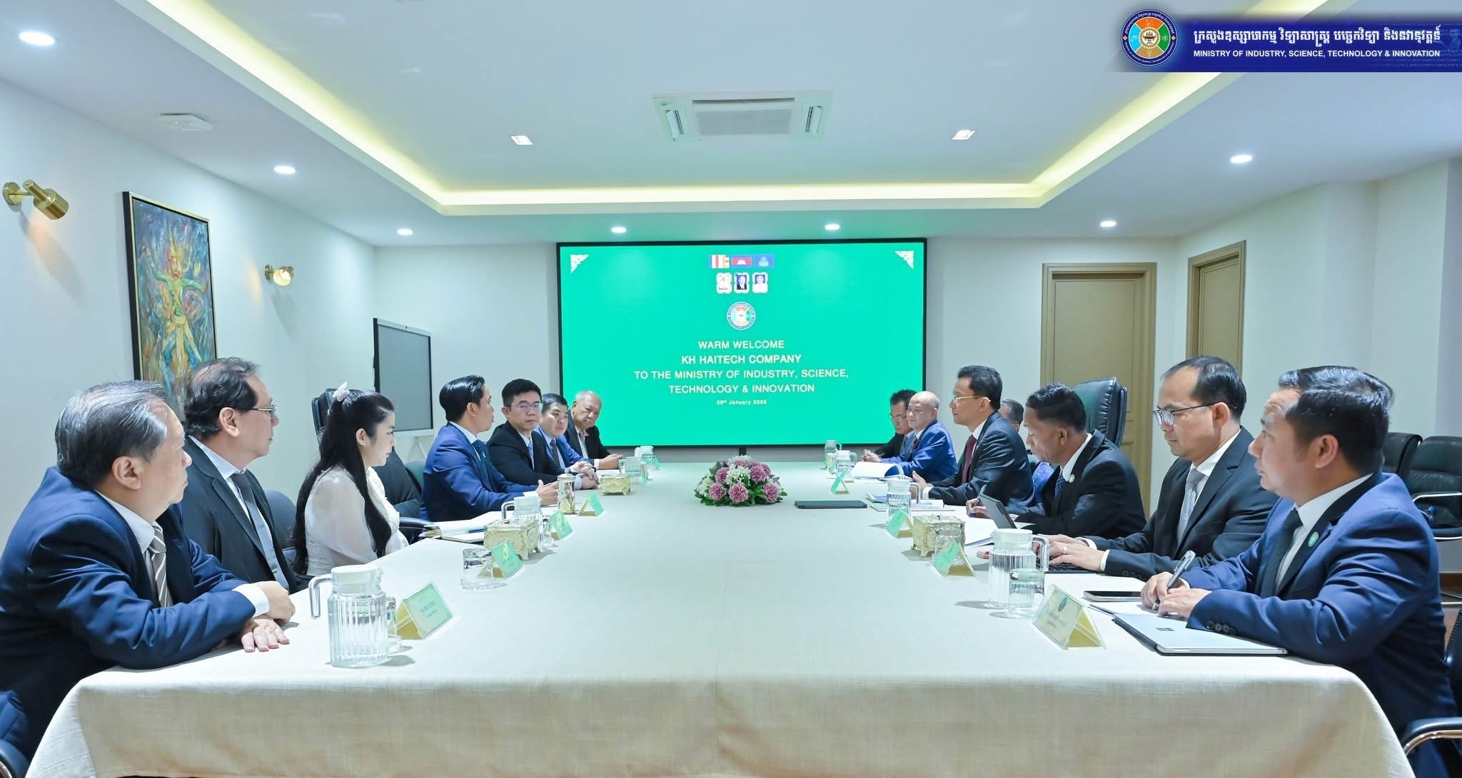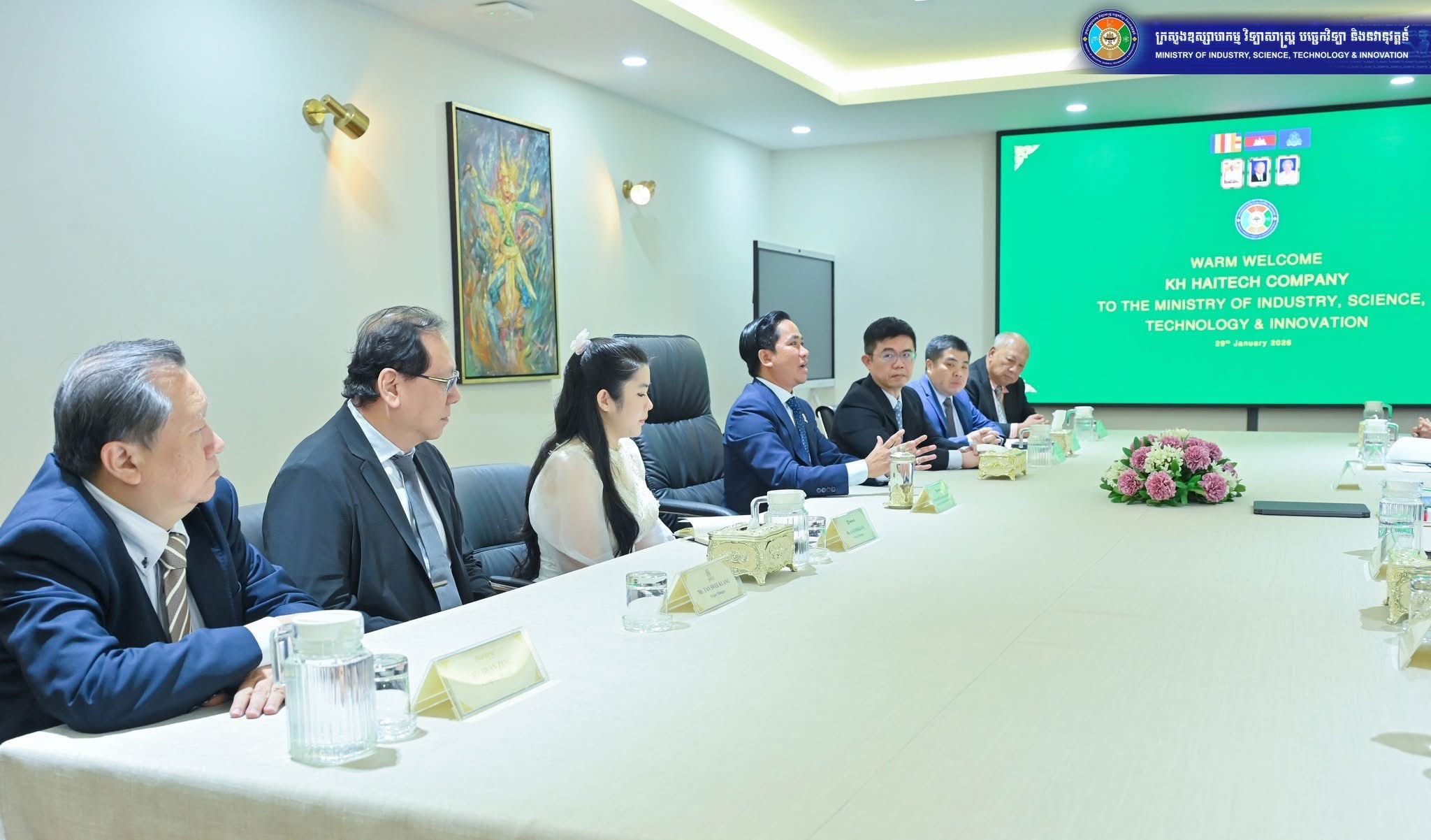 ភ្នំពេញ:អ្នកឧកញ៉ា សំ សុខនឿន សមាជិកក្រុមប្រឹក្សាភិបាល នៃសមាគមឧកញ៉ាកម្ពុជា និងជាអគ្គនាយកក្រុមហ៊ុន KH HAITECH នាថ្ងៃទី២៩ ខែមករា ឆ្នាំ២០២៦បានចូលជួបសម្តែងការគួរសមជាមួយឯកឧត្តម ហែម វណ្ណឌី រដ្ឋមន្ត្រីក្រសួងឧស្សាហកម្ម វិទ្យាសាស្ត្រ បច្ចេកវិទ្យា និងនវានុវត្តន៍ ដើម្បីជម្រាបជូននូវបំណងអភិវឌ្ឍរោងចក្រដែលមានស្វ័យប្រវត្តិកម្មខ្ពស់ និងមានសមត្ថភាពផ្លាស់ប្ដូរតាមតម្រូវការ ព្រមទាំងផ្គត់ផ្គង់ថេប្លេត (tablet) តម្លៃសមរម្យសម្រាប់ទីផ្សារកម្ពុជា ពិសេសសម្រាប់សិស្សនិស្សិត និងអ្នកសេដ្ឋកិច្ចក្រៅប្រព័ន្ធអាចពង្រីកលទ្ធភាពប្រើប្រាស់ឧបករណ៍ឌីជីថល និងសិក្សាតាមប្រព័ន្ធអនឡាញកាន់តែទូលំទូលាយ។