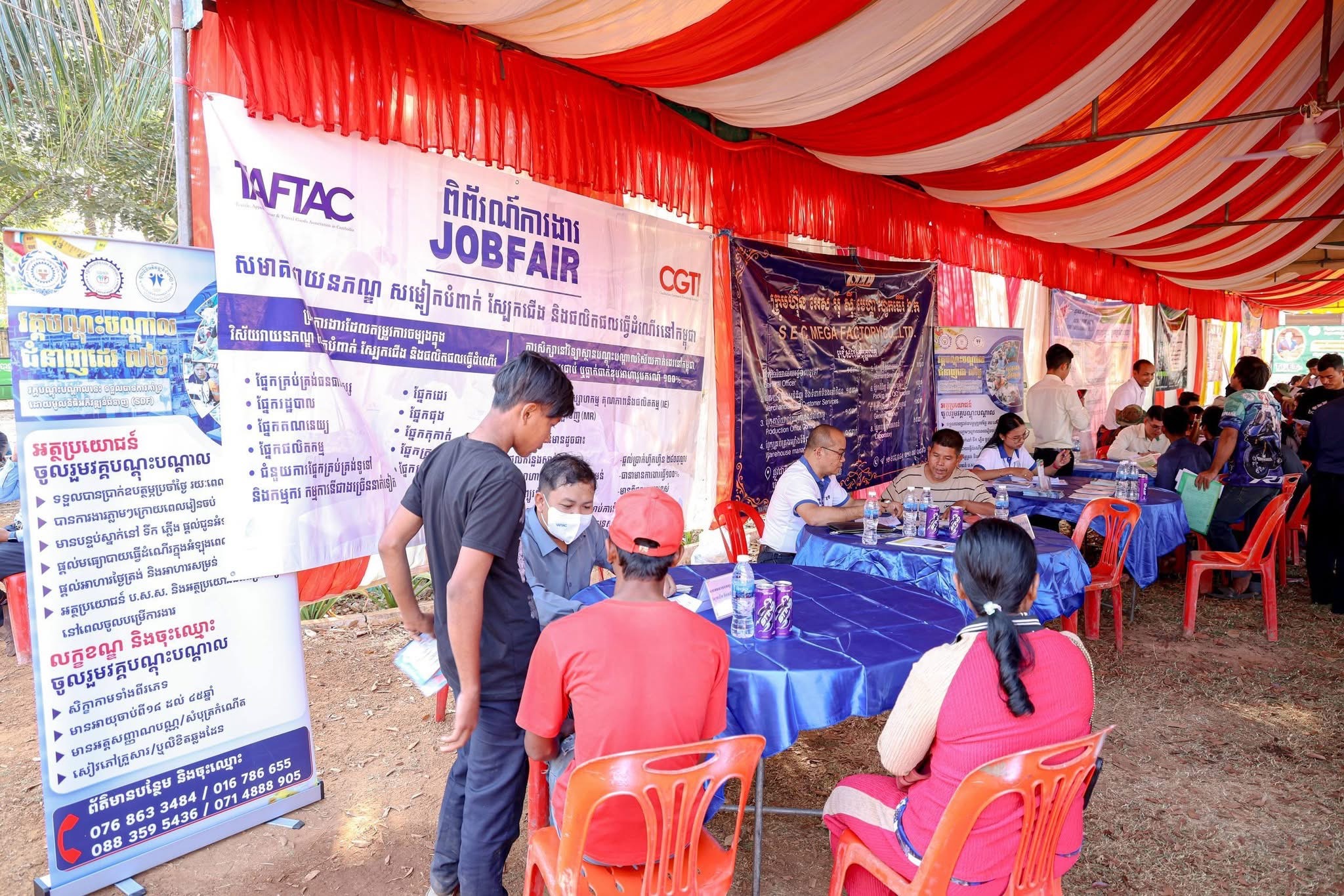 (សៀមរាប)៖ ក្រោមប្រធានបទ «ខ្មែរជួយរកការងារឱ្យខ្មែរ ខ្មែរផ្តល់ការងារឱ្យខ្មែរ» វេទិកាការងារ សន្តិសុខសង្គម និងបណ្ដុះបណ្ដាលវិជ្ជាជីវៈ ត្រូវបានរៀបចំឡើងនាព្រឹកថ្ងៃសៅរ៍ ទី៣១ ខែមករា ឆ្នាំ២០២៦ នៅបរិវេណសាលាស្រុកស្រីស្នំ ខេត្តសៀមរាប ដើម្បីផ្ដល់ឱកាសការងារដល់បងប្អូនអតីតពលករមកពីប្រទេសថៃ និងយុវជនក្នុងមូលដ្ឋាន ឱ្យទទួលបានការងារធ្វើភ្លាមៗ និងចុះឈ្មោះរៀនជំនាញបច្ចេកទេស។