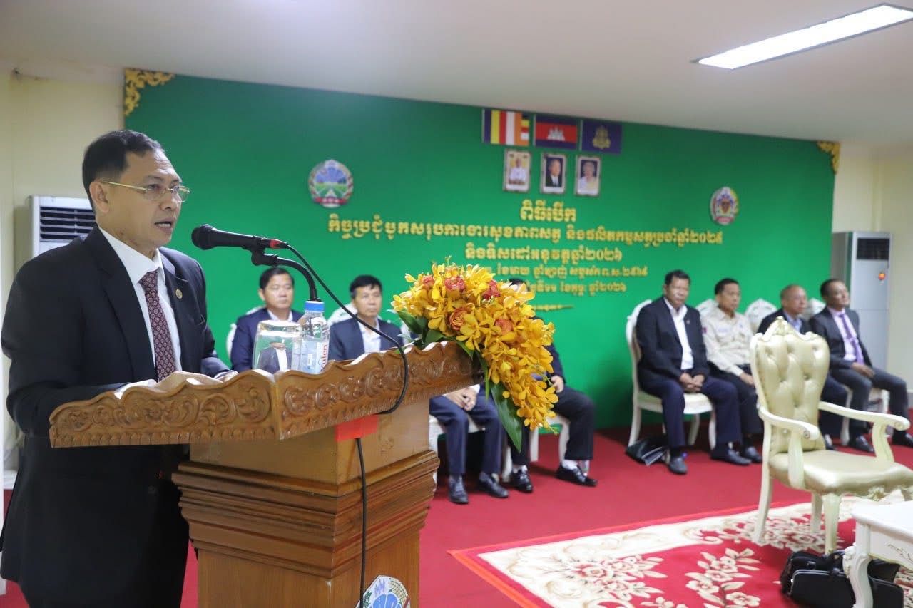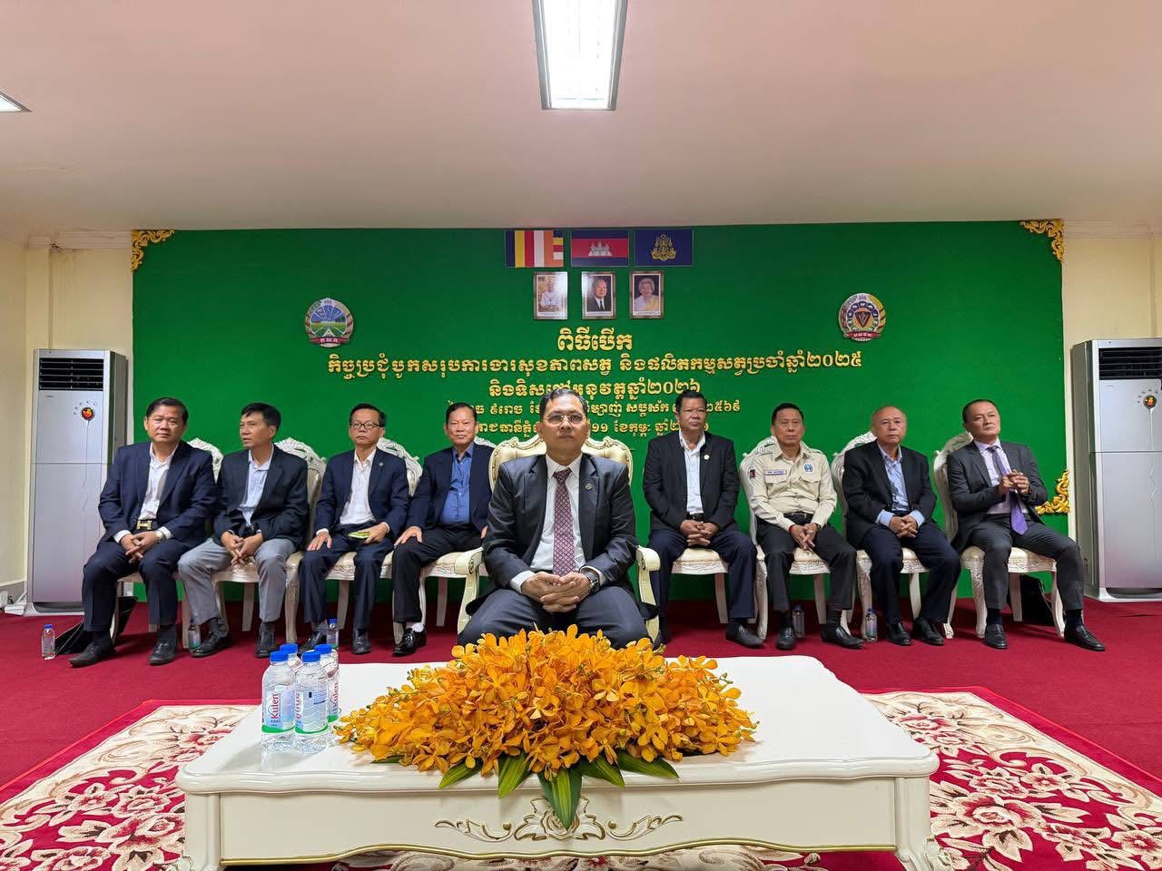 ភ្នំពេញ:ឯកឧត្តម ម៉ាន សុគ្រី រដ្ឋលេខាធិការការក្រសួងកសិកម្ម រុក្ខាប្រមាញ់ និងនេសាទ តំណាងដ៏ខ្ពង់ខ្ពស់ ឯកឧត្តម ឌិត ទីណា រដ្ឋមន្ត្រីក្រសួងកសិកម្ម រុក្ខាប្រមាញ់ និងនេសាទនាព្រឹកថ្ងៃទី១១ ខែកុម្ភៈ ឆ្នាំ២០២៦នេះបាន អញ្ជើញជាអធិបតីភាពក្នុងពិធីបើកកិច្ចប្រជុំបូកសរុបការងារសុខភាពសត្វ និងផលិតកម្មសត្វប្រចាំឆ្នាំ២០២៥ និងលើកទិសដៅការងារឆ្នាំ២០២៦ នៅអគ្គនាយកដ្ឋានសុខភាពសត្វ និងផលិតម្មសត្វ ដោយមានការអញ្ជើញចូលរួមពីសំណាក់ ឯកឧត្តម លោកជំទាវអនុរដ្ឋលេខាធិការ ឯកឧត្តម លោក លោកស្រីថ្នាក់ដឹកនាំក្រសួងកសិកម្ម រុក្ខាប្រមាញ់ និងនេសាទ និងអង្គភាពក្រោមឱវាទក្រសួងកសិកម្ម រុក្ខាប្រមាញ់ និងនេសាទ លោក លោកស្រីអគ្គនាយករងនៃអគ្គនាយកដ្ឋានសុខភាពសត្វ និងផលិតកម្មសត្វ លោកប្រធាននាយកដ្ឋាន លោកនាយកវិទ្យាស្ថានជាតិស្រាវជ្រាវសុខភាពសត្វ និងផលិតកម្មសត្វ លោក លោកស្រីអនុប្រធាននាយកដ្ឋាន លោក លោកស្រីនាយករងវិទ្យាស្ថានជាតិស្រាវជ្រាវសុខភាពសត្វ និងផលិតកម្មសត្វ លោកប្រធានមន្ទីរកសិកម្ម រុក្ខាប្រមាញ់ និងនេសាទរាជធានី ខេត្ត លោក លោកស្រីប្រធានការិយាល័យផលិតកម្ម និងបសុព្យាបាលរាជធានី ខេត្ត និងមន្រ្តីរាជការក្រោមឱវាទអគ្គនាយកដ្ឋានសុខភាពសត្វ និងផលិតកម្មសត្វសរុបចំនួន ៨៥នាក់ ក្នុងនោះស្រី ២០នាក់។