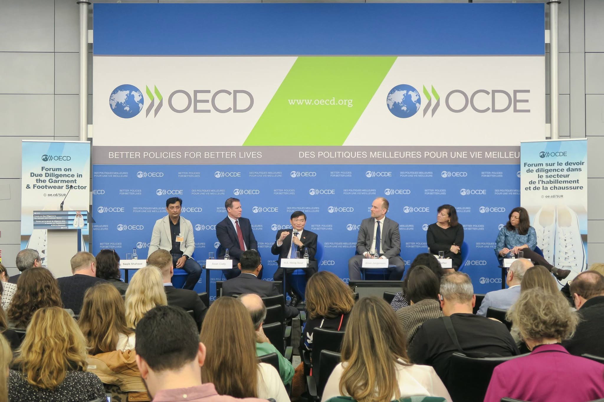 (ប៉ារីស)៖ នៅថ្ងៃទី១១-១២ ខែកុម្ភៈ ឆ្នាំ២០២៦ នេះ ឯកឧត្តម ហេង សួរ រដ្ឋមន្ត្រីក្រសួងការងារ និងបណ្តុះបណ្តាលវិជ្ជាជីវៈ បានដឹកនាំគណៈប្រតិភូត្រីភាគីកម្ពុជាចូលរួមវេទិការបស់អង្គការសម្រាប់កិច្ចសហប្រតិបត្តិការ និងអភិវឌ្ឍន៍សេដ្ឋកិច្ច(OECD) ស្តីពីការត្រួតពិនិត្យអនុលោមភាពនៅក្នុងវិស័យកាត់ដេរ និងផលិតស្បែកជើង ដែលប្រព្រឹត្តទៅនៅទីស្នាក់ការកណ្តាលអង្គការ OECD ក្នុងទីក្រុងប៉ារីស ប្រទេសបារាំង។