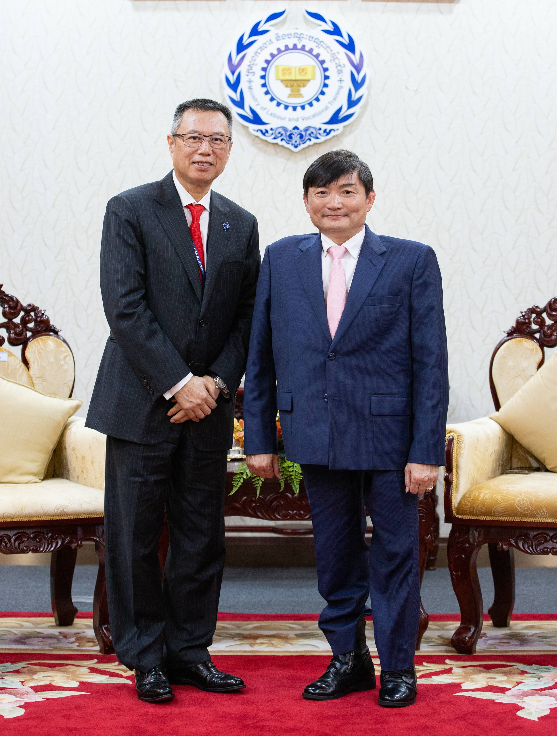 (ភ្នំពេញ)៖ ឯកឧត្ដម ហេង សួរ រដ្ឋមន្ត្រីក្រសួងការងារ និងបណ្ដុះបណ្ដាលវិជ្ជាជីវៈ បានទទួលជួបសម្ដែងការគួរសម និងពិភាក្សាការងារជាមួយលោក Nianshan Zhang អគ្គនាយកនៃនាយកដ្ឋានប្រចាំតំបន់អាស៊ីអាគ្នេយ៍នៃធនាគារអភិវឌ្ឍន៍អាស៊ី (ADB) នារសៀលថ្ងៃទី២៥ ខែកុម្ភៈ ឆ្នាំ២០២៦ នៅទីស្តីការក្រសួង ដើម្បីពិនិត្យមើលវឌ្ឍនភាព និងឱកាសសំខាន់ៗ ក្នុងការពង្រឹង និងពង្រីកកិច្ចសហការក្នុងវិស័យអប់រំបណ្តុះបណ្តាលបច្ចេកទេស និងវិជ្ជាជីវៈ (TVET) និងការអភិវឌ្ឍជំនាញនៅកម្ពុជា។