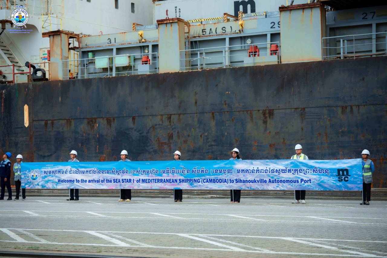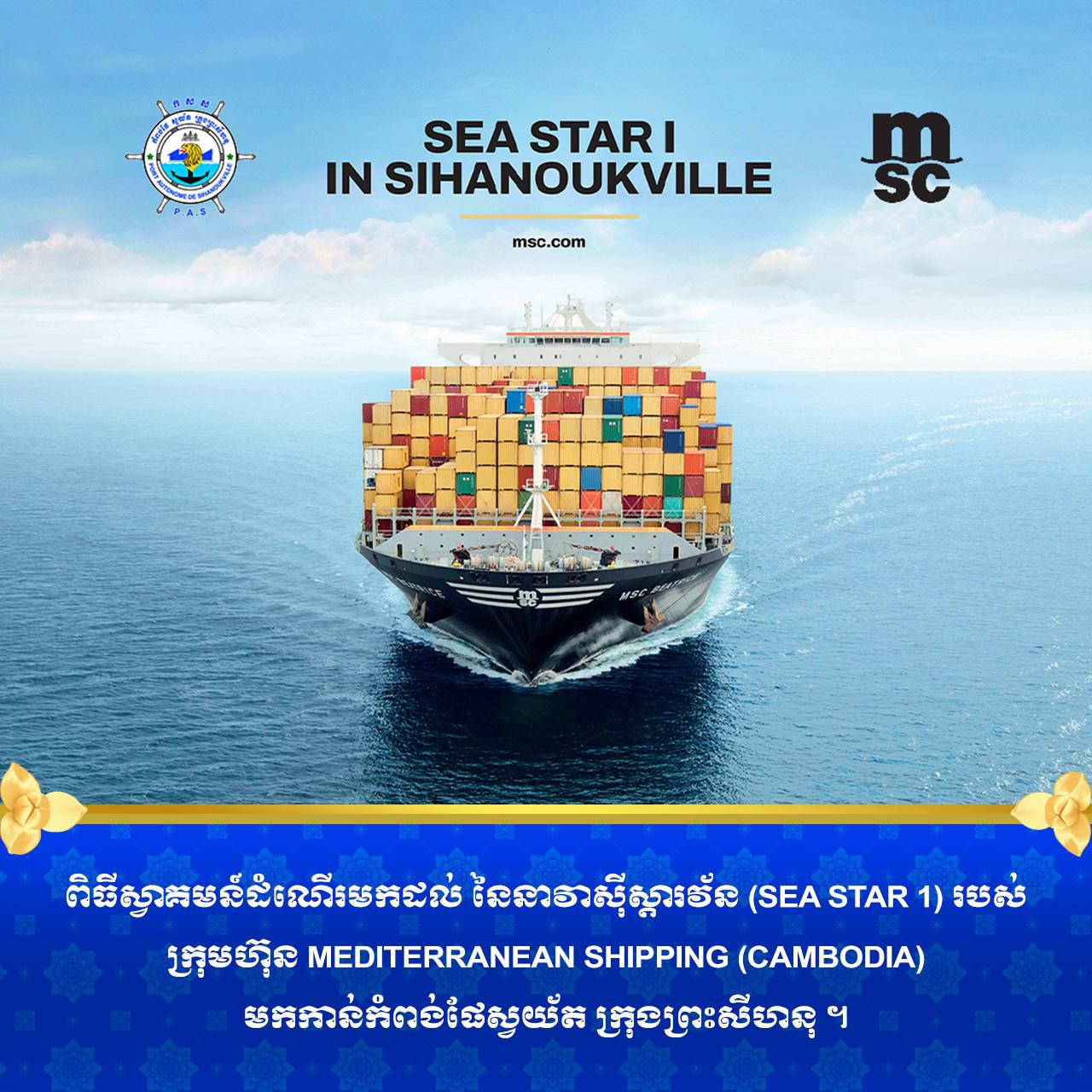 កំពង់ផែស្វយ័តក្រុងព្រះសីហនុ (កសស) ៖ នាវេលាម៉ោង ៤ រសៀល ថ្ងៃសុក្រ ១១ កើត ខែផល្គុន ឆ្នាំម្សាញ់ សប្តស័ក ពុទ្ធសករាជ ២៥៦៩ ត្រូវនឹងថ្ងៃទី២៧ ខែកុម្ភៈ ឆ្នាំ២០២៦ នៅចំណតផែកុងតឺន័រ កសស លេខ ៨ កំពង់ផែស្វយ័តក្រុងព្រះសីហនុ បានរៀបចំប្រារព្ធពិធីស្វាគមន៍ដំណើរមកដល់ នៃនាវាសុីស្តារវ័ន (SEA STAR 1) របស់ក្រុមហ៊ុន Mediterranean Shipping (Cambodia) មកកាន់ កសស ក្រោមអធិបតីភាព លោក ថៃ ឬទ្ធី អគ្គនាយករង ទទួលបន្ទុកអាជីវកម្ម តំណាង ឯកឧត្តម លូ គឹមឈន់ ប្រតិភូរាជរដ្ឋាភិបាលកម្ពុជា ទទួលបន្ទុកជាប្រធានអគ្គនាយក កំពង់ផែស្វយ័តក្រុងព្រះសីហនុ។