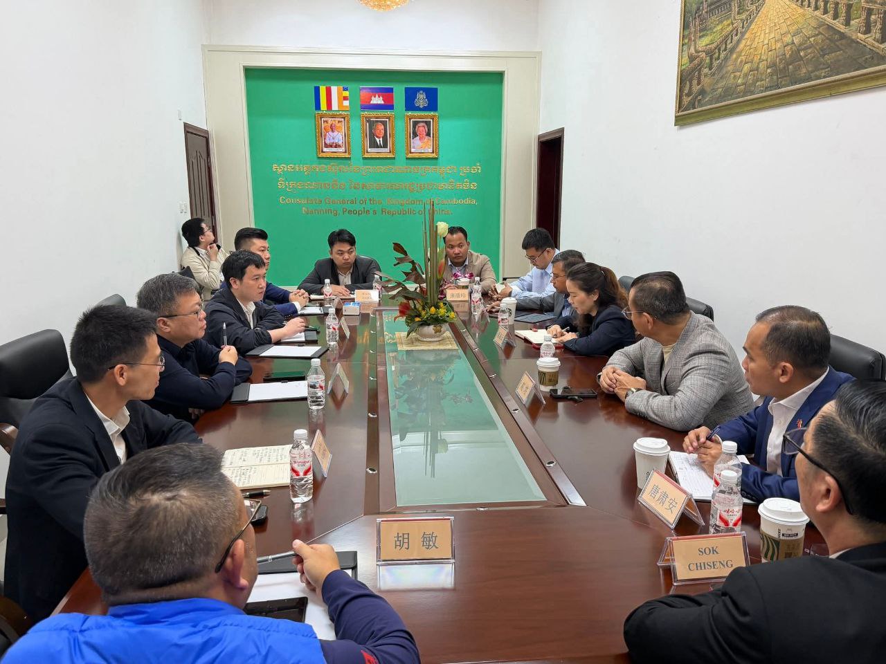ទីក្រុងណាននីង៖ នៅនៅព្រឹកថ្ងៃអាទិត្យ ៥រោច ខែផល្គុន ឆ្នាំម្សាញ់ សប្តស័ក ពុទ្ធសករាជ ២៥៦៩ ត្រូវនឹងថ្ងៃទី៨ ខែមីនា ឆ្នាំ២០២៦ នេះ ឯកឧត្ដមបណ្ឌិត កៅ ថាច ប្រតិភូរាជរដ្ឋាភិបាលទទួលបន្ទុកជាអគ្គនាយកធនាគារអភិវឌ្ឍន៍ជនបទ និងកសិកម្ម បានអនុញ្ញាតឱ្យក្រុមហ៊ុនចំនួន០៥ ជួបសម្ដែងការគួរសម និងពិភាក្សាការងារ ដោយមានការសម្របសម្រួលរបស់ស្ថានអគ្គកុងសុល នៃព្រះរាជាណាចក្រកម្ពុជាប្រចាំទីក្រុងណាននីង ដែលក្រុមហ៊ុន៖