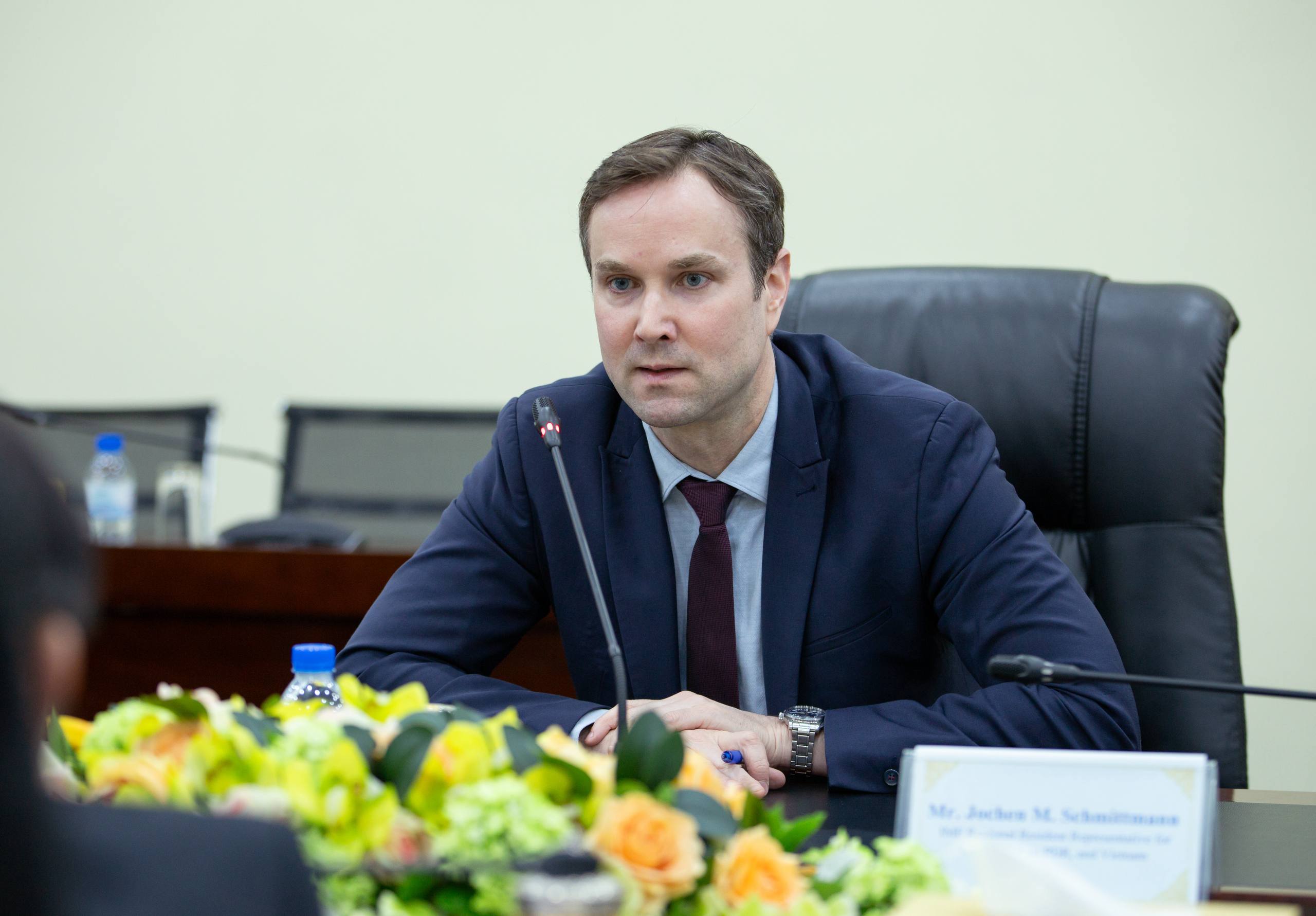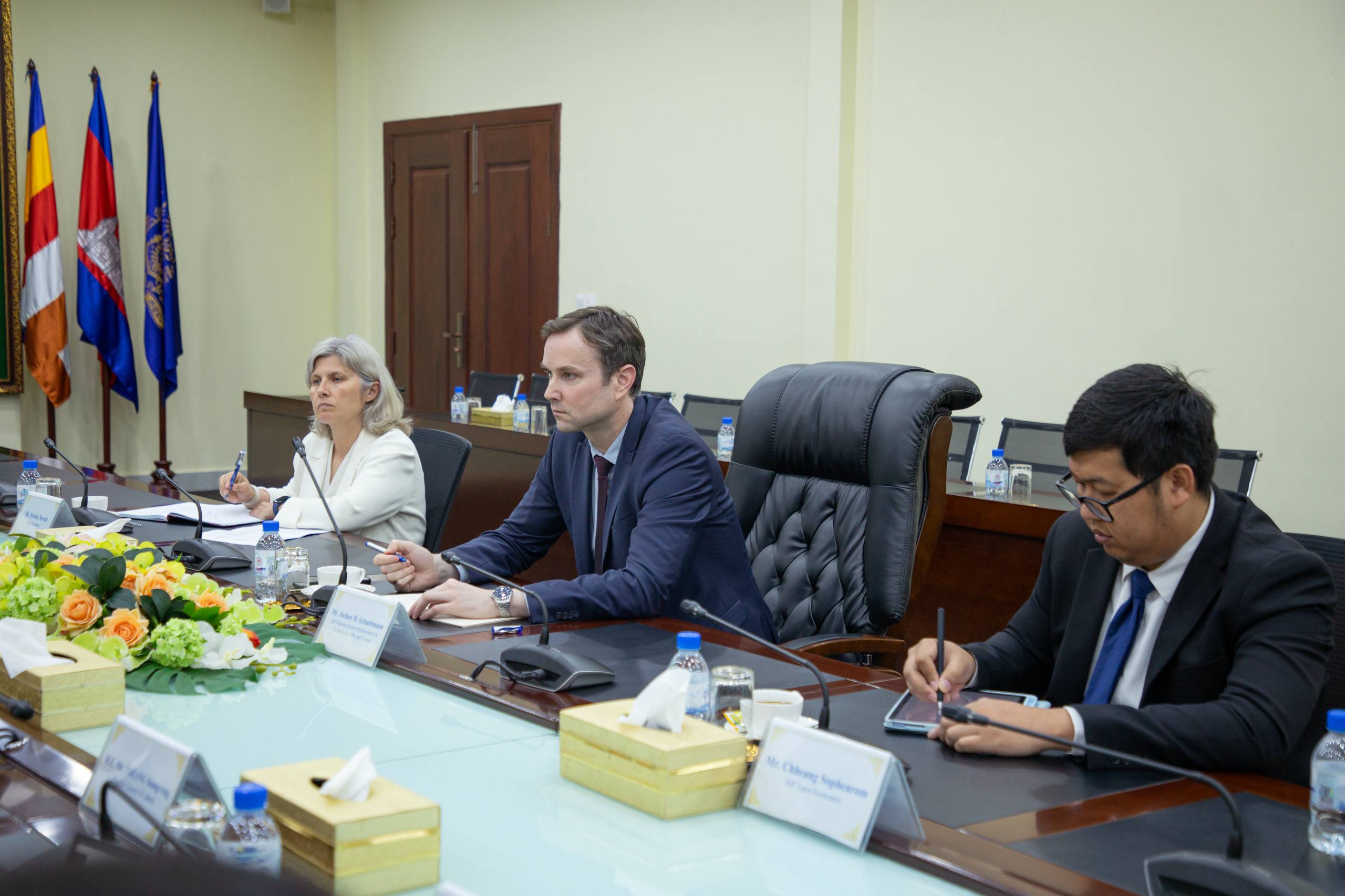 (ភ្នំពេញ)៖ ឯកឧត្ដម ហេង សួរ រដ្ឋមន្ត្រីក្រសួងការងារ និងបណ្ដុះបណ្ដាលវិជ្ជាជីវៈ បានទទួលជួបសម្តែងការគួរសម និងពិភាក្សាការងារជាមួយលោក Jochen M. Schmittmann តំណាងប្រចាំតំបន់របស់មូលនិធិរូបិយវត្ថុអន្តរជាតិ (IMF) សម្រាប់កម្ពុជា ឡាវ និងវៀតណាម និងសហការី នាថ្ងៃចន្ទ ទី៩ ខែមីនា ឆ្នាំ២០២៦ នៅទីស្តីការក្រសួង ដើម្បីធ្វើបច្ចុប្បន្នភាពការងារ ផ្លាស់ប្តូរយោបល់លើការស្រូបទាញកម្លាំងពលកម្ម ការអភិវឌ្ឍជំនាញ ជាពិសេស ការធ្វើសមាហរណកម្មពលករទេសន្តរប្រវេសន៍មកពីប្រទេសថៃ។